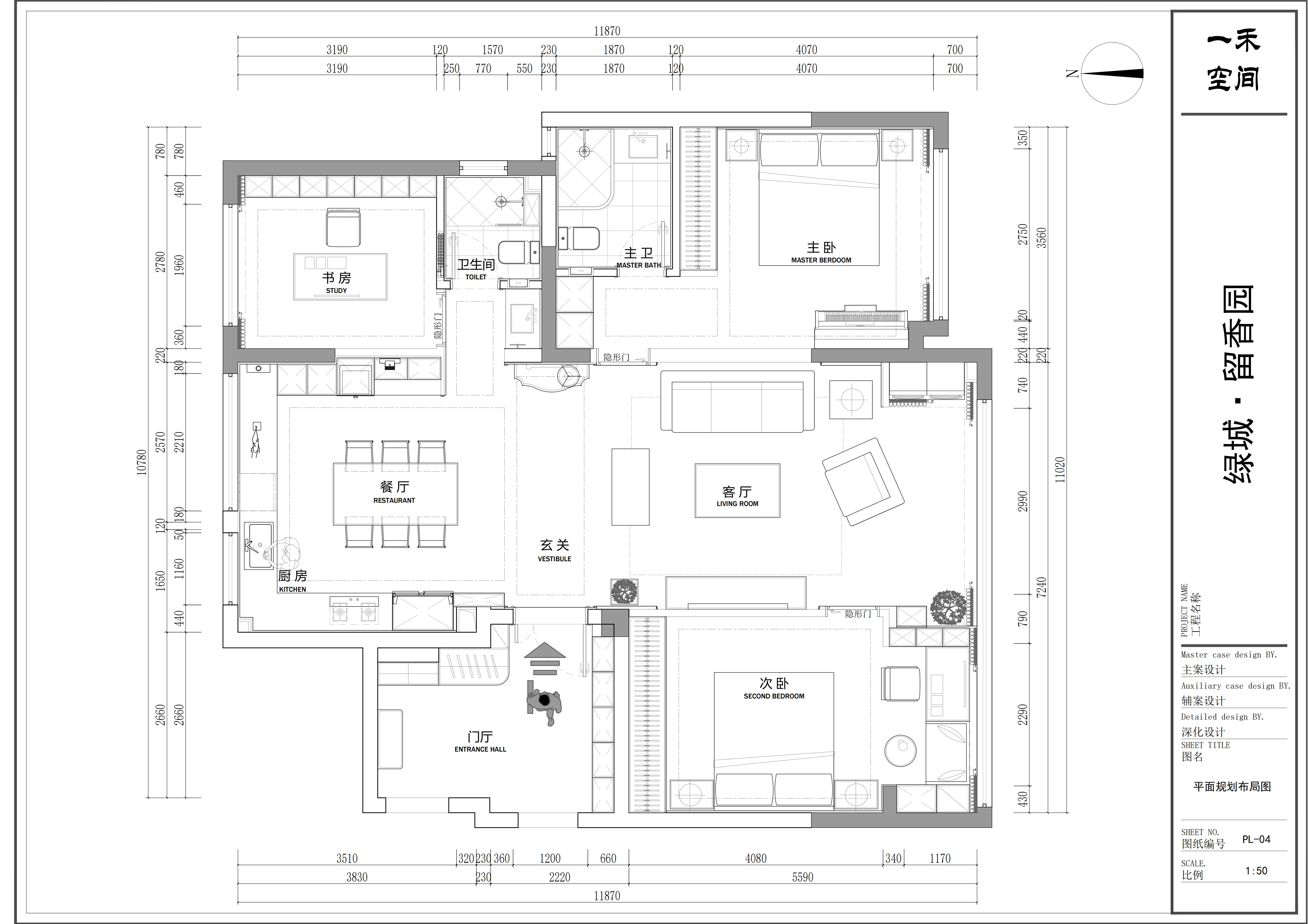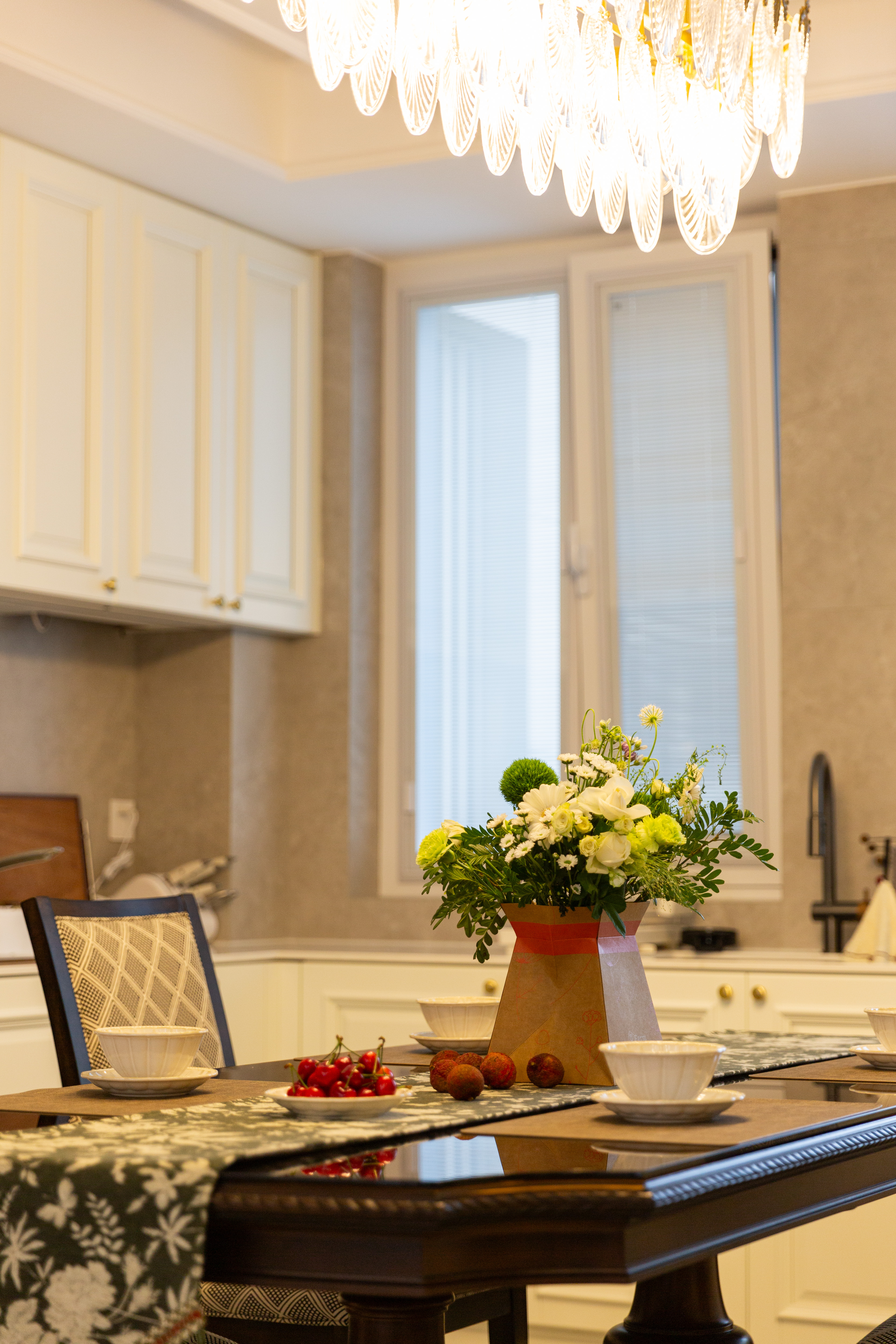 空间布局:打破传统功能壁垒,客餐厨一体化设计延伸通透感,再以半通透隔断划分私密区域,实现“开阔互动”与“静谧独处”的双重需求。