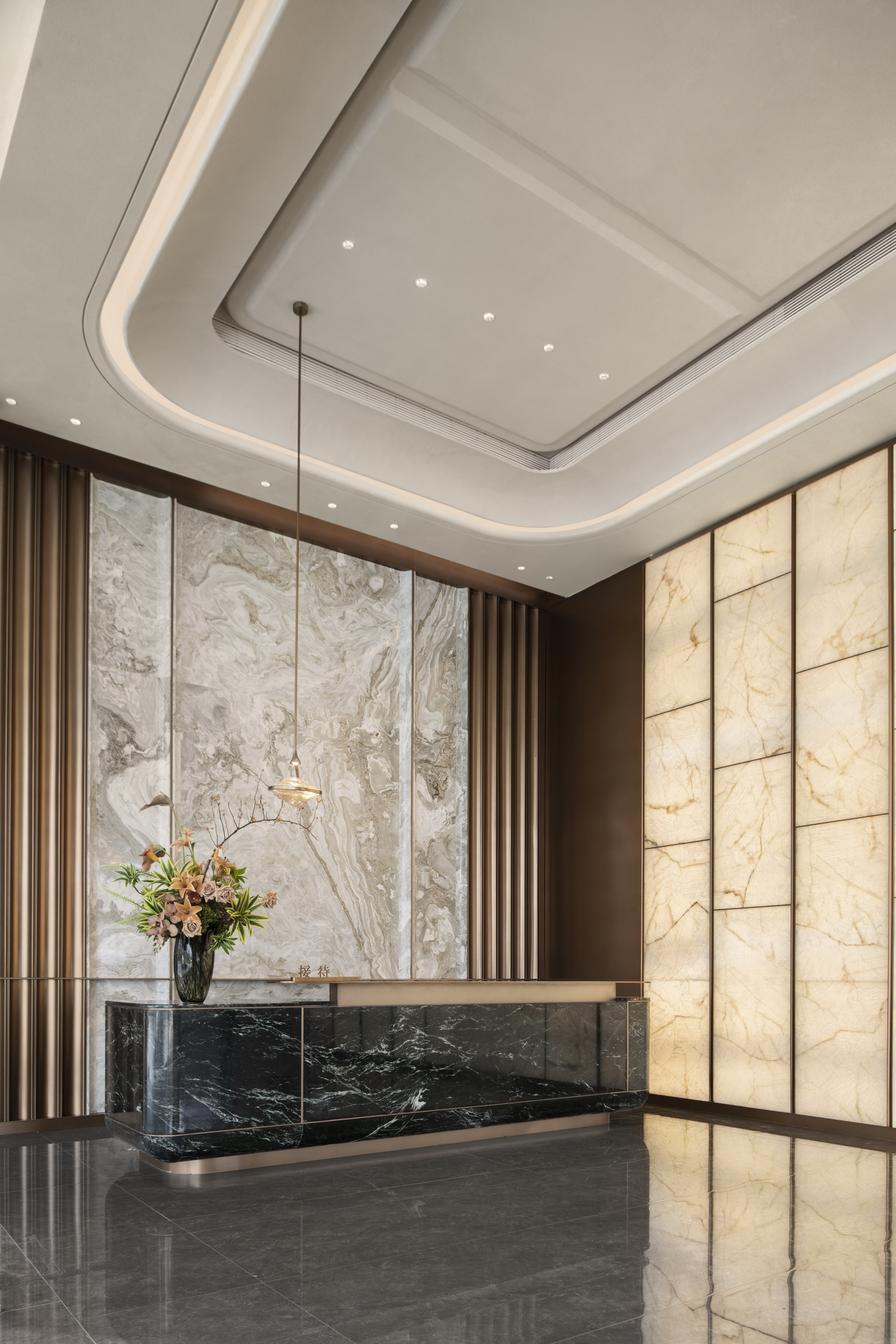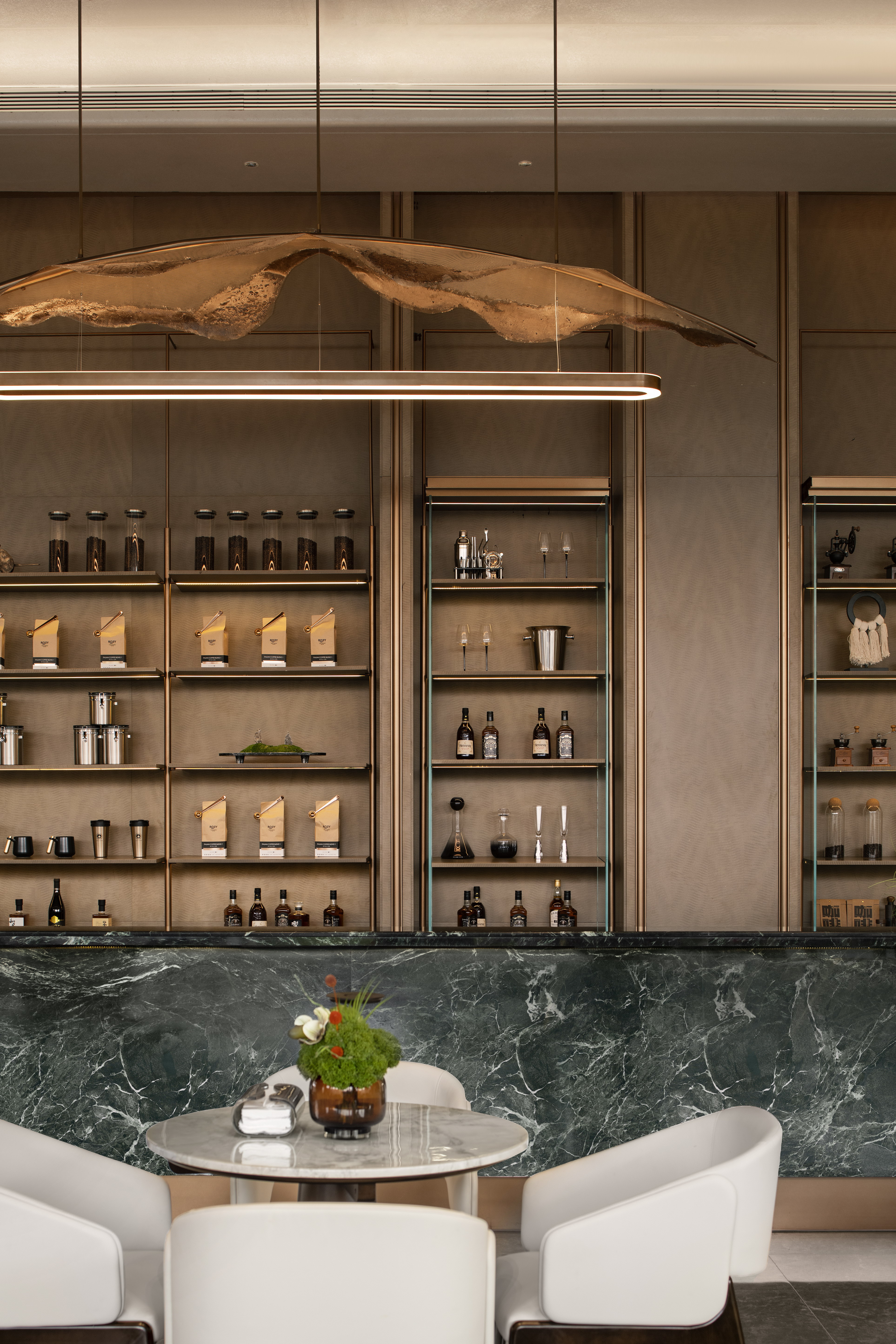 设计选材:从精致且细腻的装饰线条到特定的灯具选择,从木饰面到云石玻璃,从大理石到皮革,独特的主题场景化空间,营造出尊贵高雅的艺术格调和尽显不凡品位,色彩方案以柔和调为主,搭配温暖的金属色和绿宝石色调,增添尊贵感.