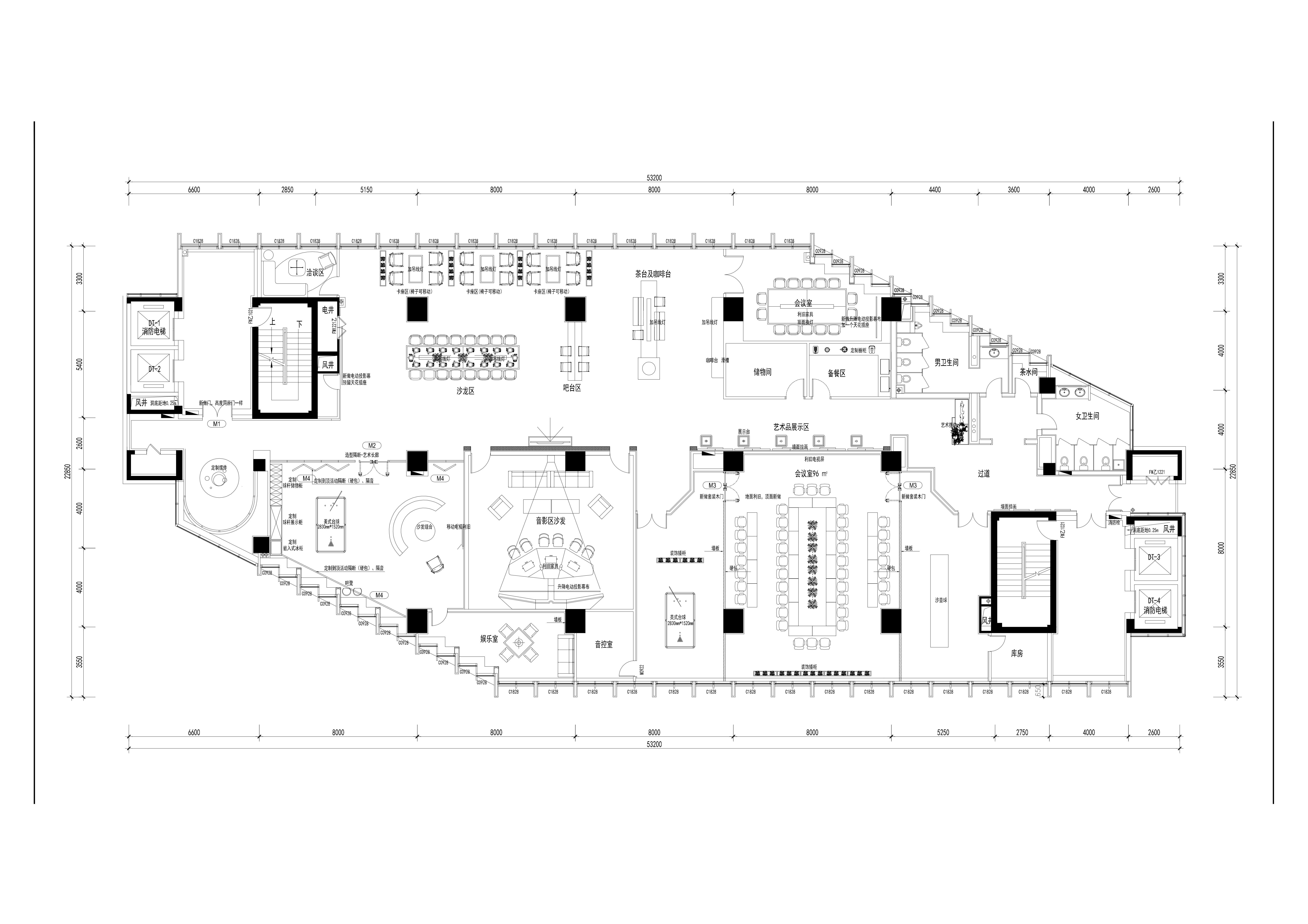 空间布局:在这个空间布局上有精心雕琢的空间里传递出简洁与丰富的对比,整体与细节之间的和谐,以及跳动与沉静的交织。这些设计元素的协同作用,赋予了空间一种富有节奏感的生命力,仿佛空间本身也在呼吸,为来访者带来一种既动感又宁静的沉浸式体验。
