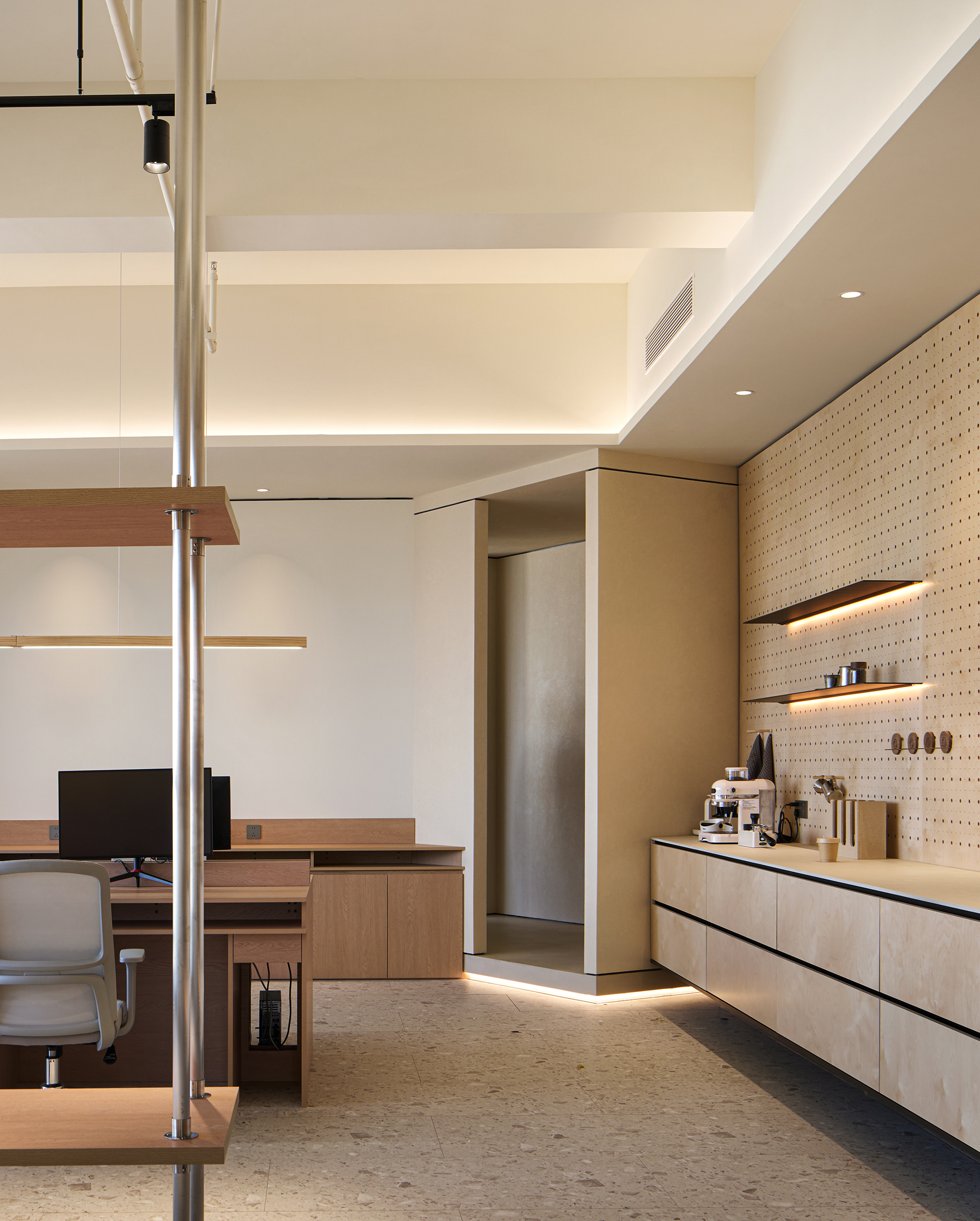 空间意境:木质温润,金属冷峻,二者于空间中碰撞、融合