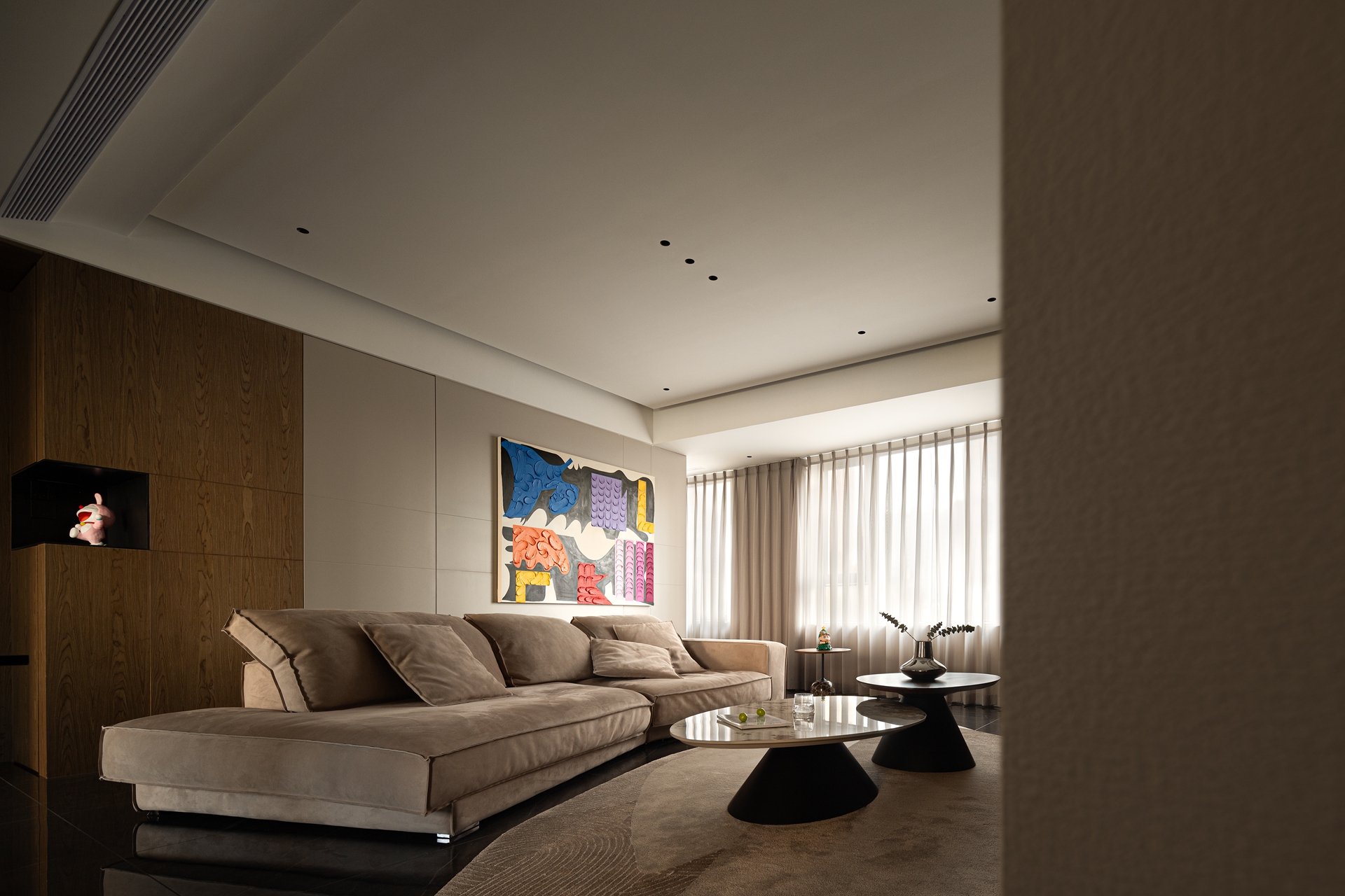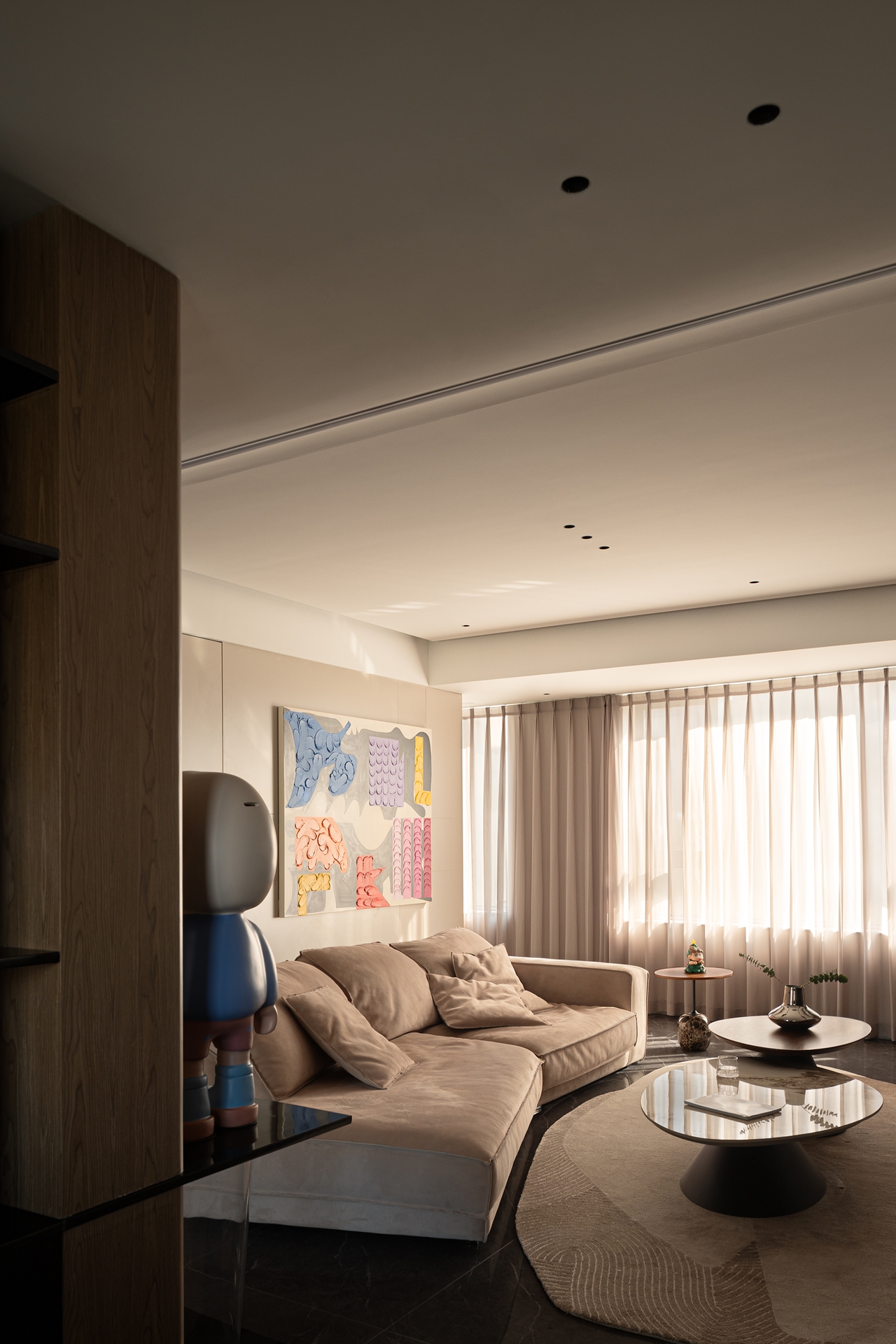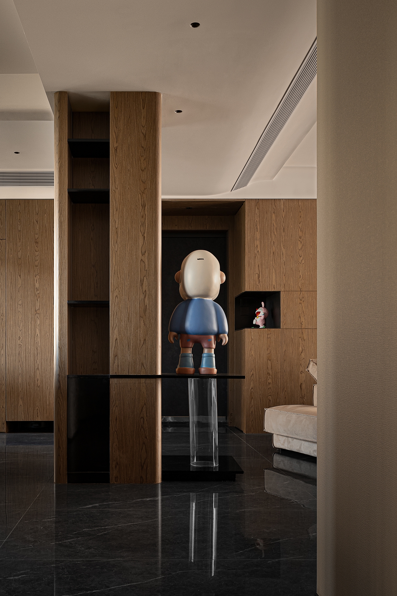 用户体验:回想刚拜访这个家的时候,脑海中的想象是质感、冷峻、硬朗的,但进入屋内后,既惊讶又欣喜,满墙卡通手办、整排游戏设备、样式繁多的杯具等等,目之所及都是缤纷的。在这张精心设计的画布上,屋主将家画成了自己喜欢的样子。