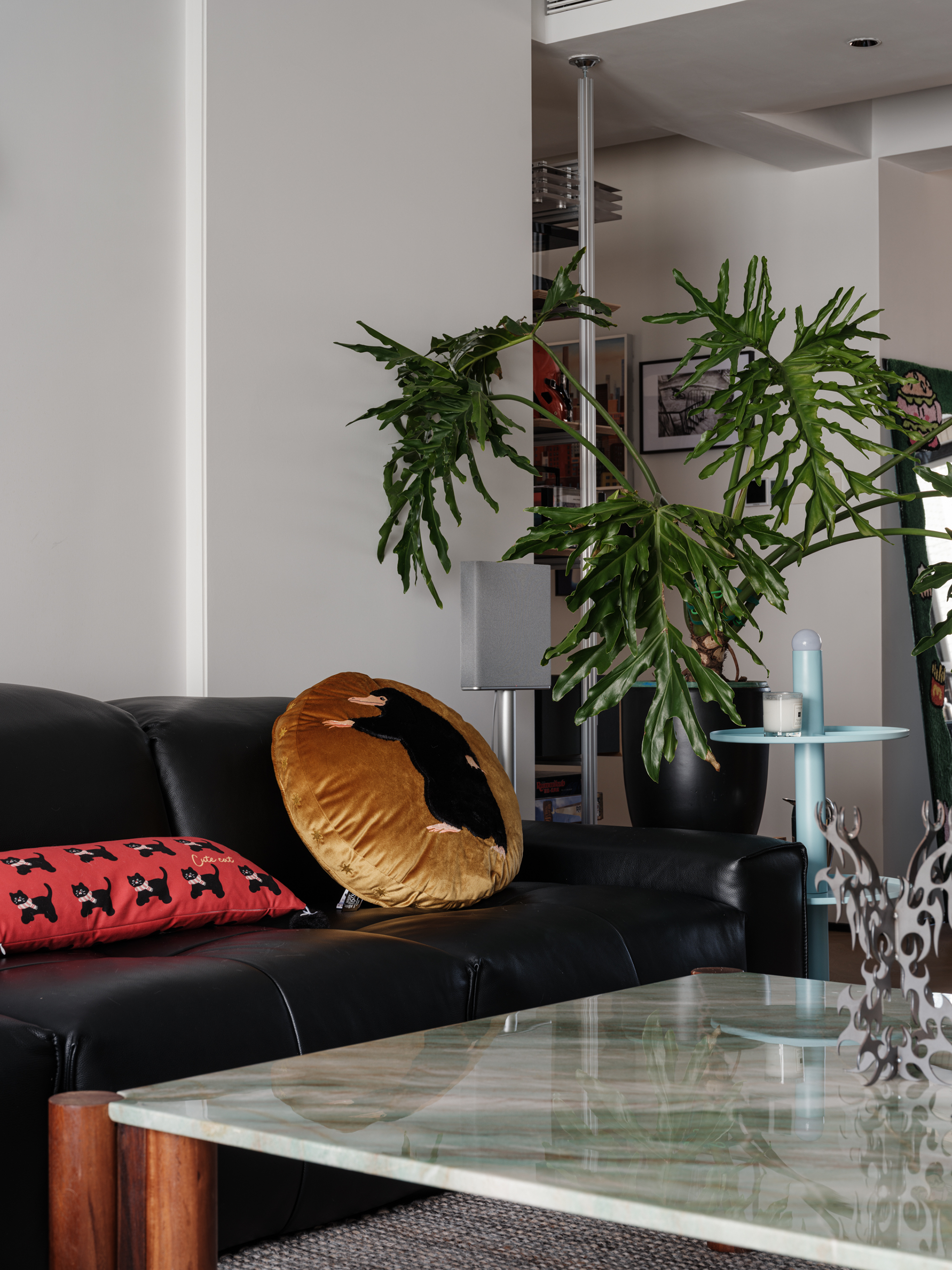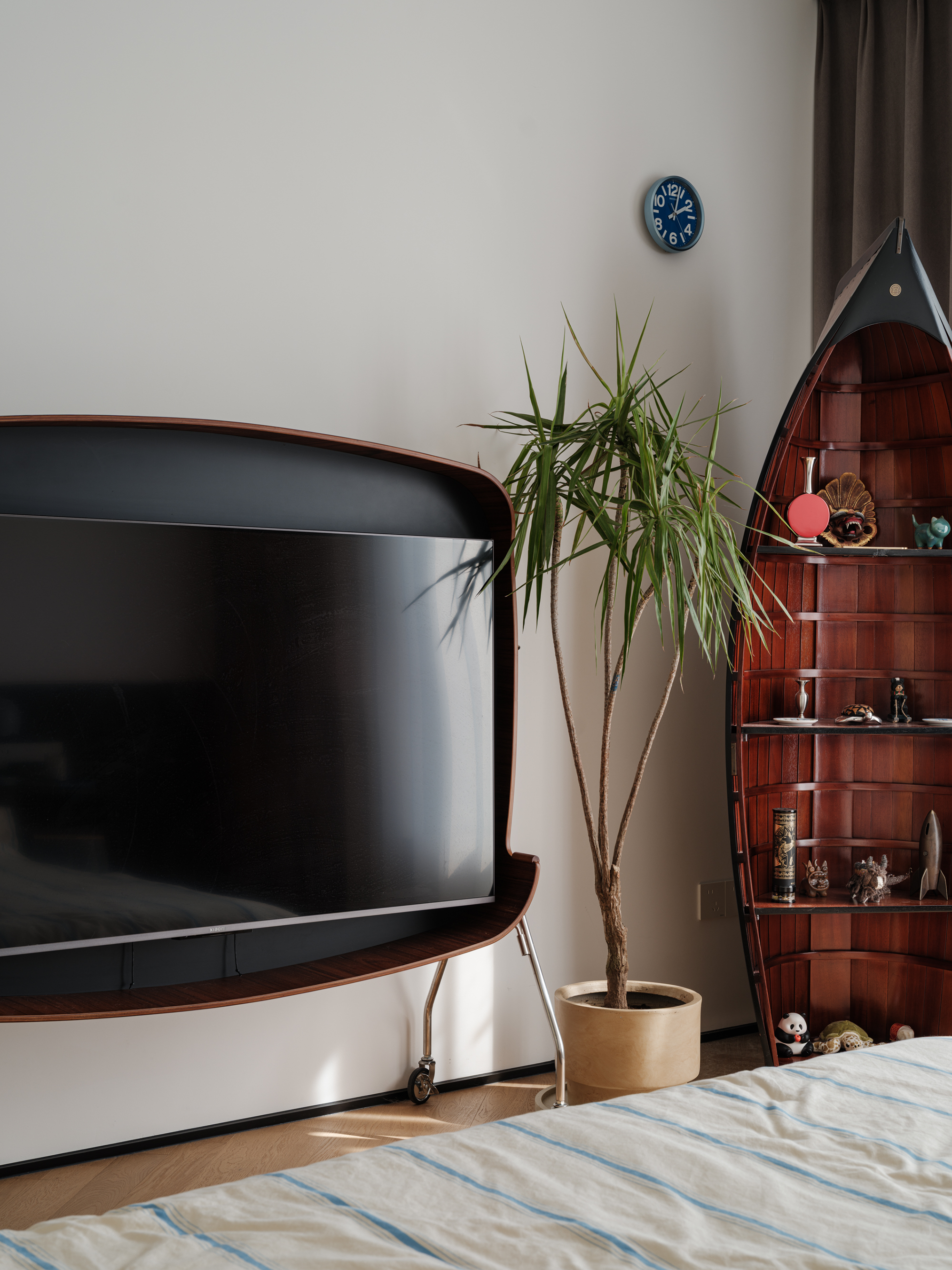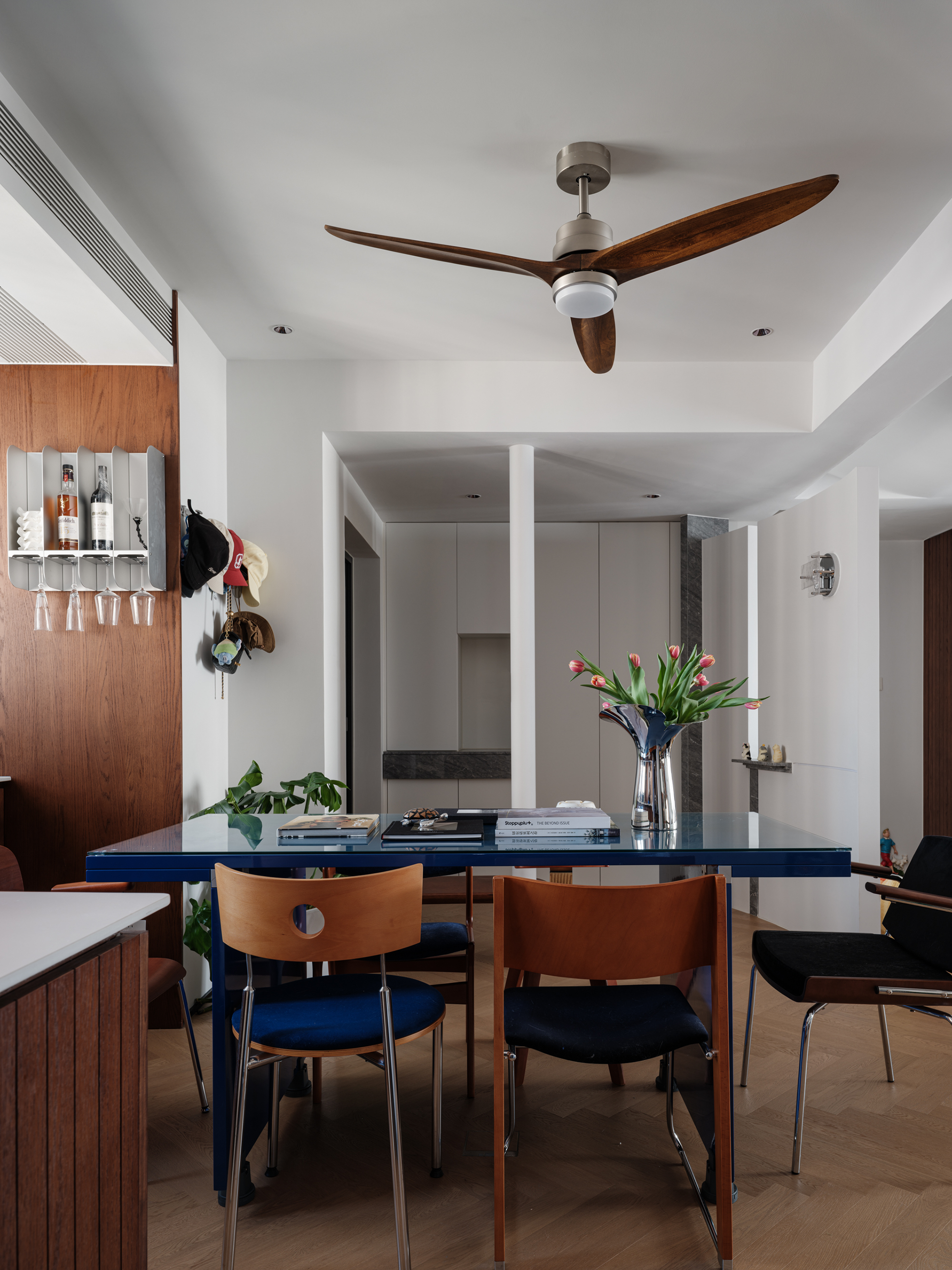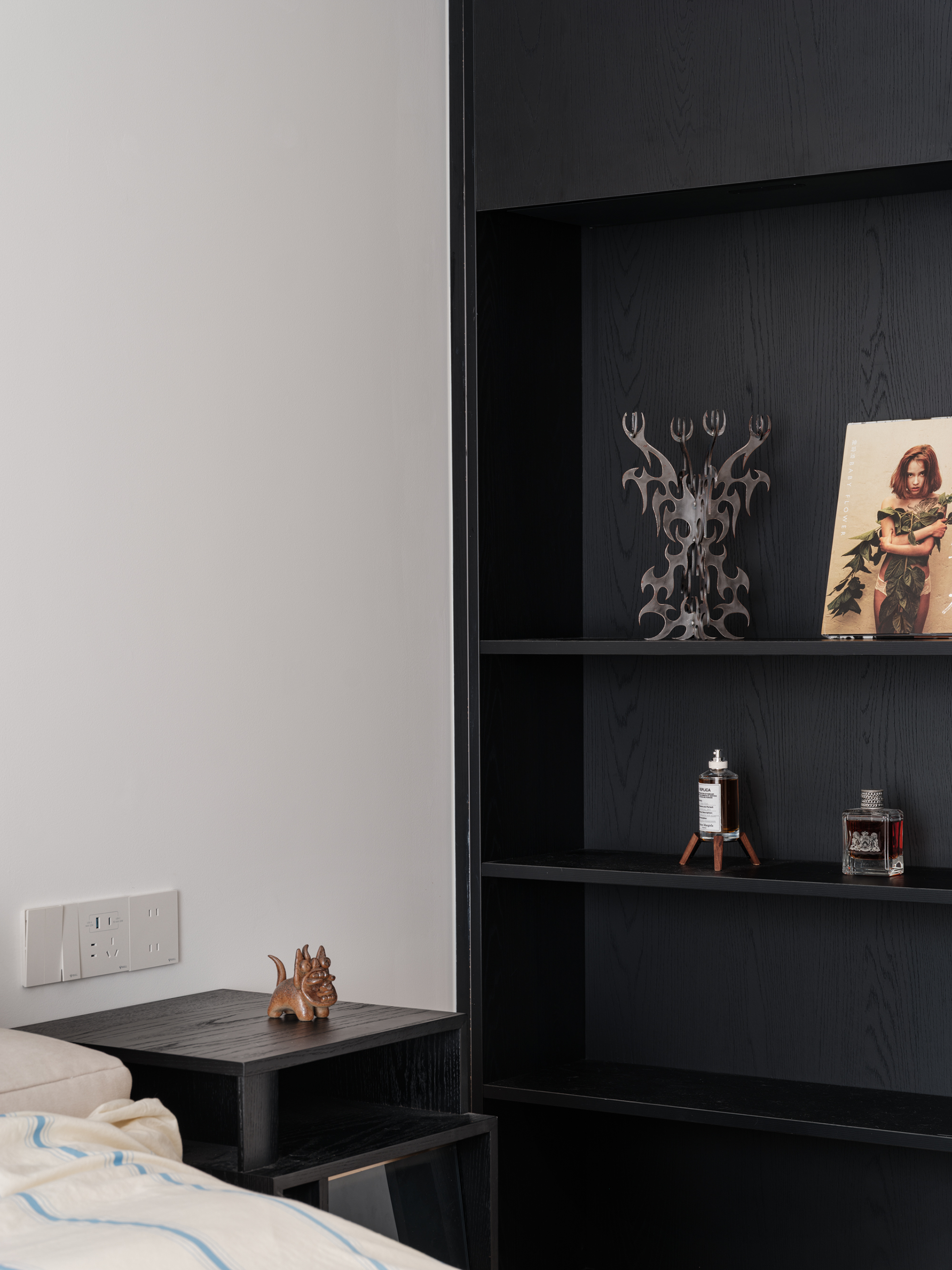 设计选材:用了几组金属展架,将屋主热爱的事物生动呈现在空间之中
