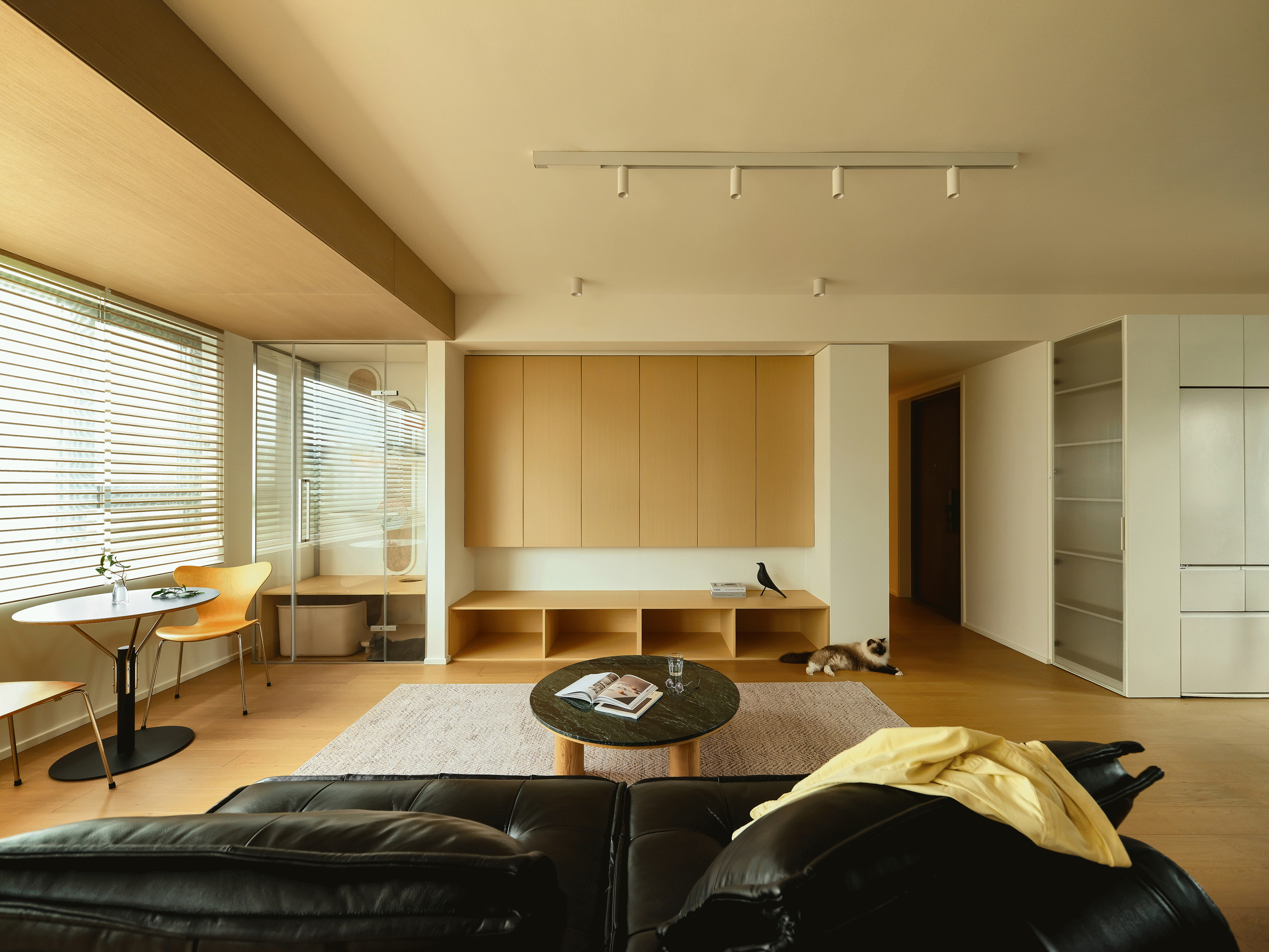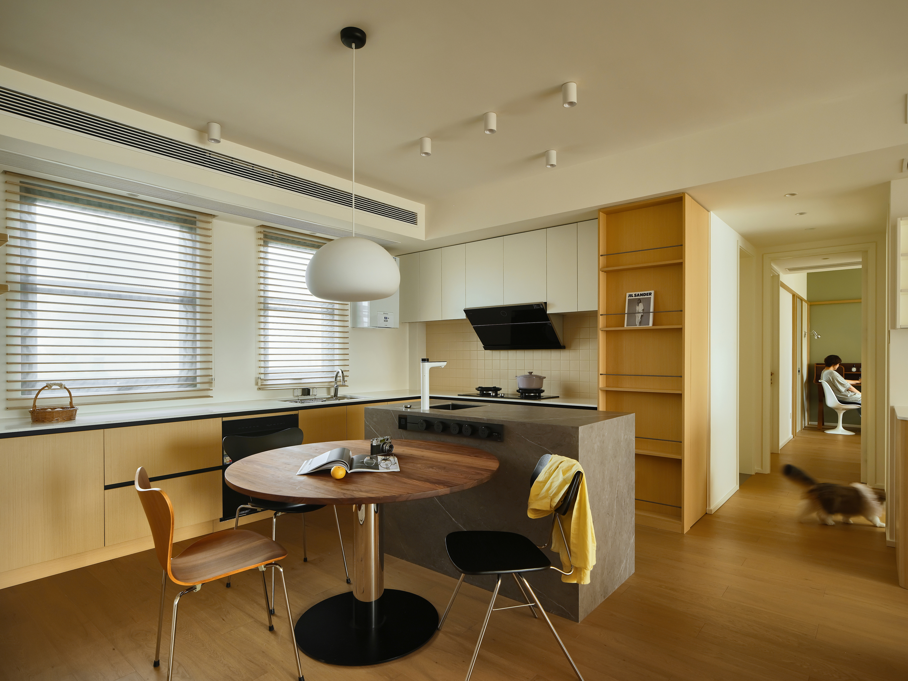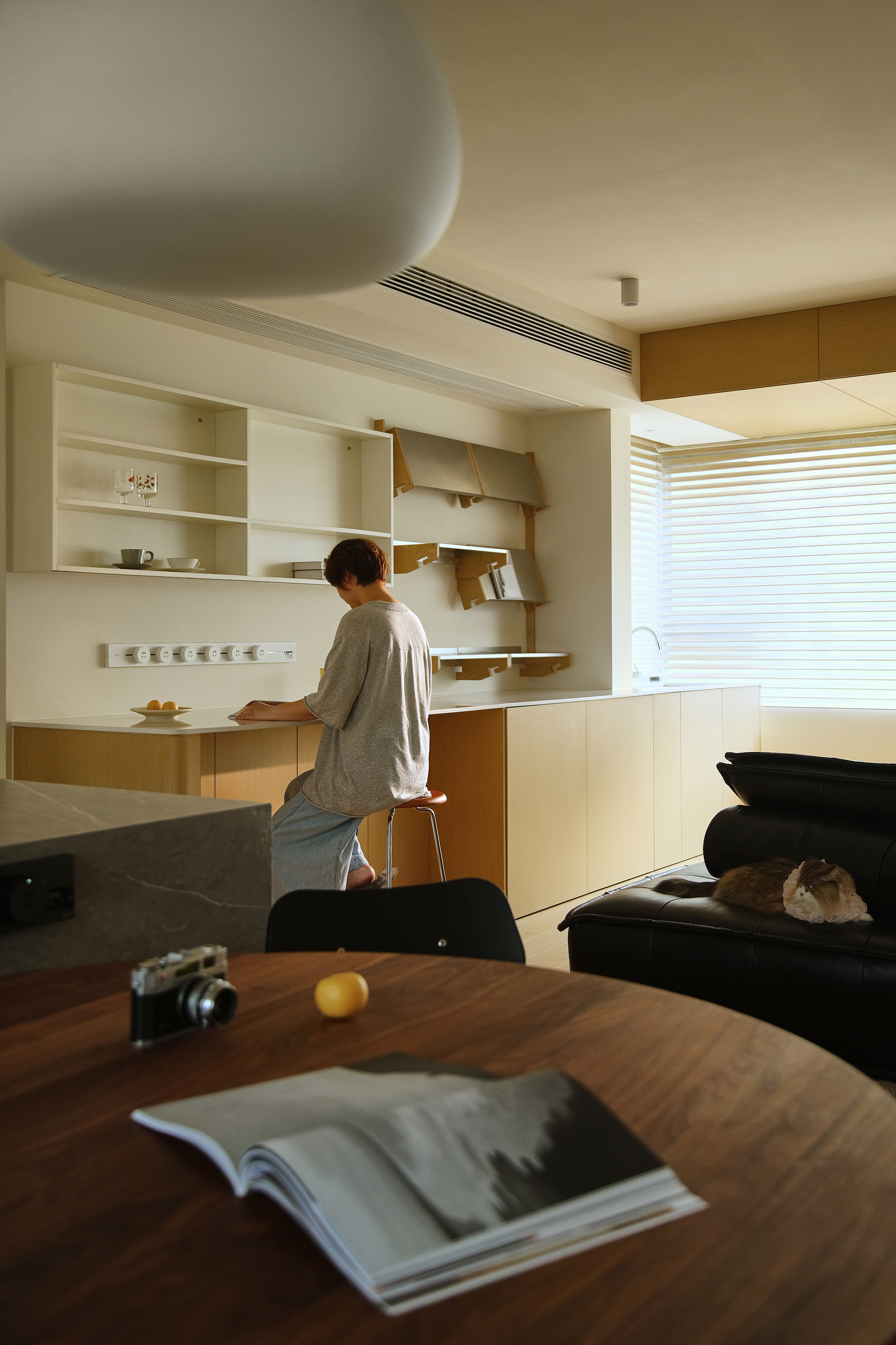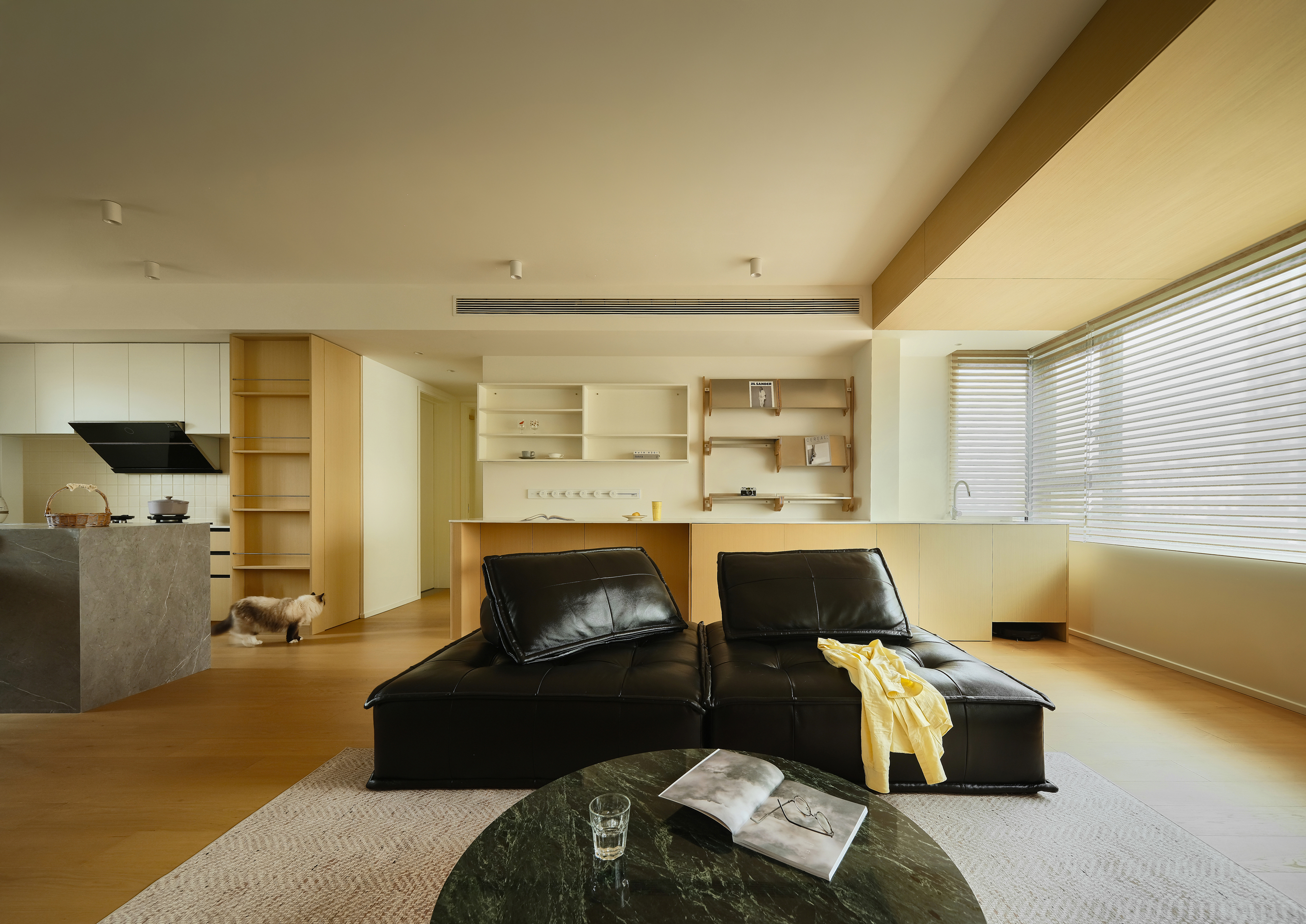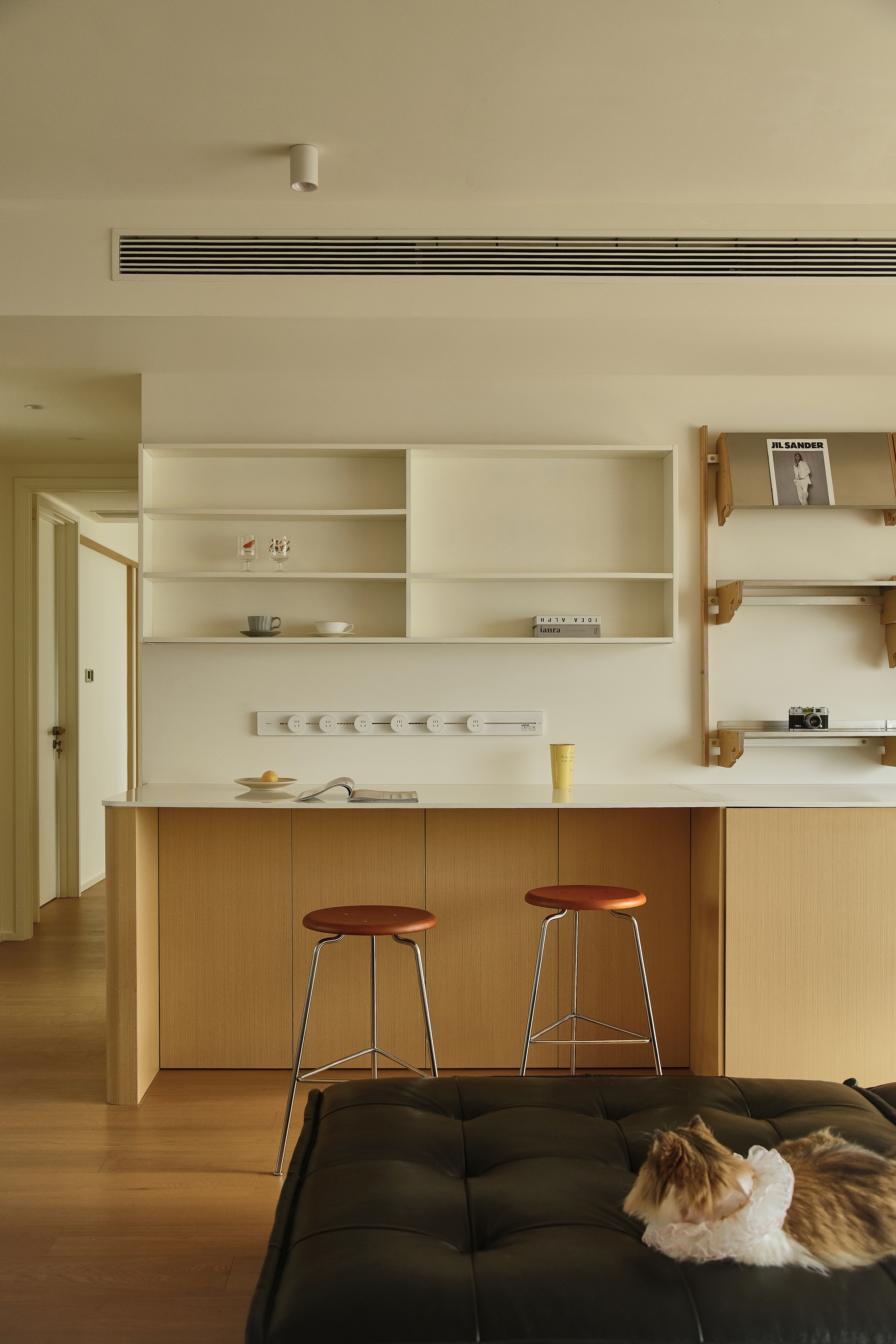 最妙的是开放空间的联动设计——餐厨与其他区域没有生硬的隔断,让空间充满了家的呼吸感。木色的贯穿、材质的呼应,猫咪的穿梭,让每一处细节都在诉说:家的美好,藏在可触可感的联动与叙事里。