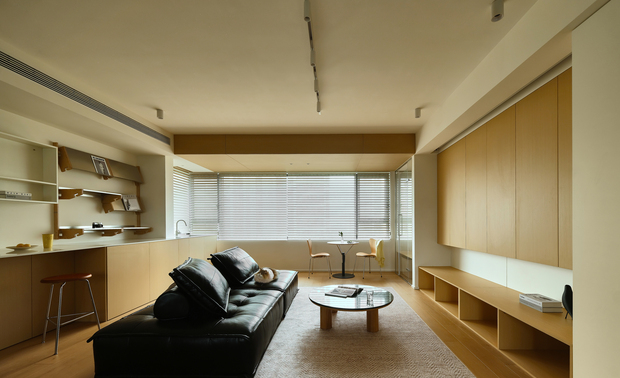 在这里,或是一人坐在吧台凳上,伴着晨光读一本书;或是两人依偎着,在闲暇时分享彼此的心事…… 吧台不再只是家政空间的延伸,更成了承载情感、消解疲惫的松弛角落。旁边的灵活置物架,还能根据喜好变换陈列,让每一次驻足都有新的惊喜。