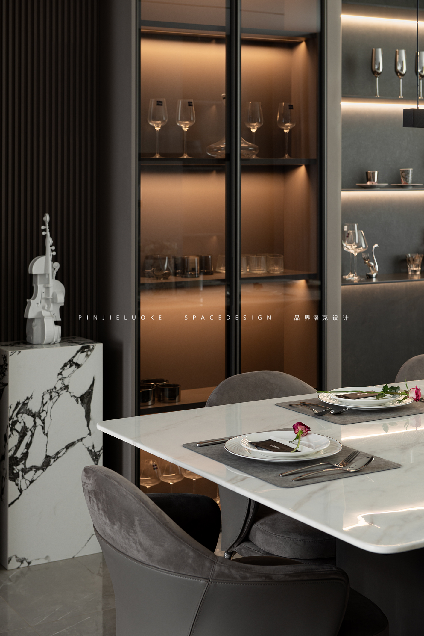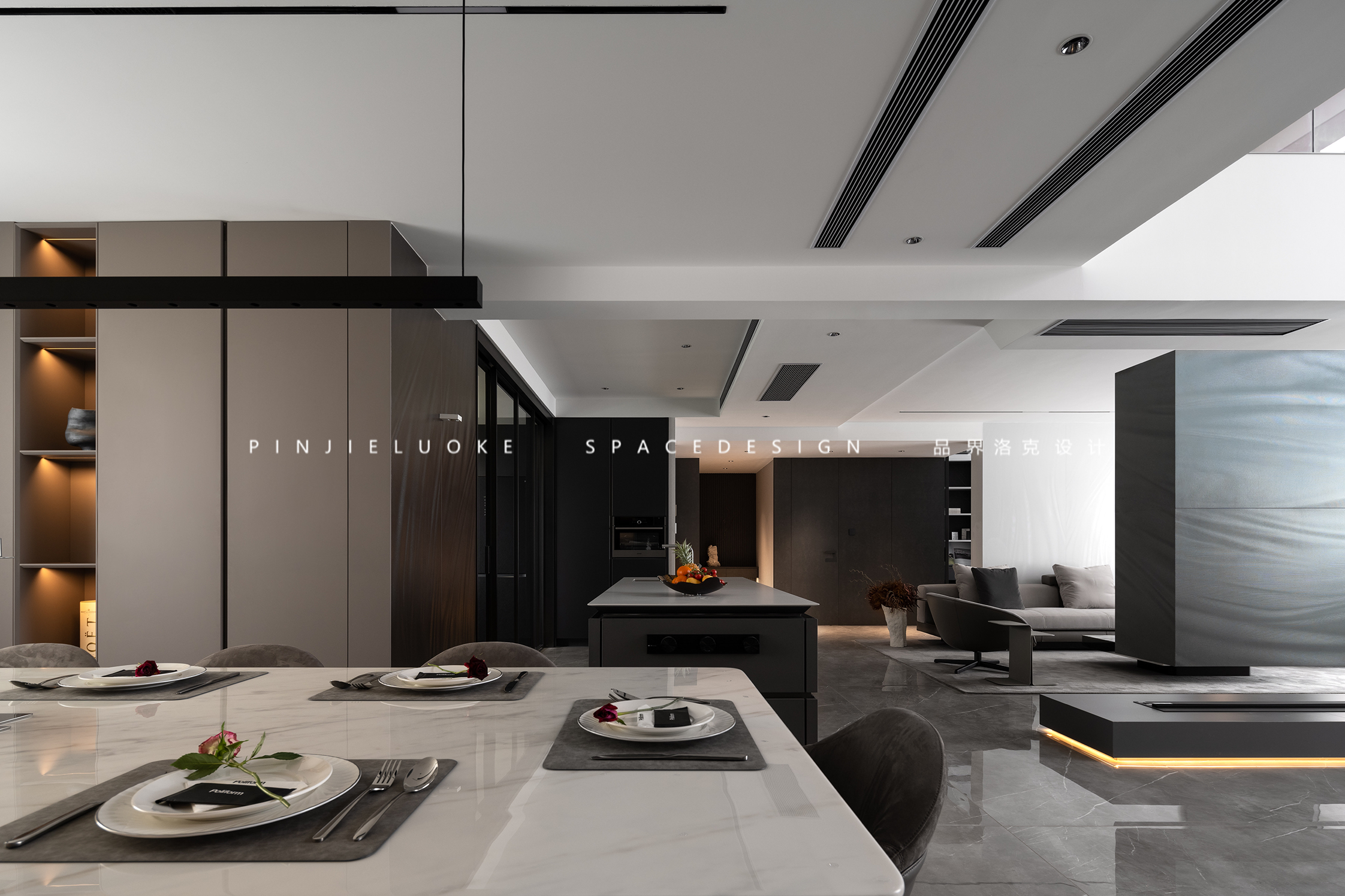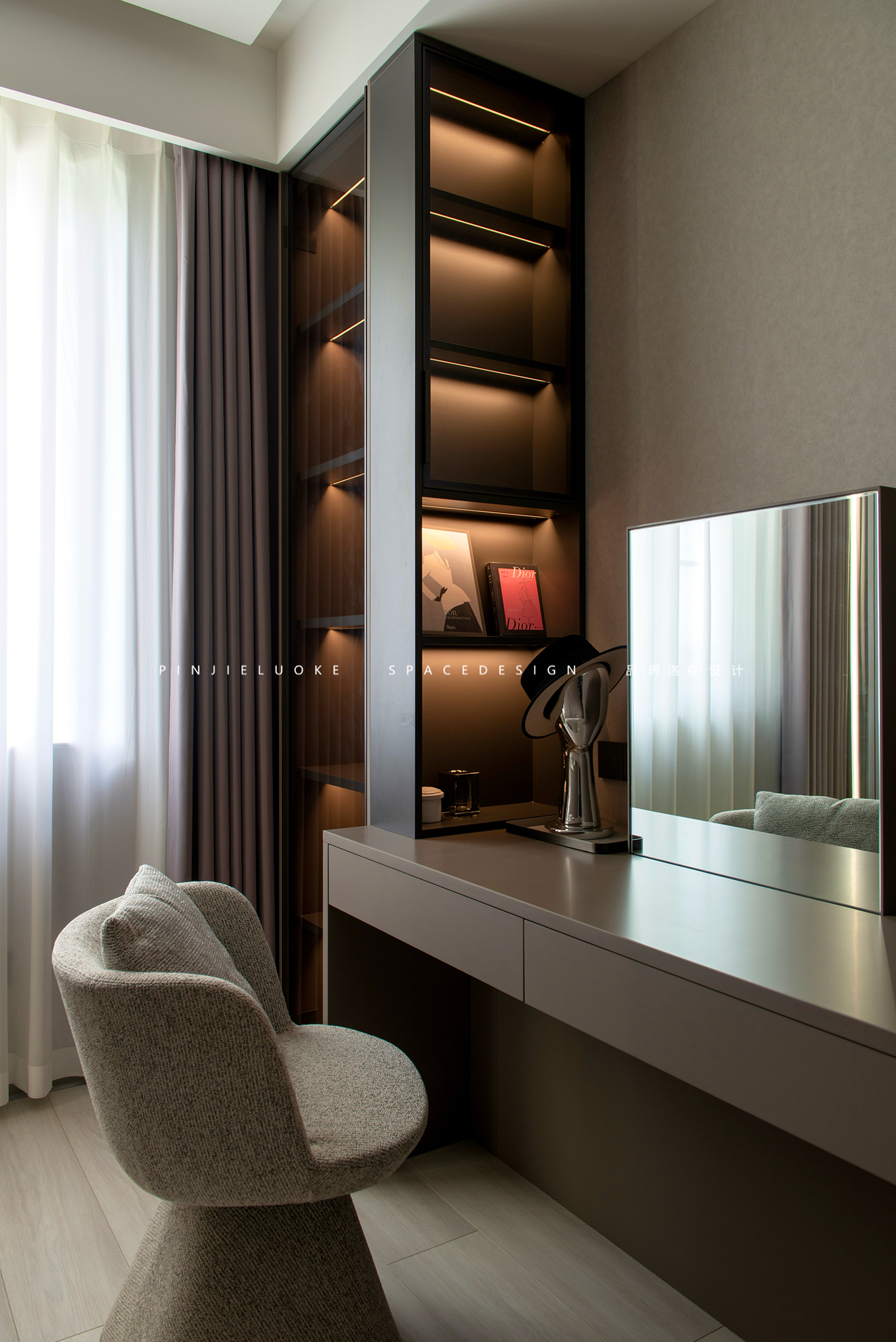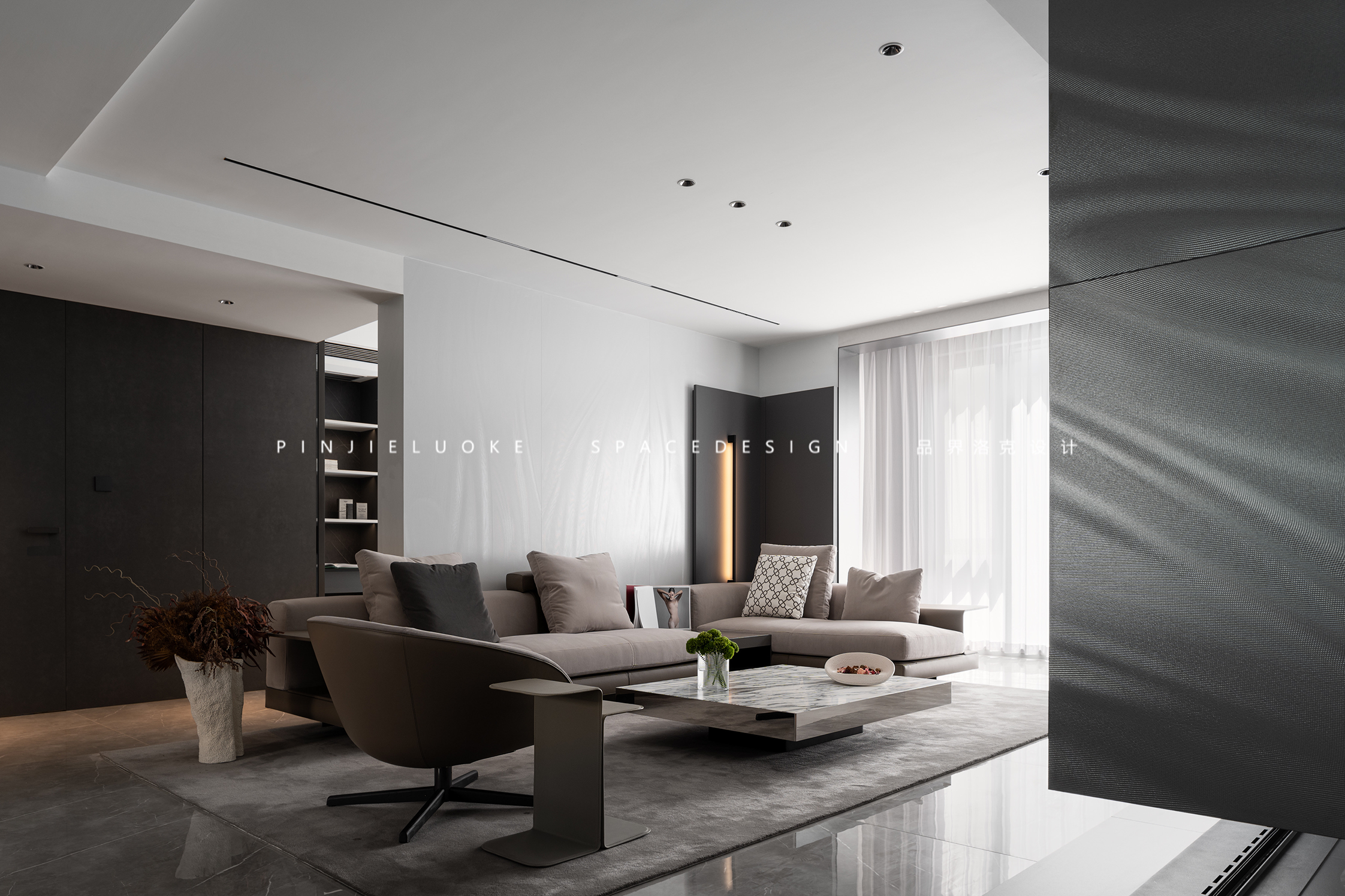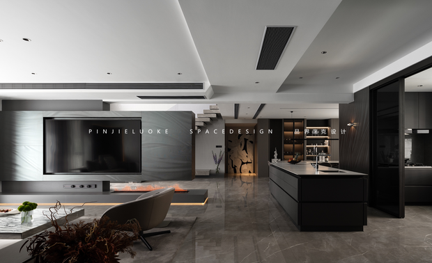 空间意境:全屋整体色调偏深色系,浅色点缀其中,整体的材质以及色彩纹理的选择上更加干净简洁。