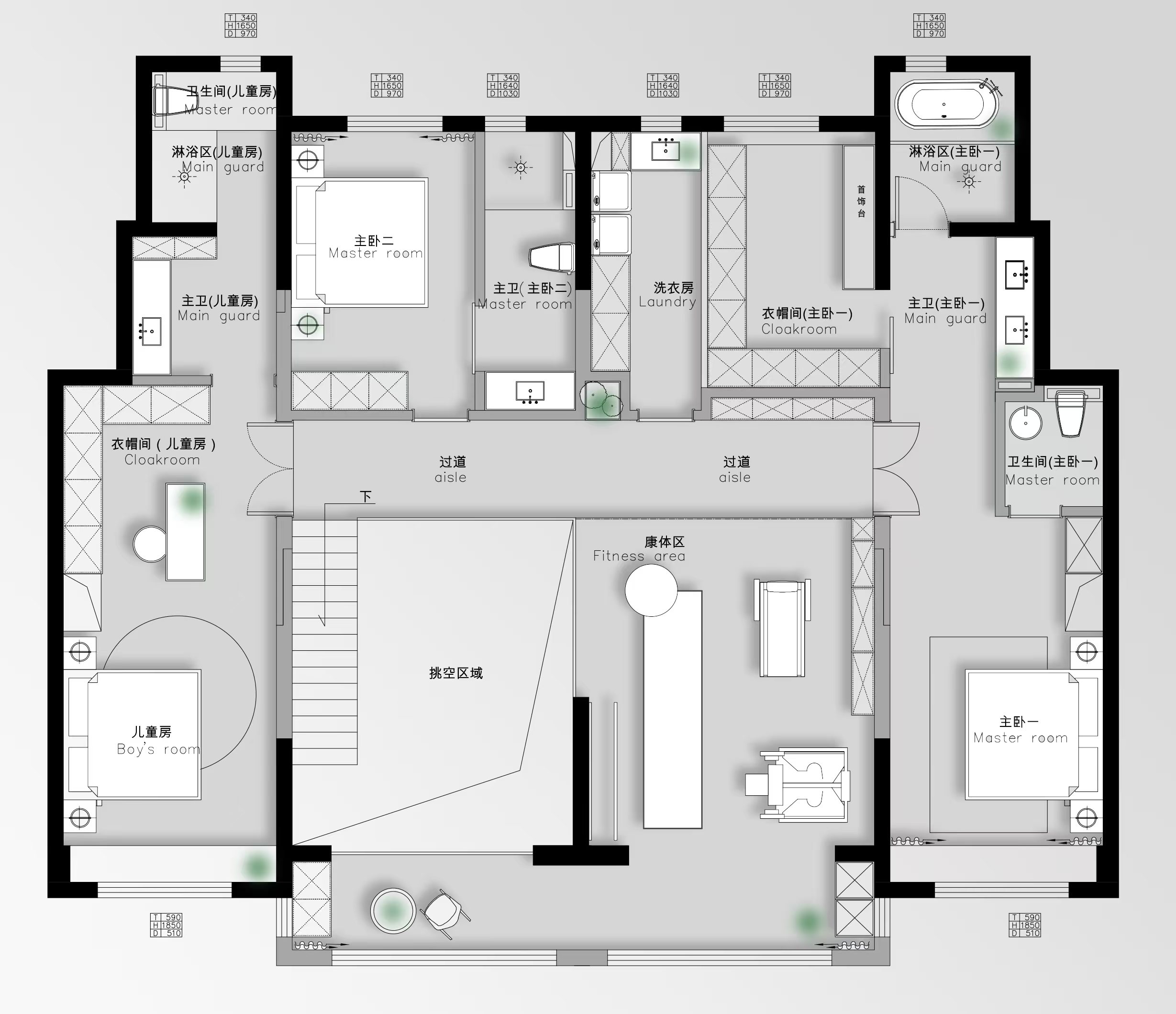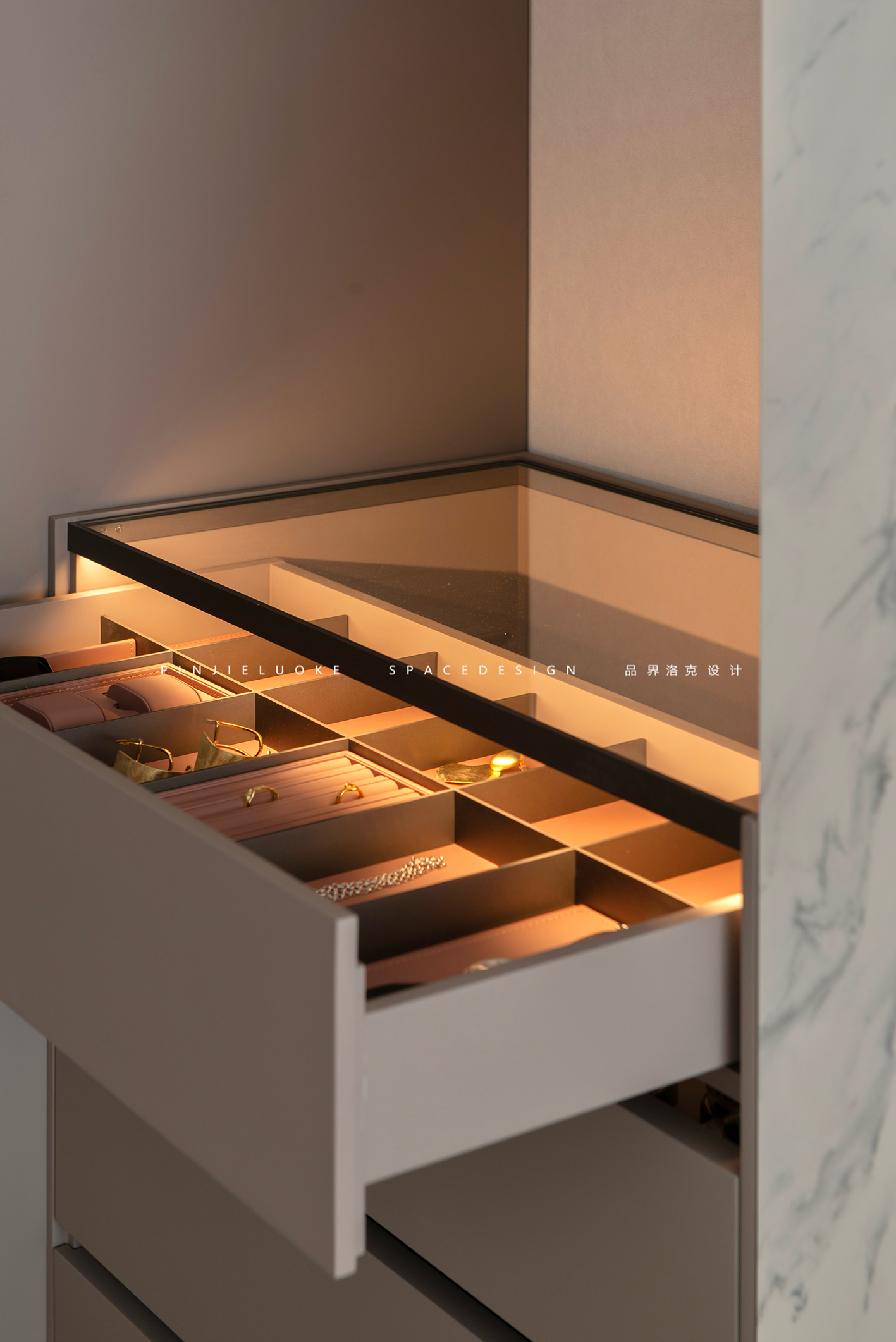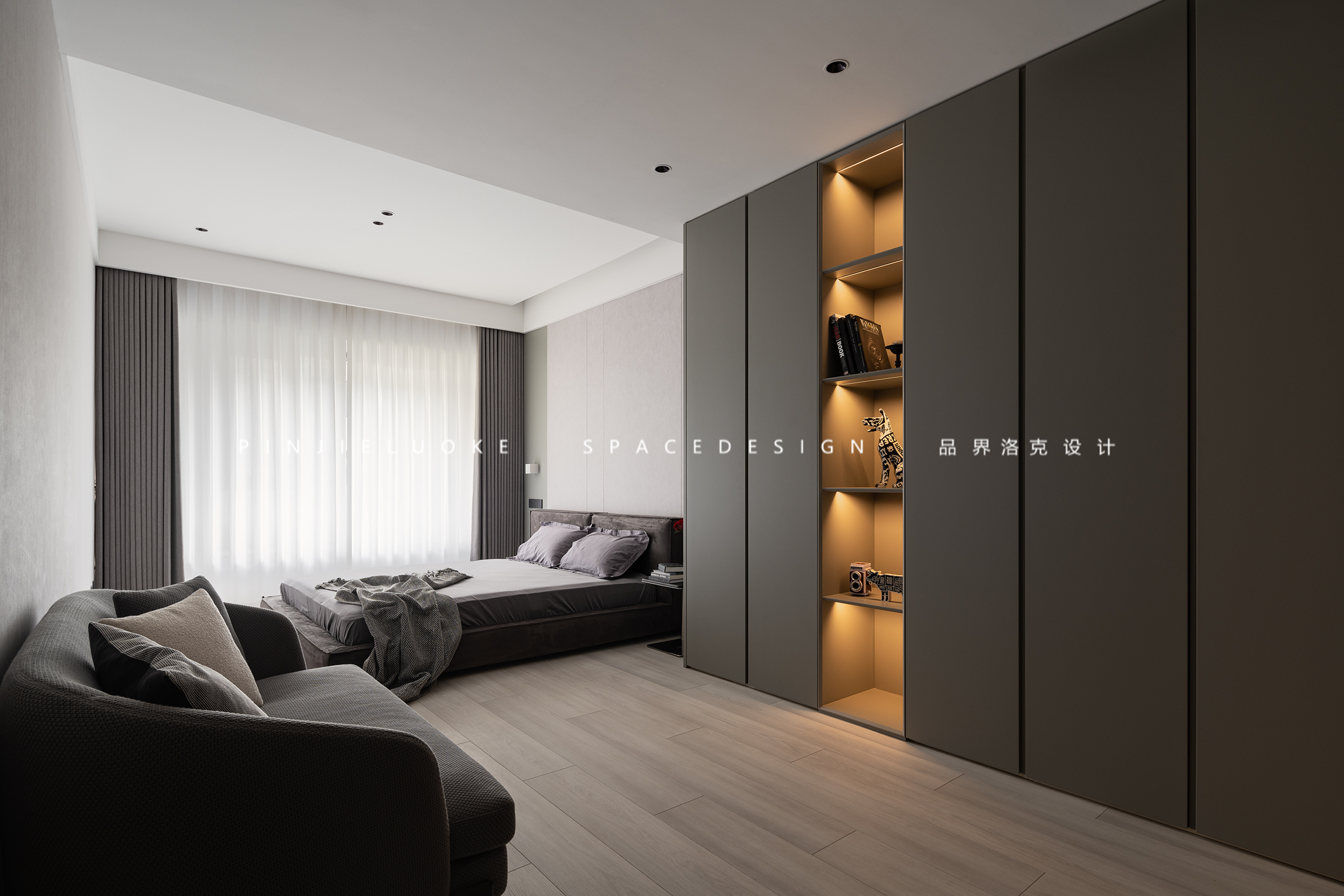 考虑到家庭成员的工作习惯以及休息时间将二层中间的小房间也到造成一间套房,以功能性出发,整体简约素雅,同时也可以作为临时客房使用。