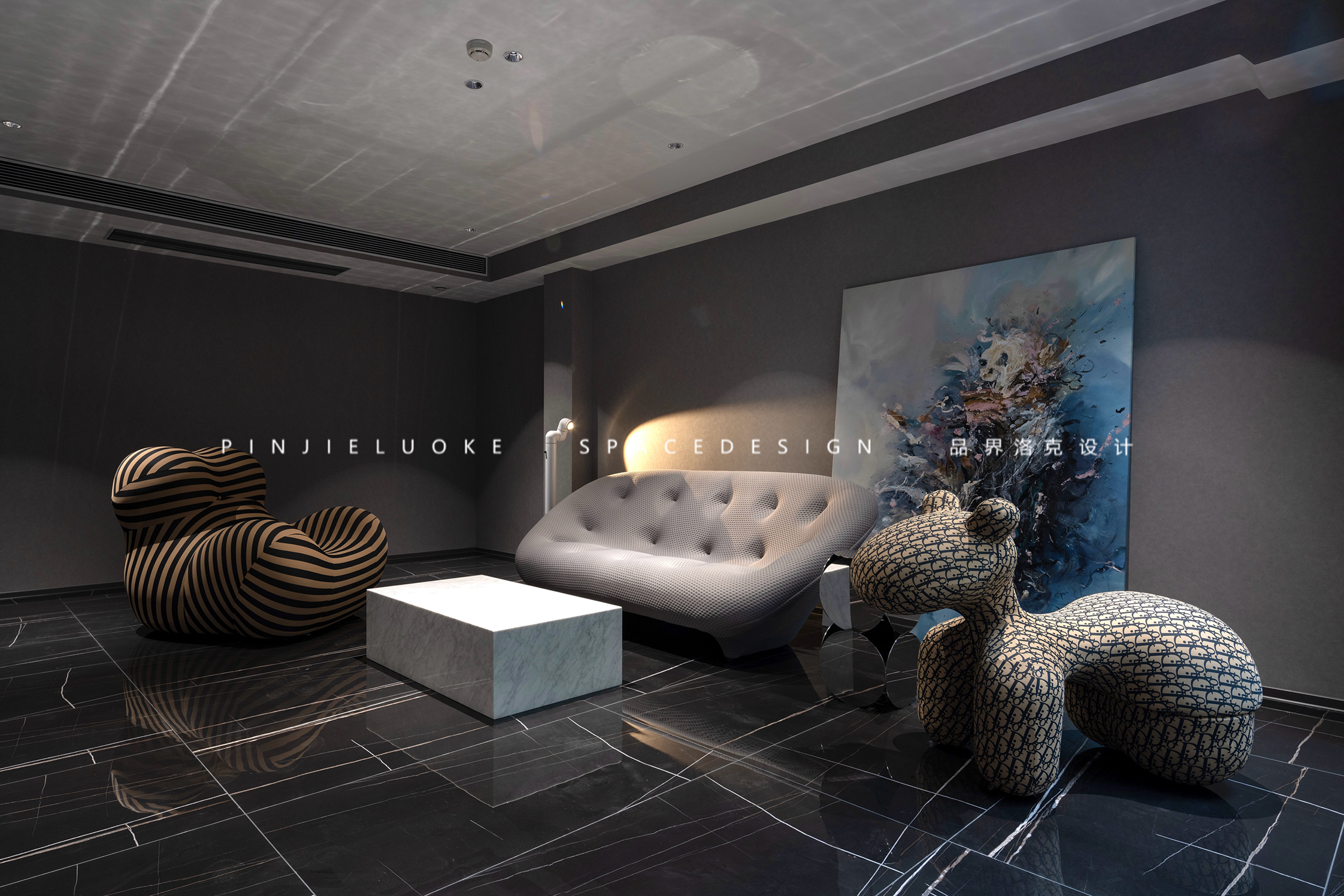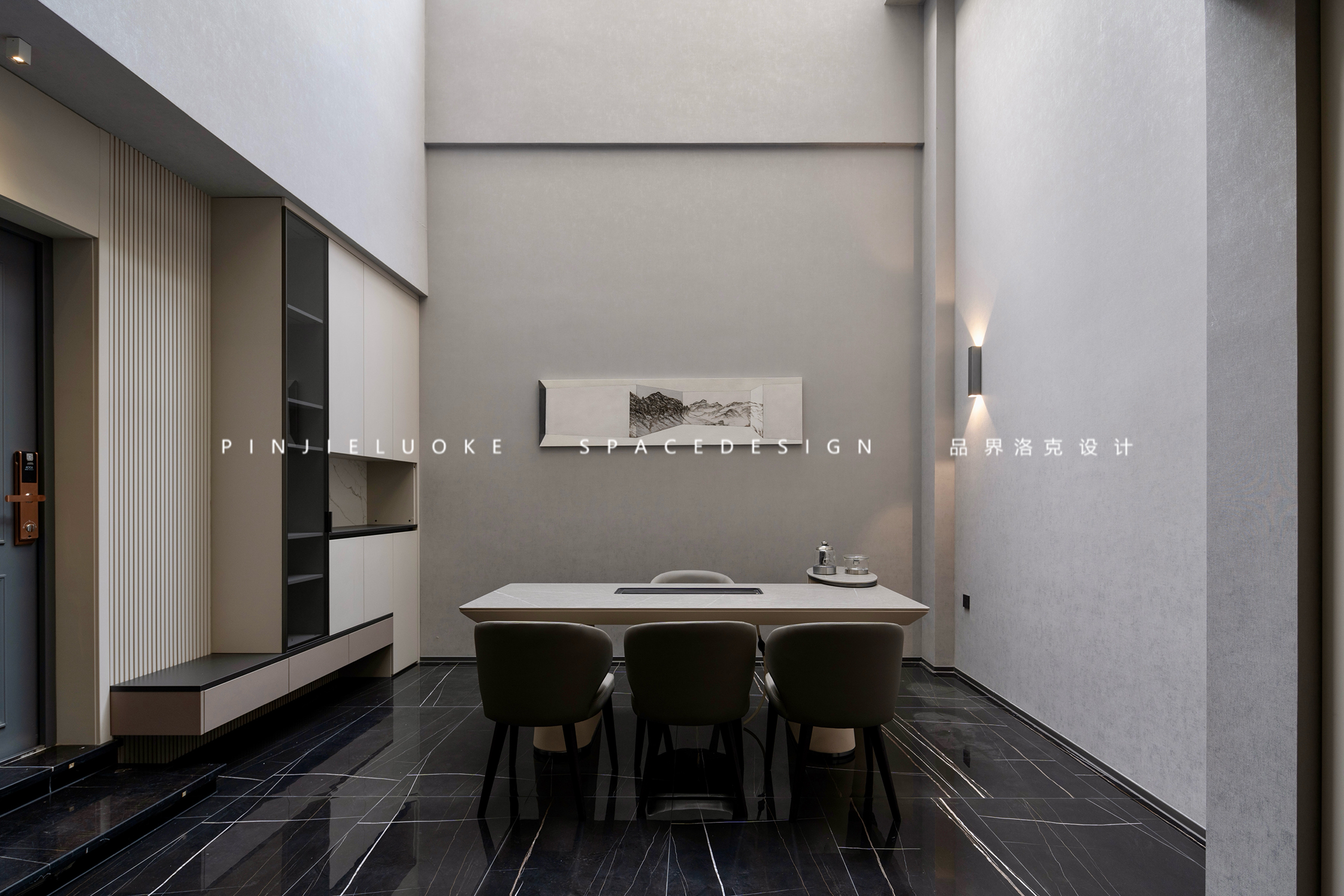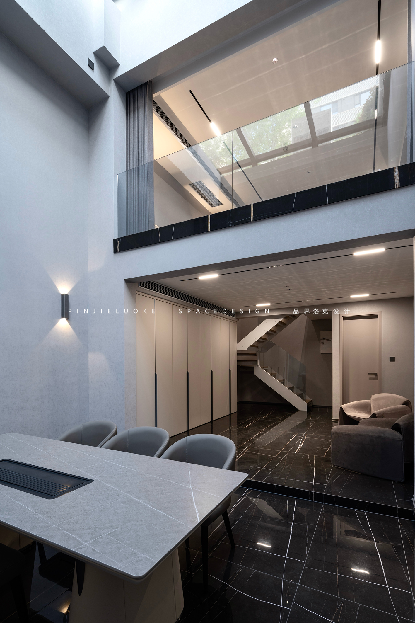 地下室按照功能划分为KTV、酒吧区、茶区以及休息区,KTV整体暗色为基调,顶面采用镜面水波纹板,加上一周的线性氛围灯光,充满科技感和梦幻氛围,酒吧区主体为互动式吧台,随着旋转楼梯走上夹层,自由灵活的设计感家具组合摆放,成为独属家中的“卡座”区;离开闹区转向静区,干净素雅的品茶氛围,跳高的空间感也让人更加放松惬意,二层也准备了休息区用来小憩。地下室空间动静划分、功能丰富。