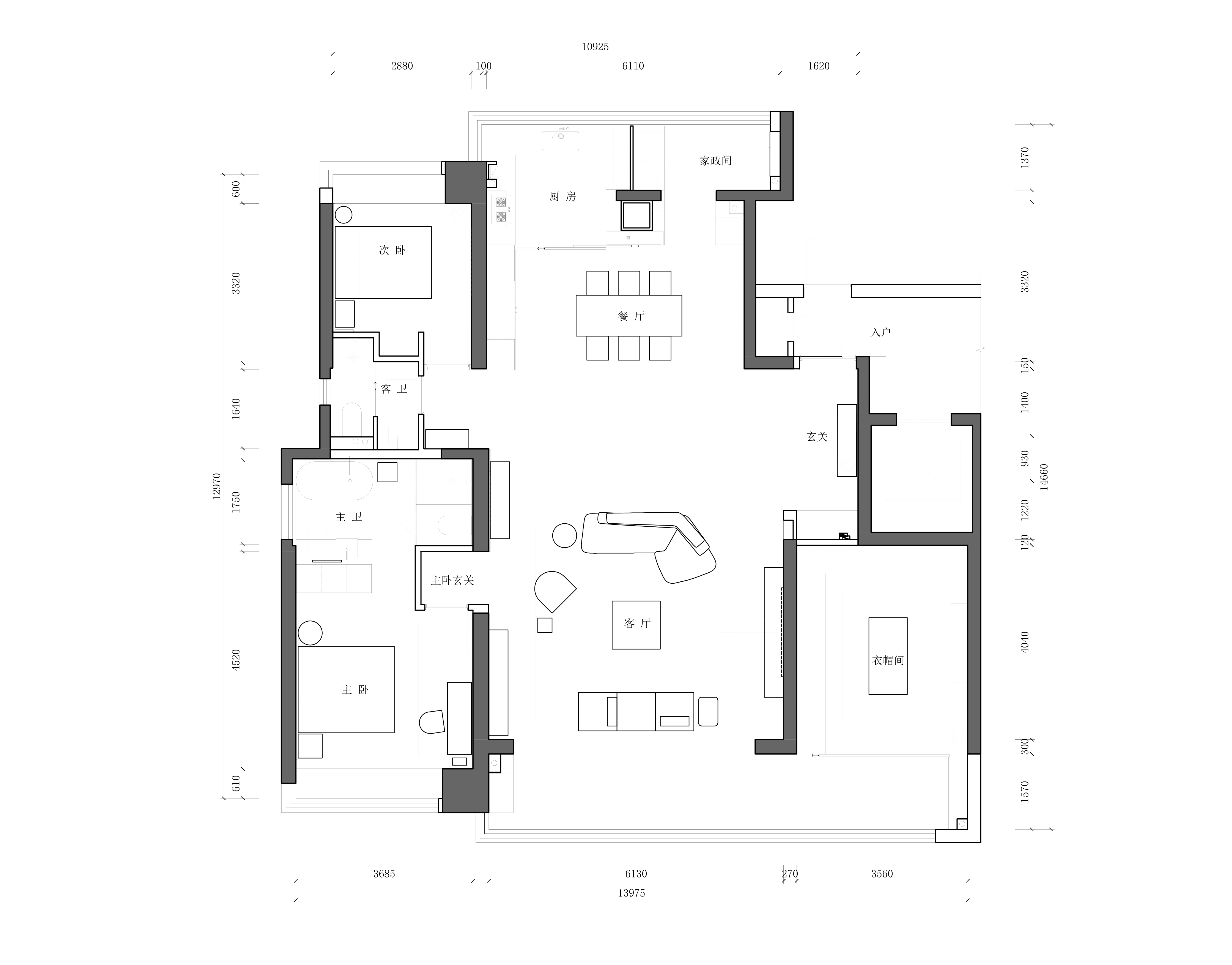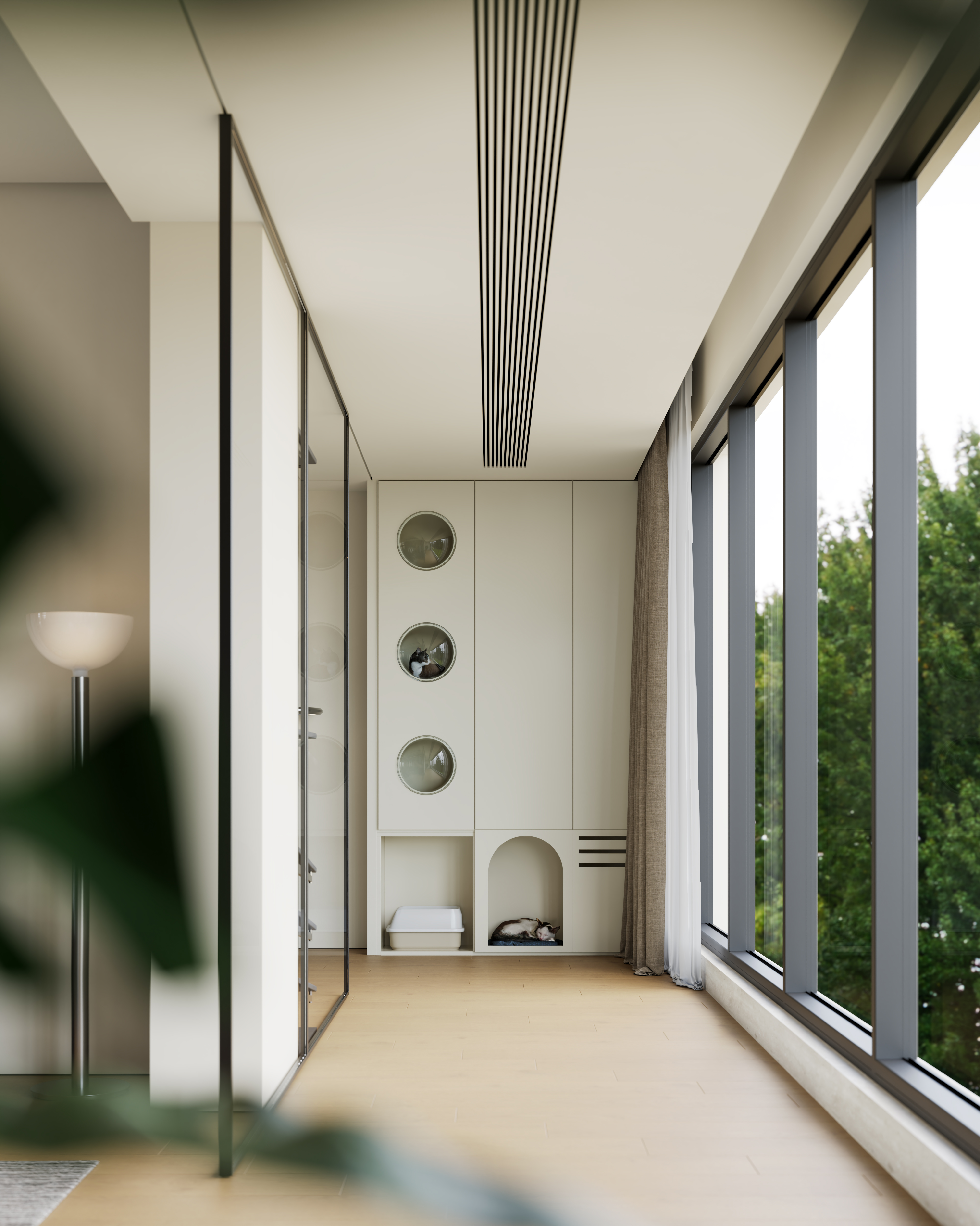 空间布局:从过去封闭压抑的格局,到如今四面通透、阳光倾泻的空间关系,完成了一次气质的蜕变。自然光与室内视野全面渗透入居家日常,而通风系统的优化,更提升了居住的舒适性与健康度。