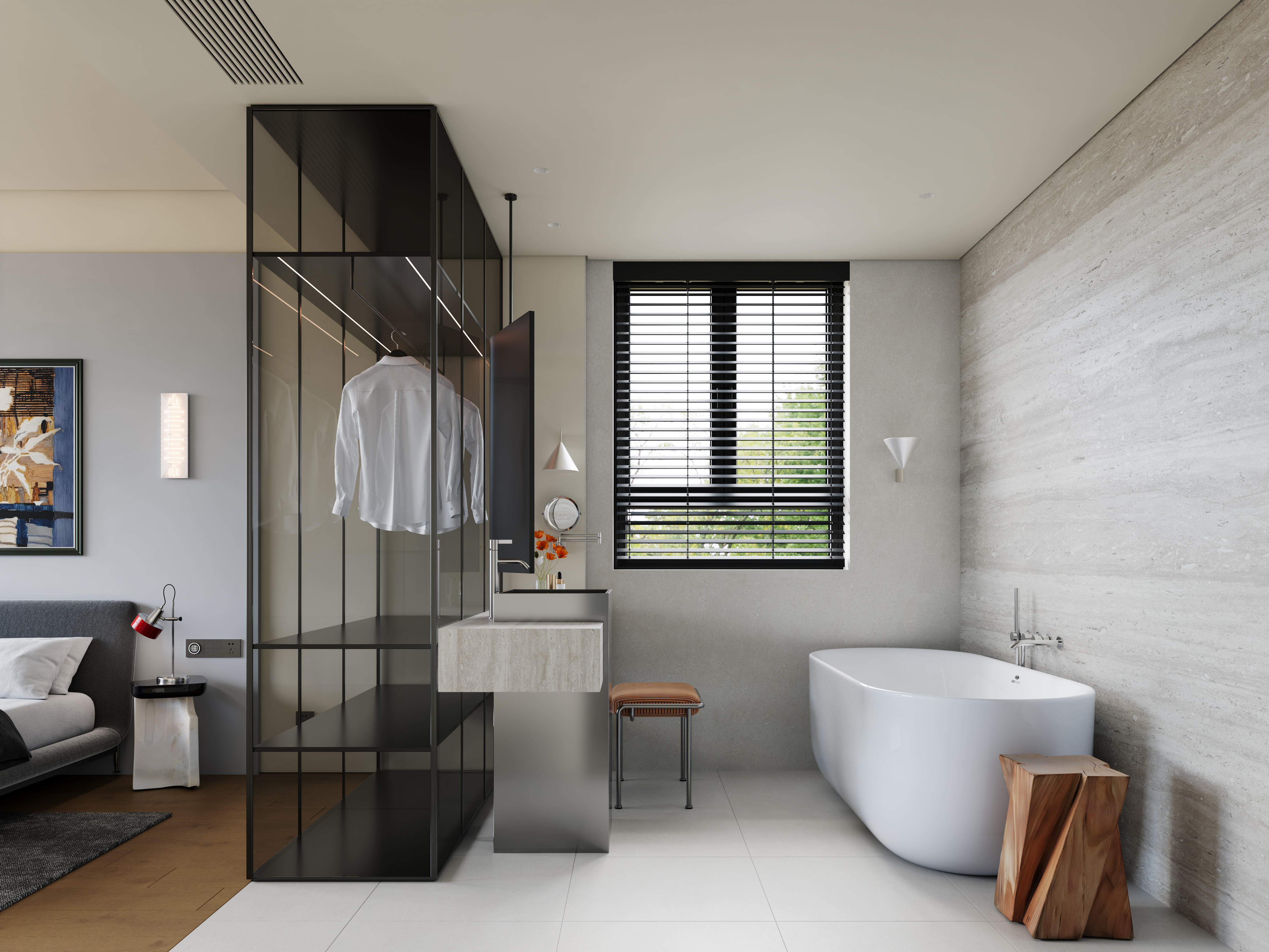 设计选材:材质上的选择亦令人回味无穷——白色乳胶漆、玻璃与石材在此交融为一个宁静现代的语境。这些材料既富于质感,又历久弥新,使新与旧之间达成优雅和解。