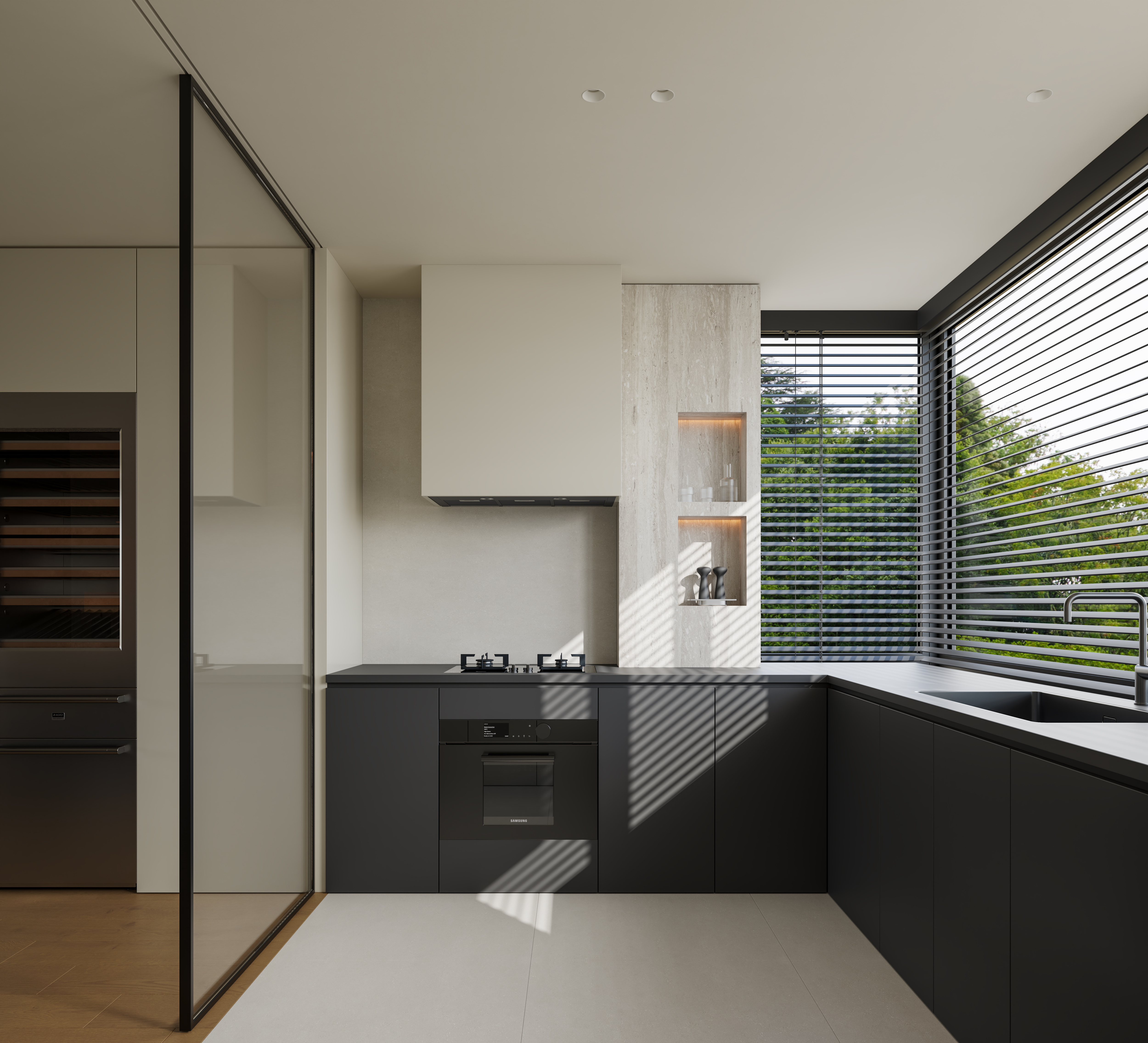 空间意境:这场改造的核心理念,是尊重原有的存在。设计团队并未选择粗暴的推倒重建,而是以温柔却坚定的方式,保留了大部分原有结构。这不仅大大减少了建材浪费与碳排放,也让资源得以更精准地投入到厨房、餐储室、洗衣间及共享起居空间等关键区域,完成了一次节制而深刻的革新。