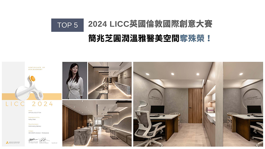 全球指标性设计大奖London International Creative Competition,于2006年开展至今,每年皆引领建筑、绘画、影像等11大创作领域齐步向前。简兆芝设计团队取女性优柔的身形曲线意象,搭配布料和镀钛铁件等人造元素的细节点缀,齐谱以人工呈现自然美的企业理念,医美空间《柔曦映弧》夺得赛事「Official Selection」奖项!