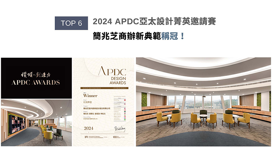 APDC亚太设计中心是室内设计联合国组织IFI的全球成员,而由该组织发起的APDC AWARDS,是亚太地区最重要的奖项之一。简兆芝设计团队藉由宽幅开窗引景入室,串联南北日照、融合户外绿意,紧接皮革、镀钛金属与跳色软装铺陈,形构兼具感性与理性的现代办公空间《衍流萃息》,在静谧之中绽放企业文化的深度与柔韧,最终夺下「Winner」奖项,开创未来商办新典范!