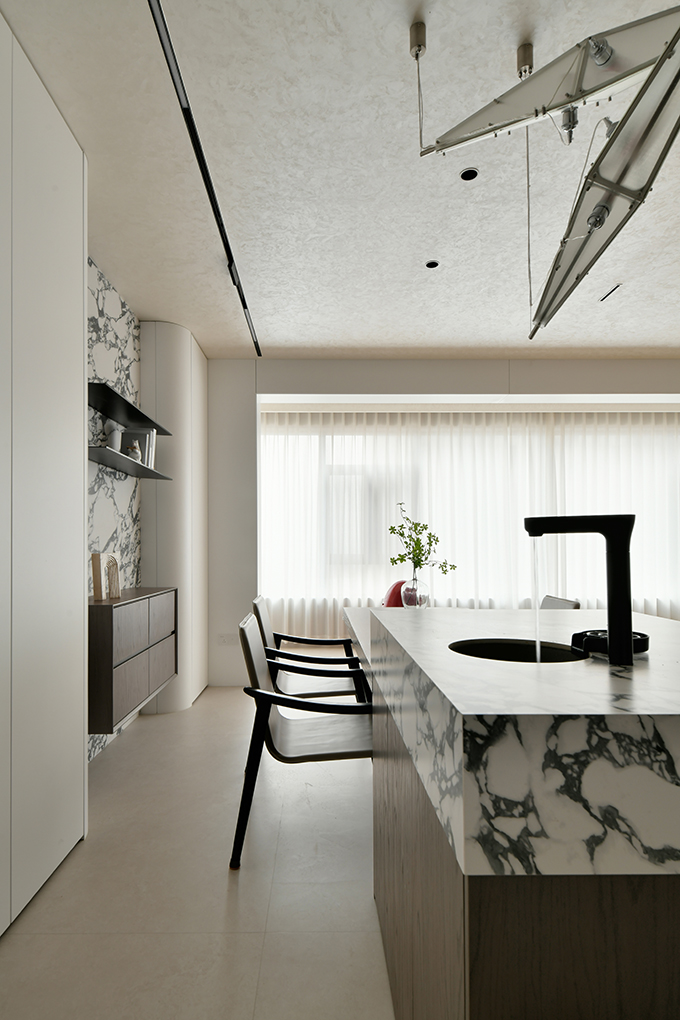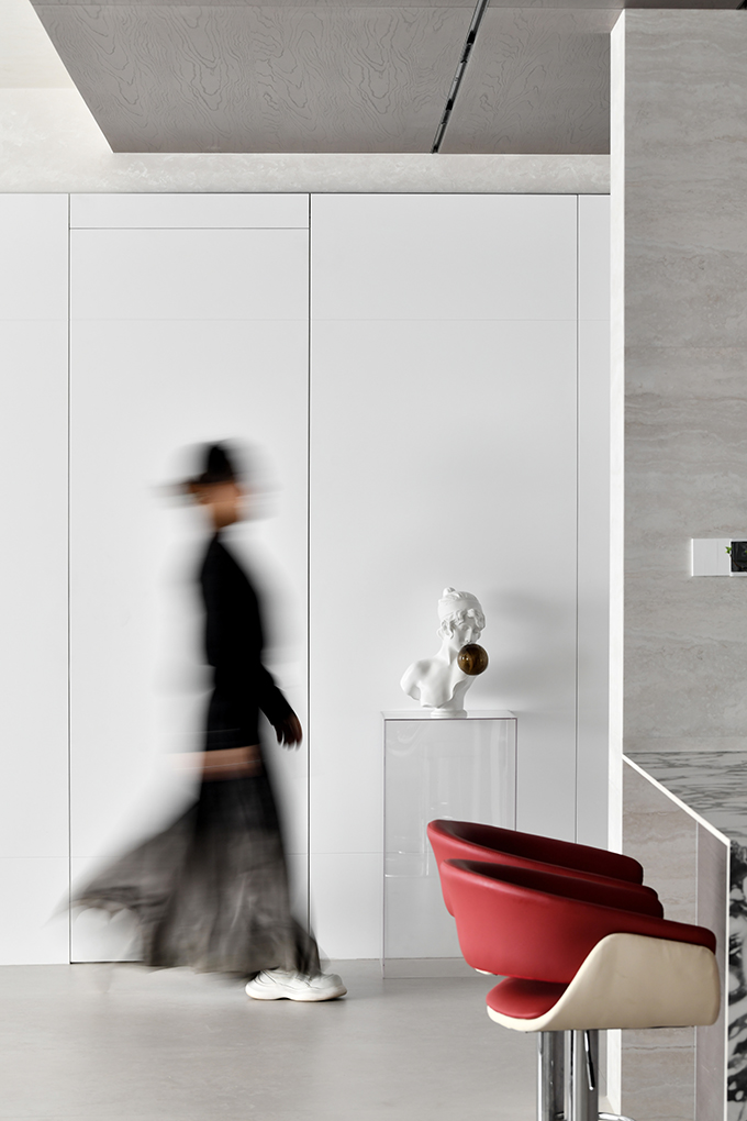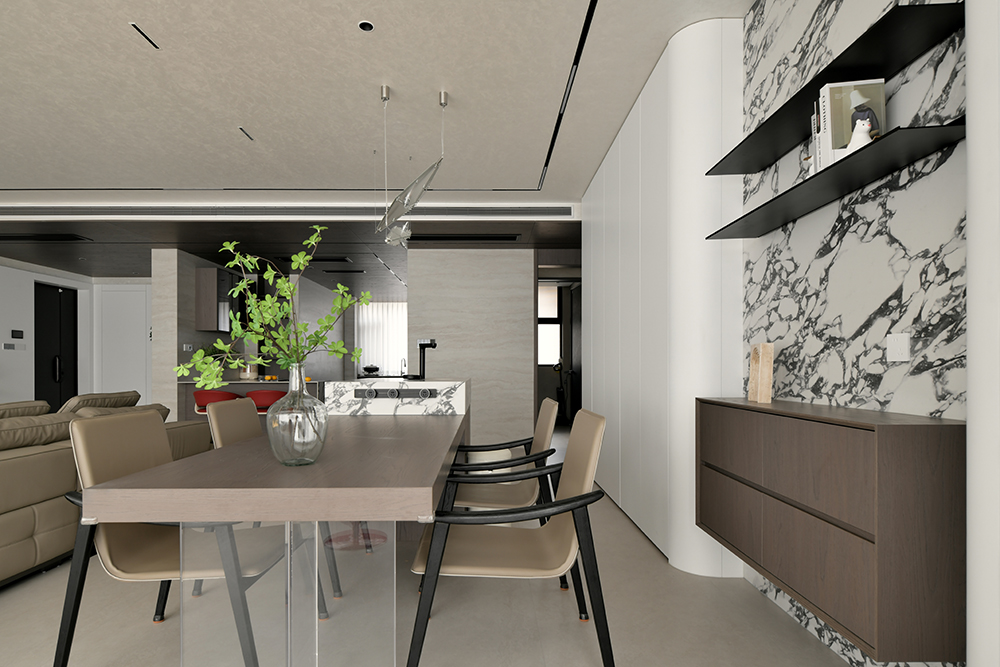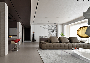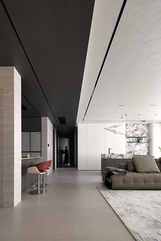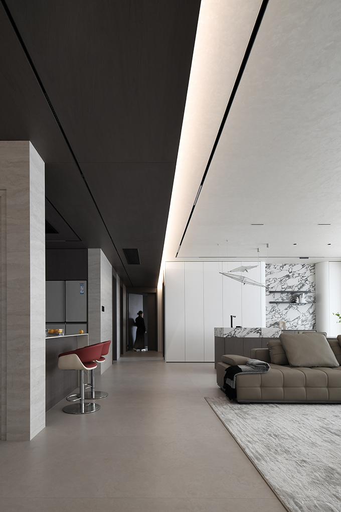 用户体验:当女主人在厨房烹饪,男主人坐在吧台与之互动,小孩围绕沙发相互追逐打闹,我想,这就是美好吧