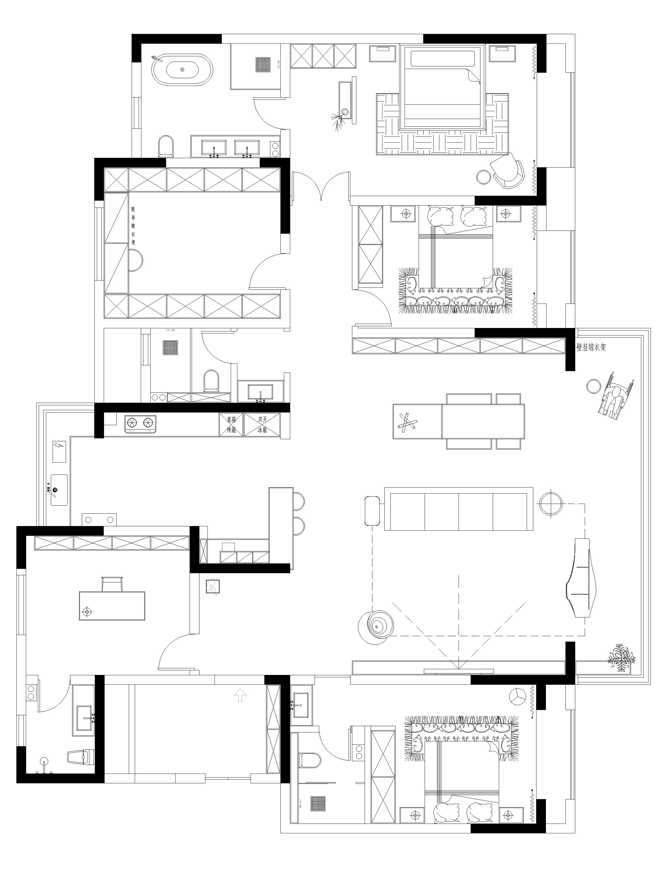 空间布局:空间贯穿,过道到主卧的空间延伸,开放空间的互动性