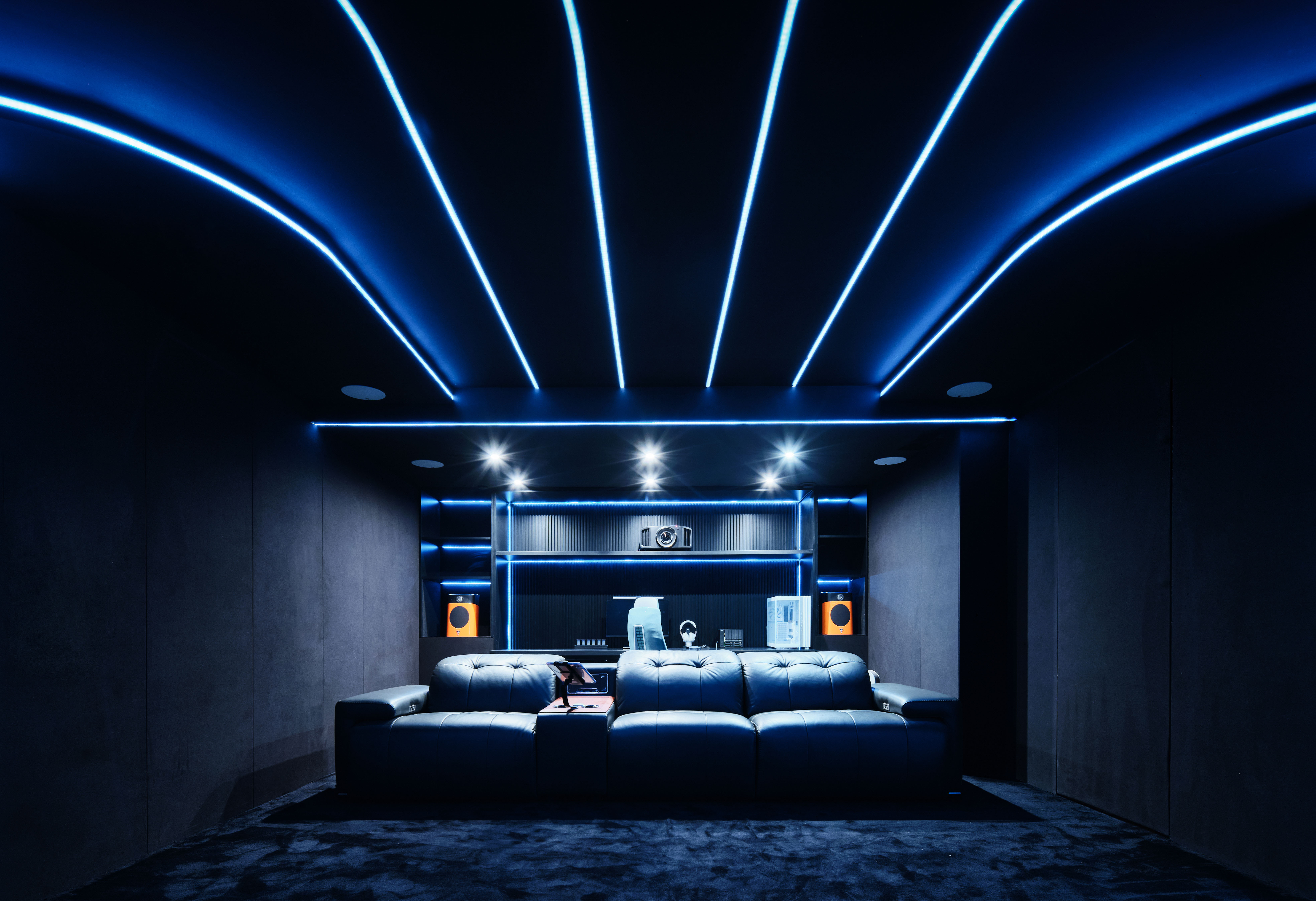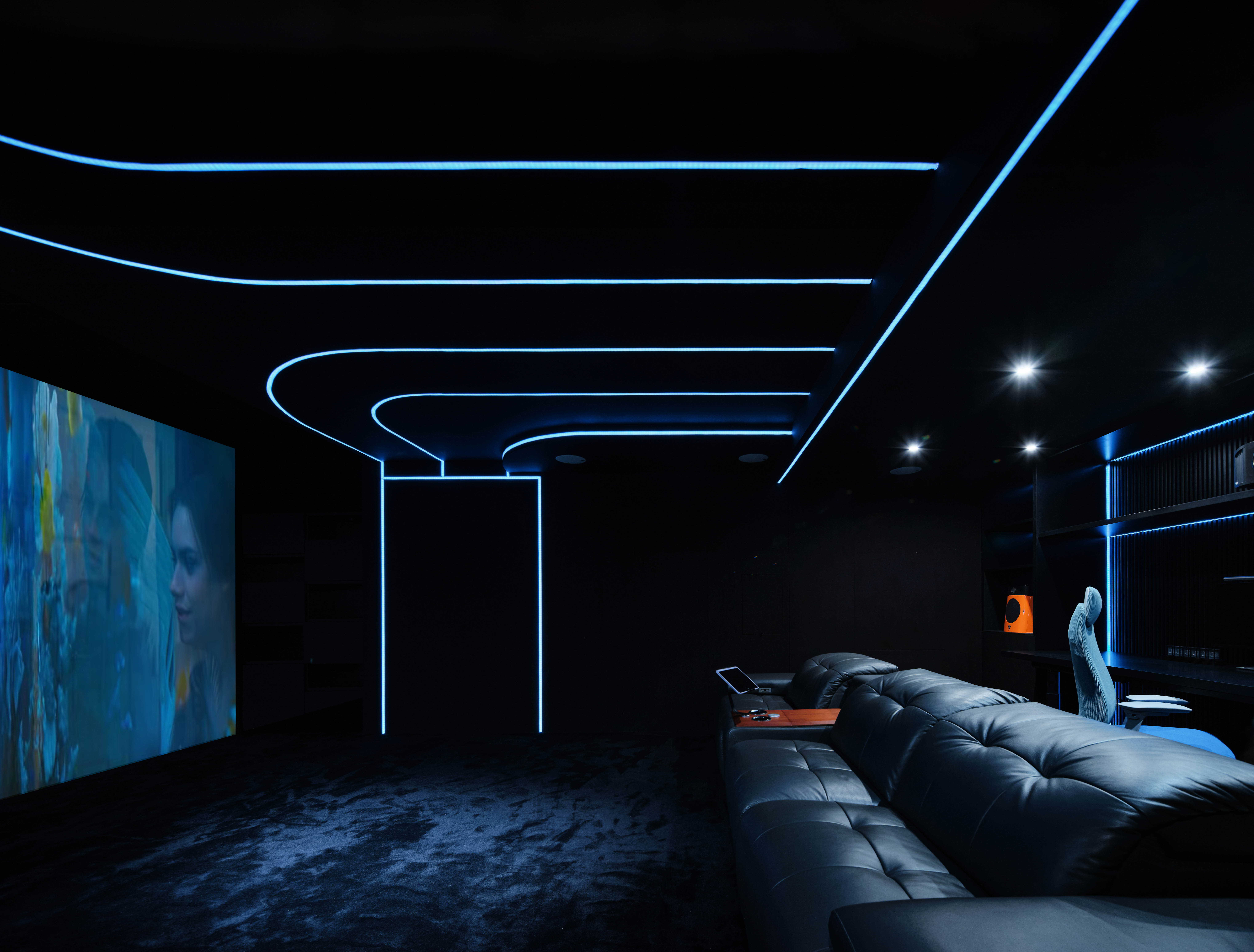 影音室配备满墙巨幕与4D体感沙发,提供私人影院级享受。