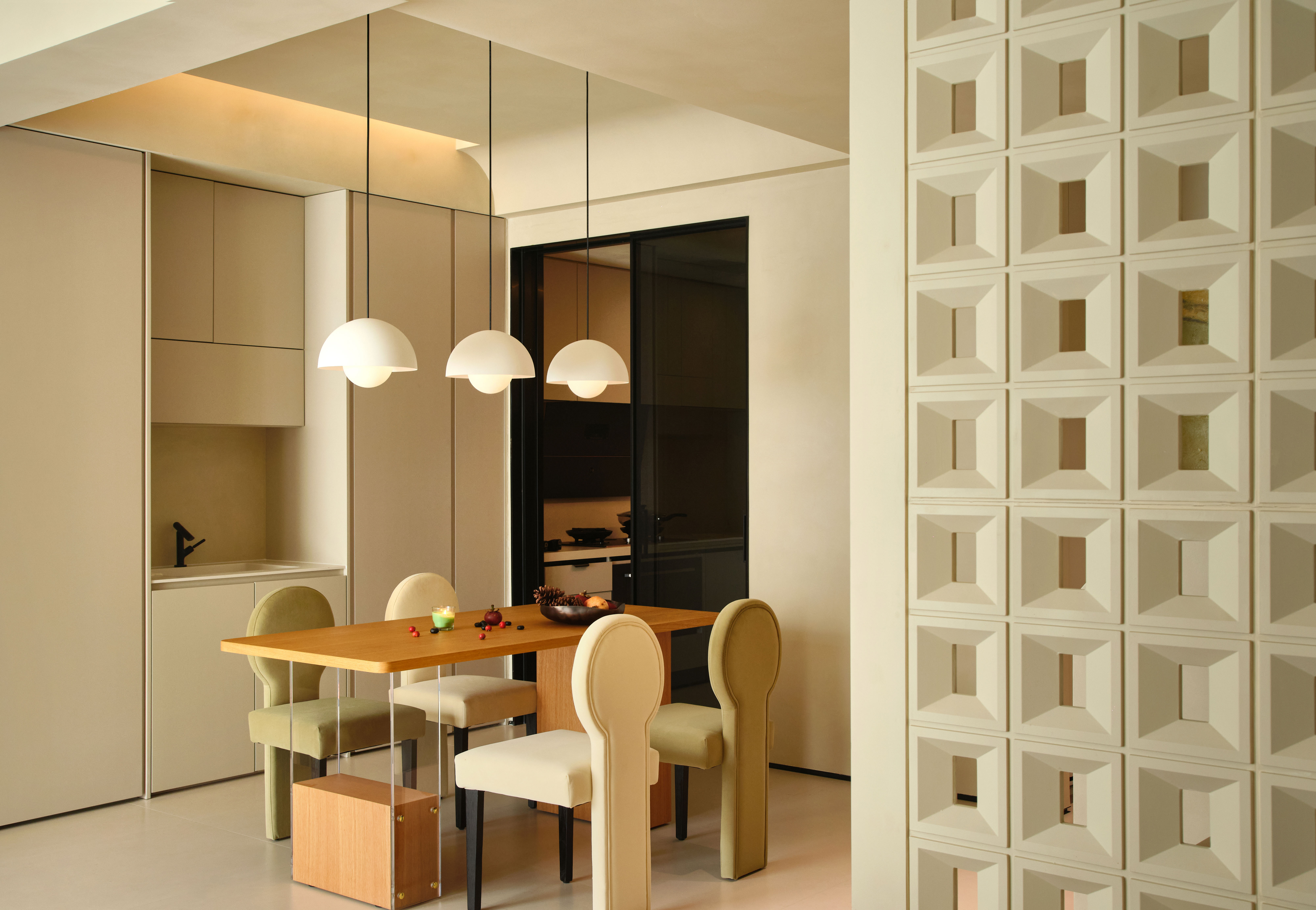 餐桌是木质与亚克力的奇妙对话,厚重与轻盈在此碰撞。