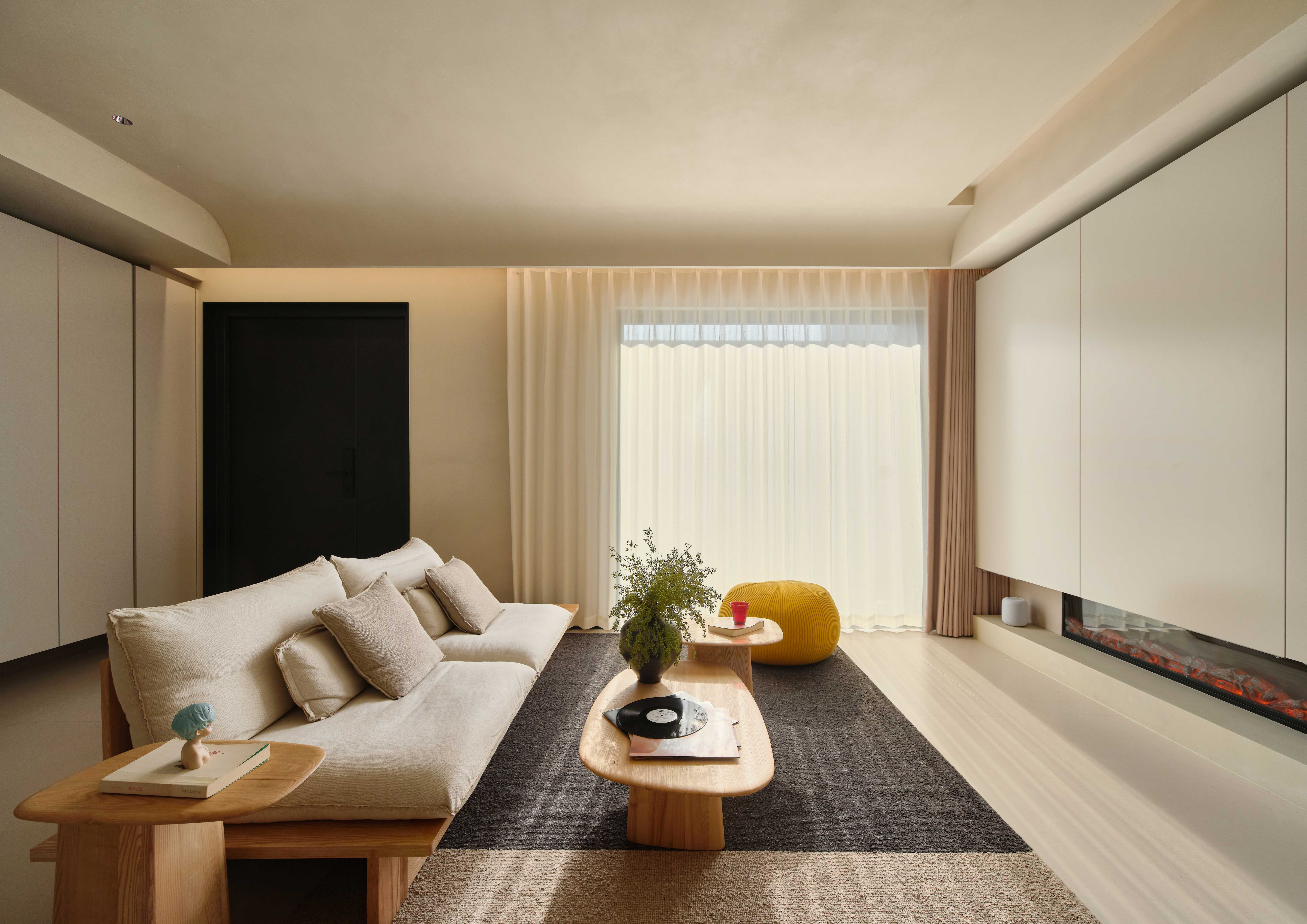 奶油色的墙面像一块柔软的画布,木质家具的温润纹理在中间缓缓铺展。