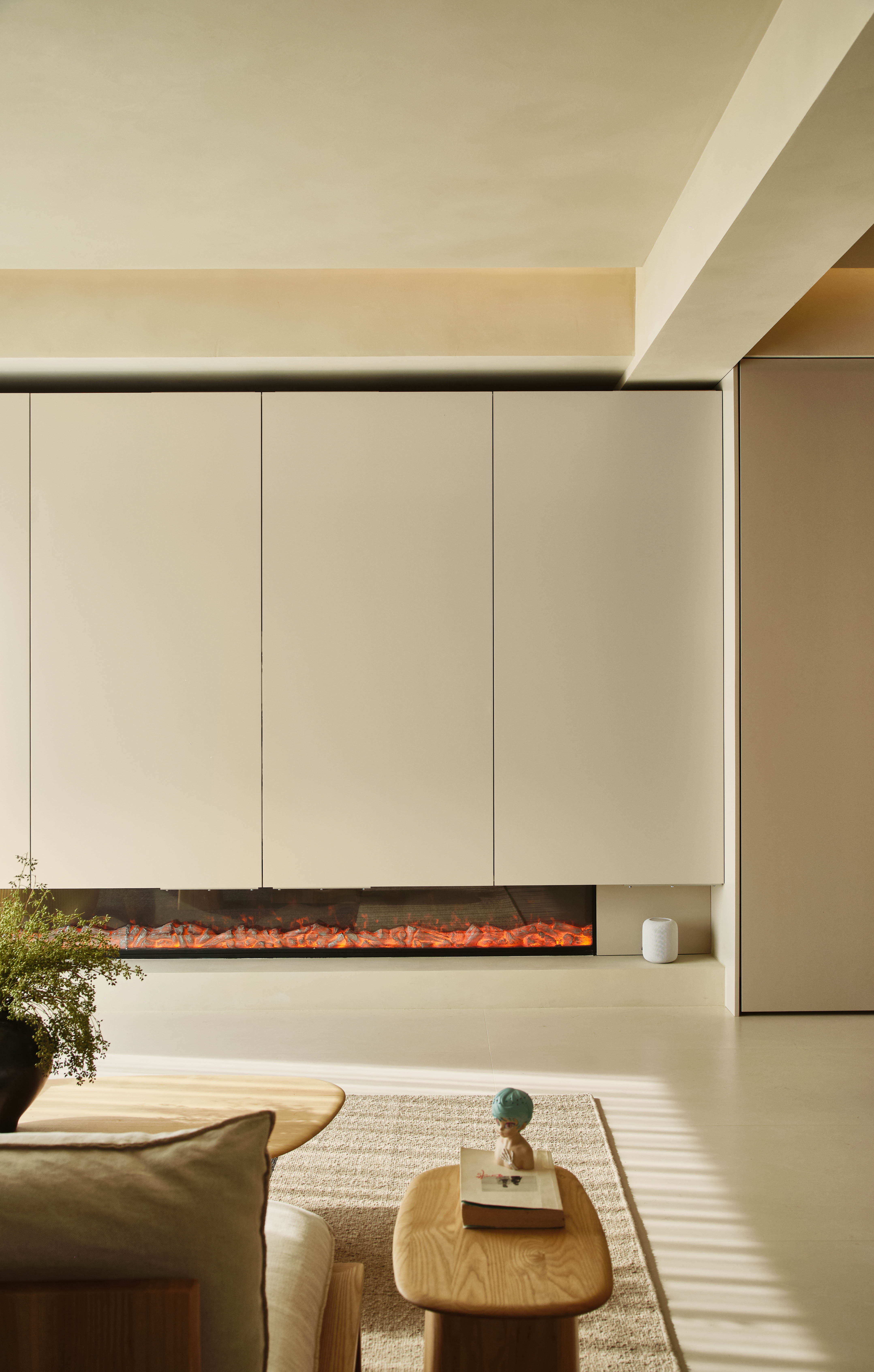 设计选材:全屋微水泥打造了高级的舒适,让人既感到沉静安稳,又觉得温暖包容。融入木质家具,这两种材料都源于自然,且色彩饱和度低,共同营造出一种质朴、静谧、让人心绪平和的氛围。它们不张扬,却经久耐看,能有效缓解现代生活的焦虑感。