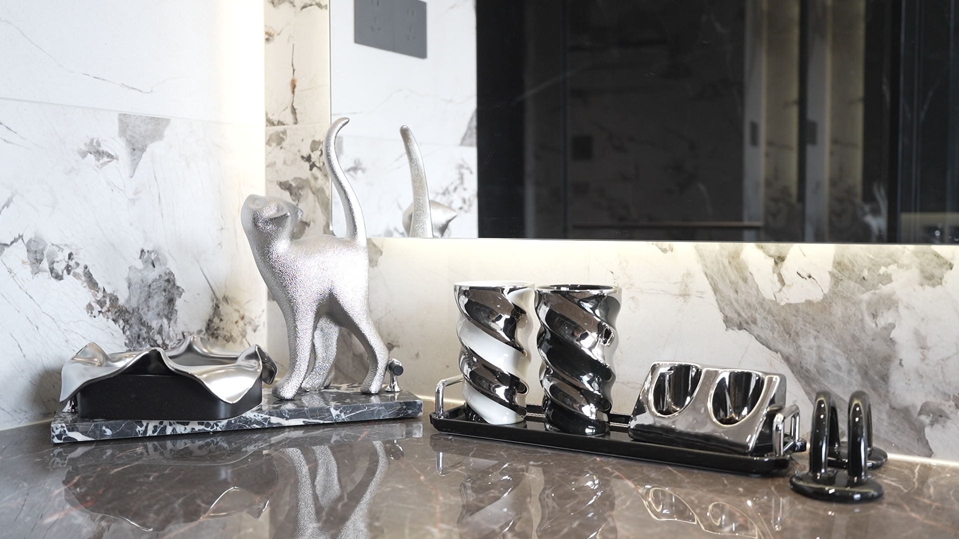 • 用「哑光+圆弧」替代“高光+锐利”:地面瓷砖、大理石茶几均采用哑光质感+圆弧边角,弱化冷硬视觉的同时,适配家庭的安全与日常使用;