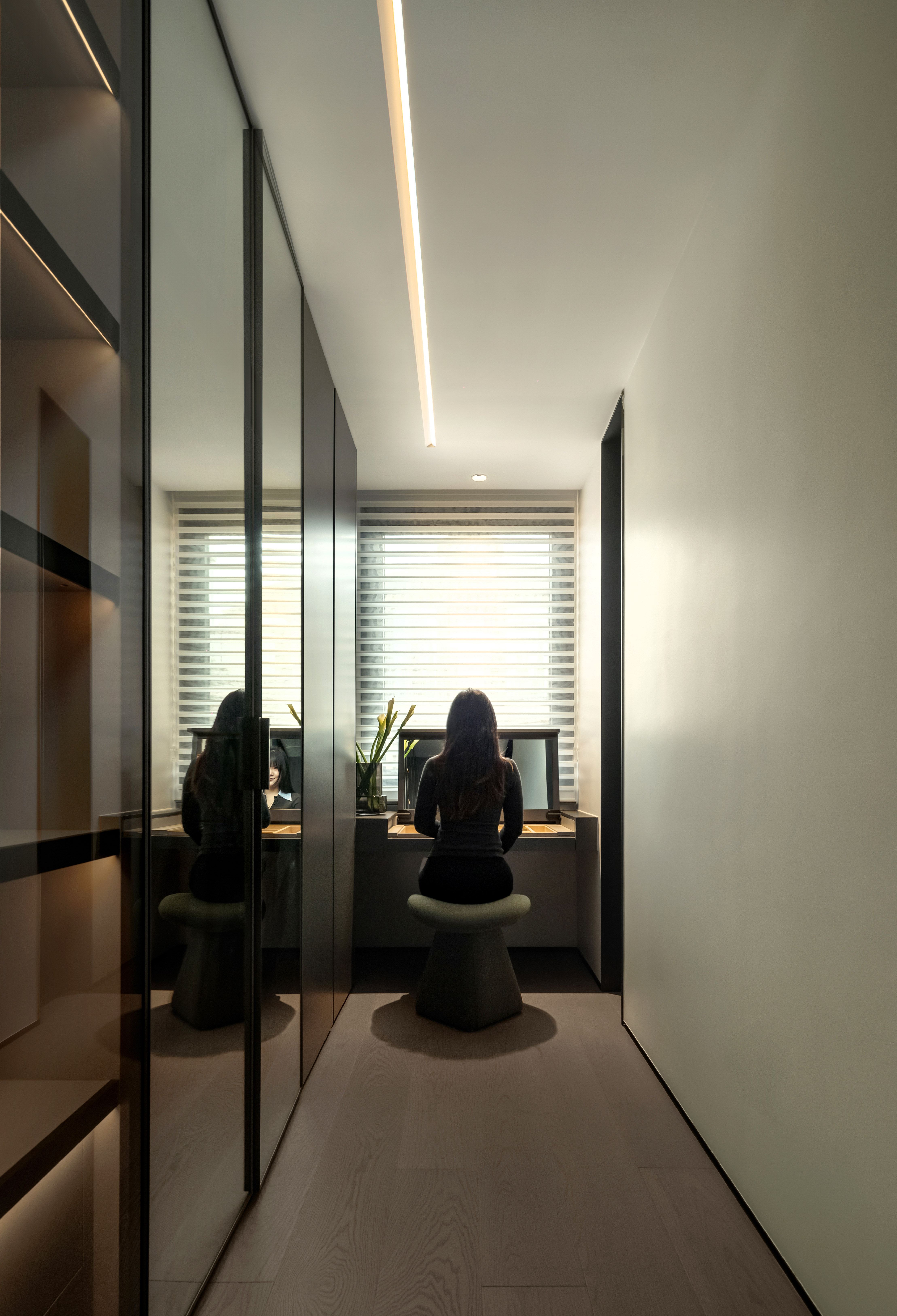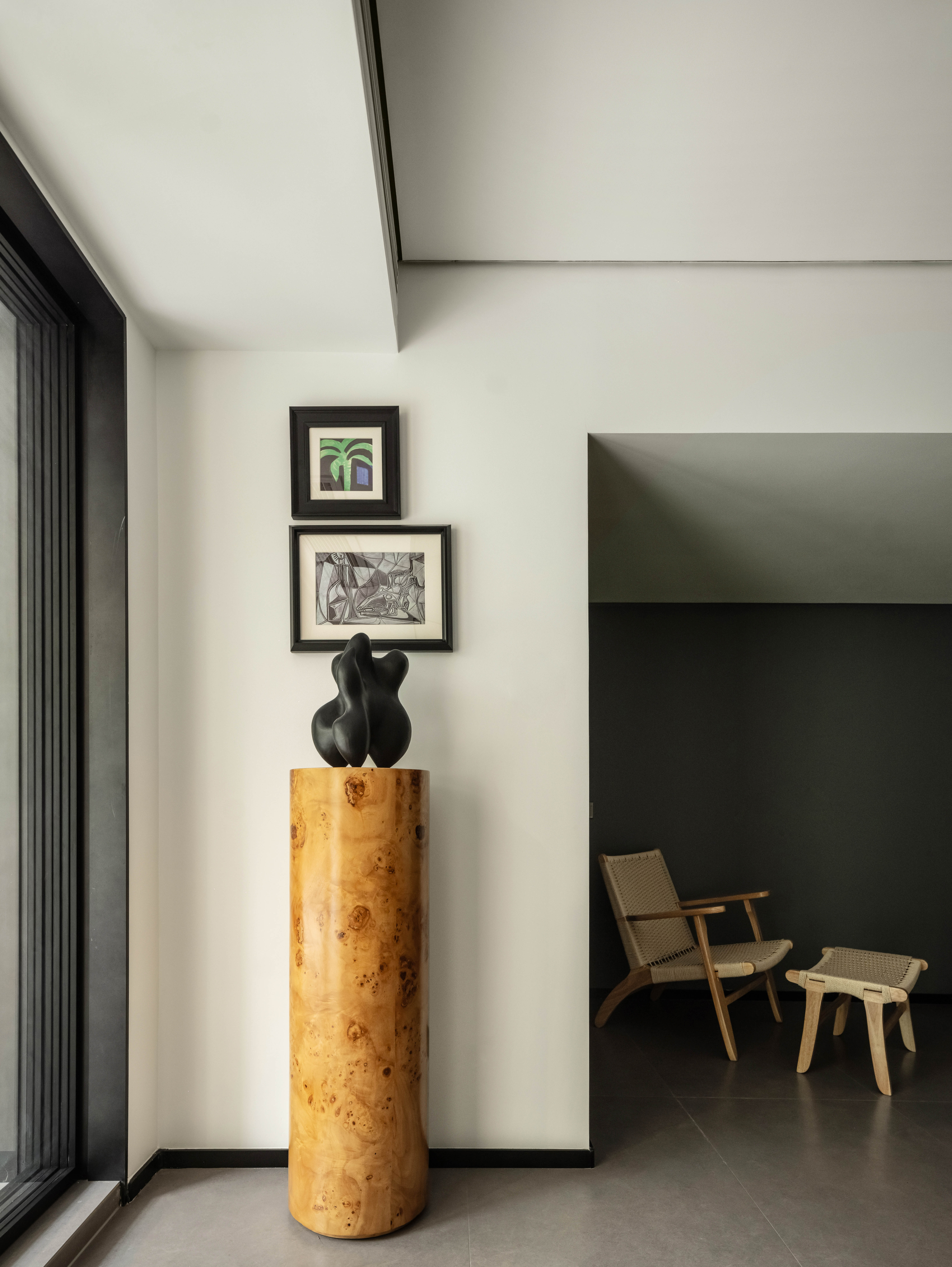 空间意境:作品以“光影叙事”构建环境风格创新。通过建筑原有采光条件,捕捉自然光影的动态变化,结合人工灯光设计,使空间在不同时段呈现戏剧化场景。同时,以艺术软装作为色彩与形态的突破点,在极简基调中注入鲜活张力。