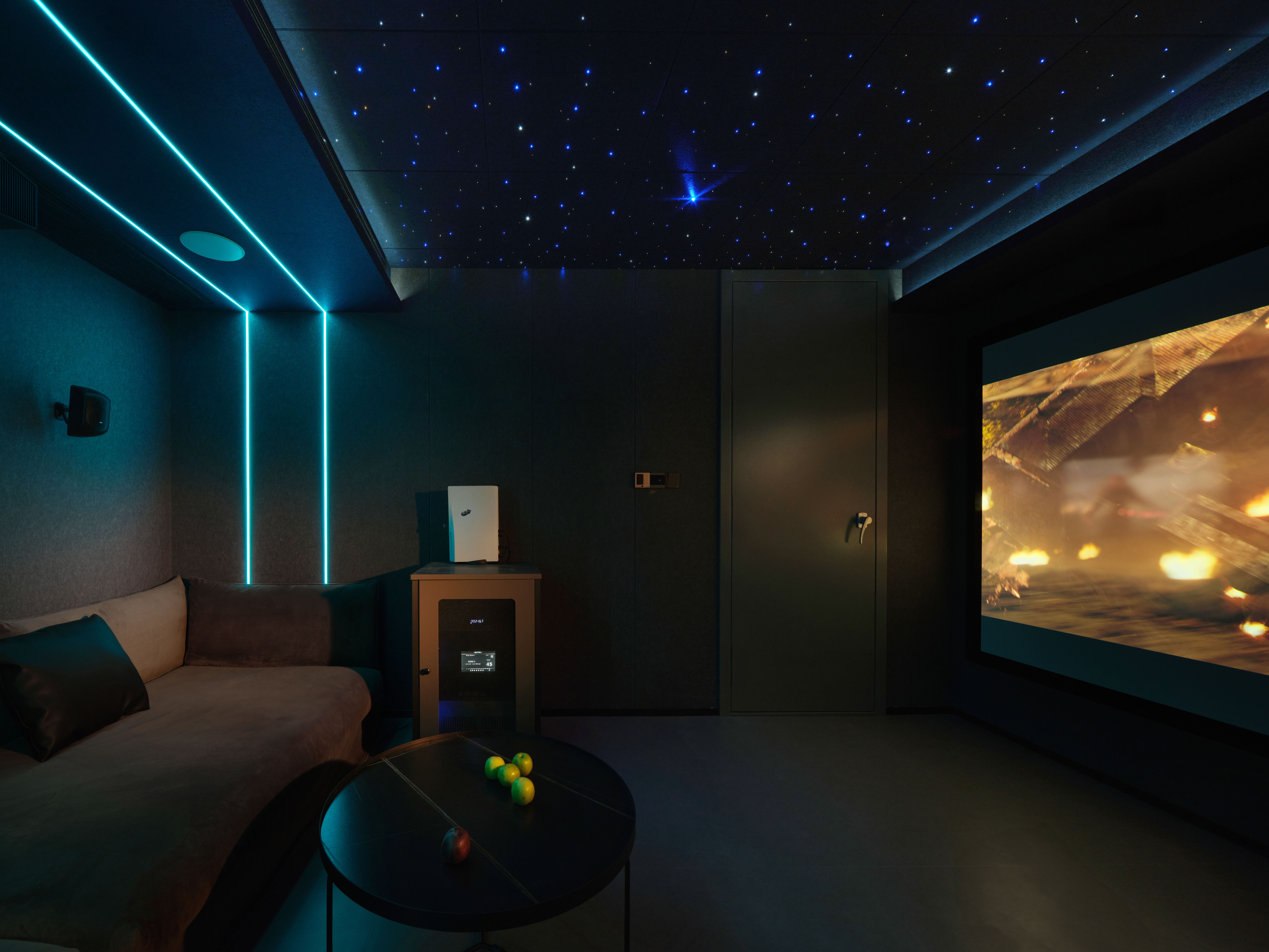 音影室是全家人的沉浸式欢聚主场,孩子为动画片的冒险情节欢呼,大人沉浸在大片的震撼视效中。