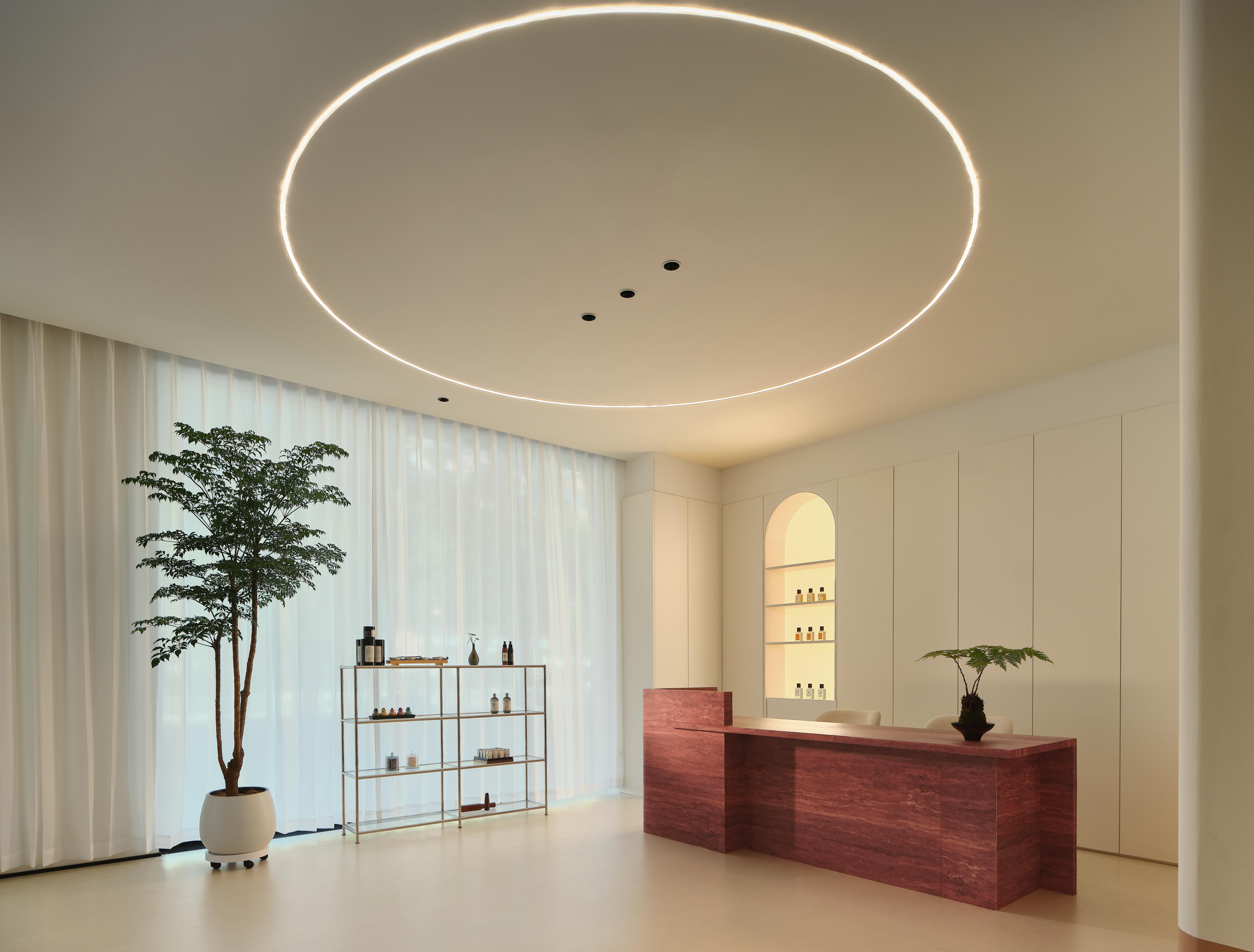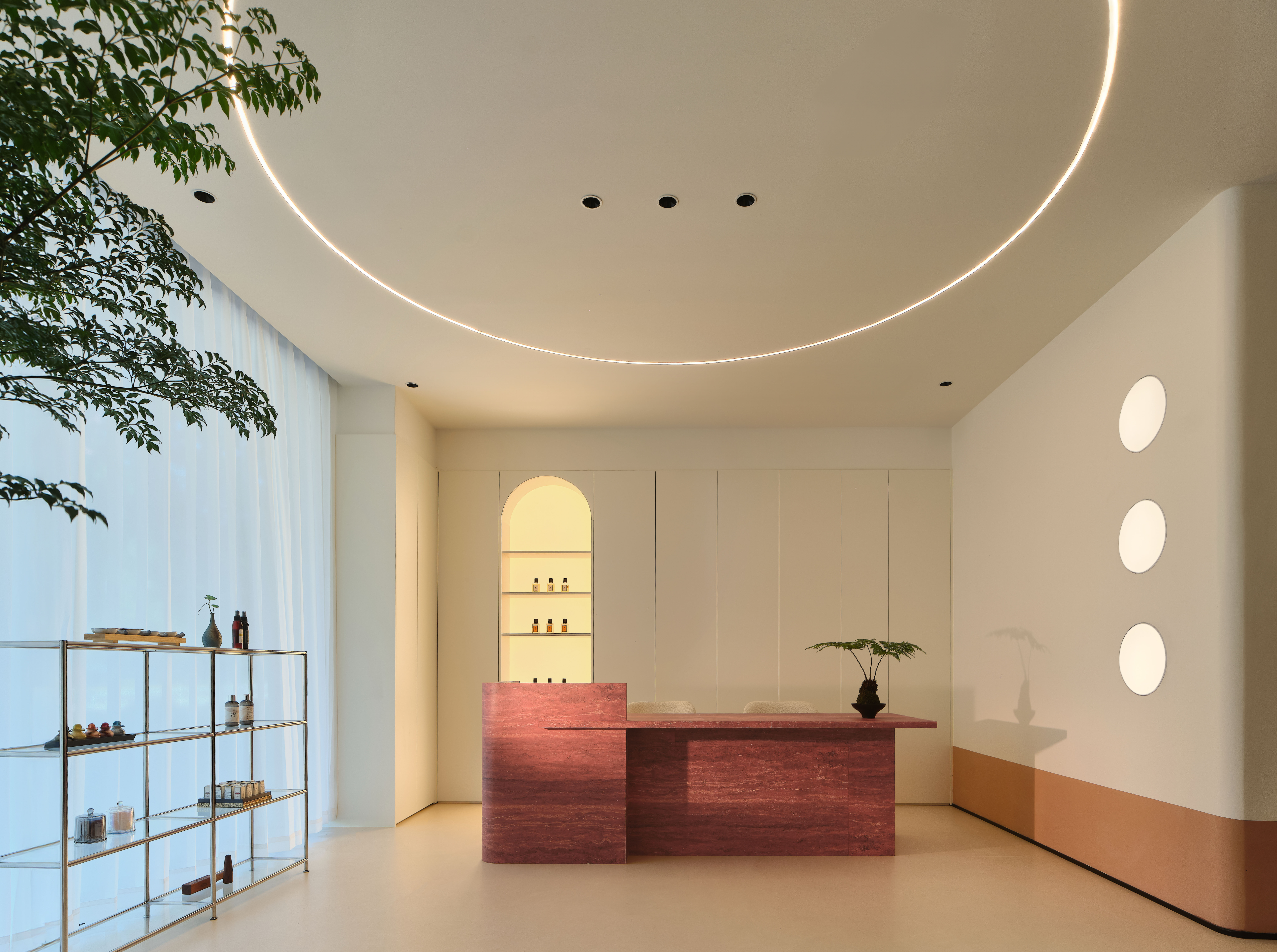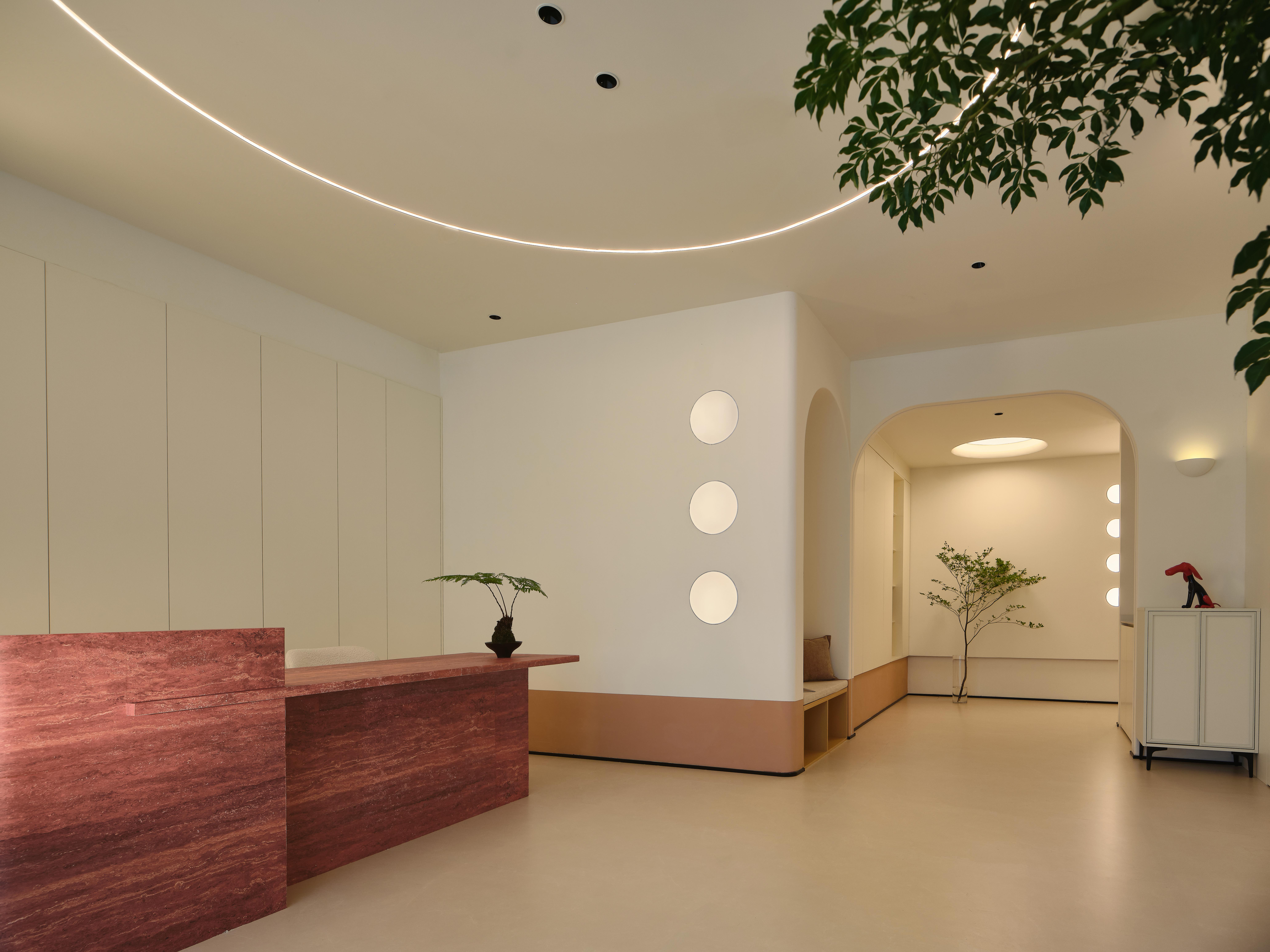 项目定位:为成熟美容品牌进行升级迭代,从过往单纯的店面形象设计延伸至系统性空间体验重塑。设计定位为“都市谧境”,在喧闹城市与质朴社区中打造一处沉静优雅、兼具专业功能与情感疗愈的美容护理空间,以契合当代审美与品牌发展的全新面貌服务新老顾客。