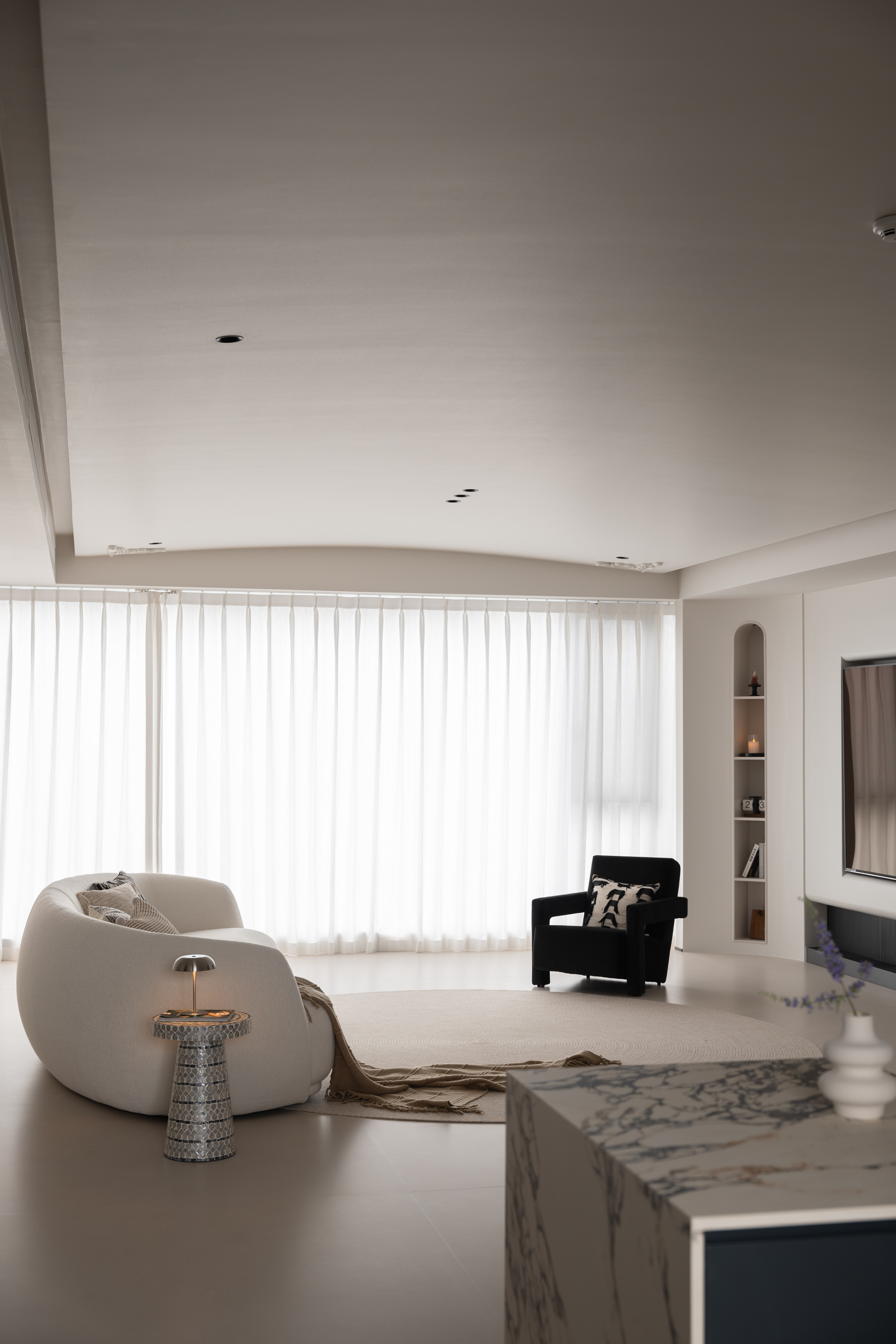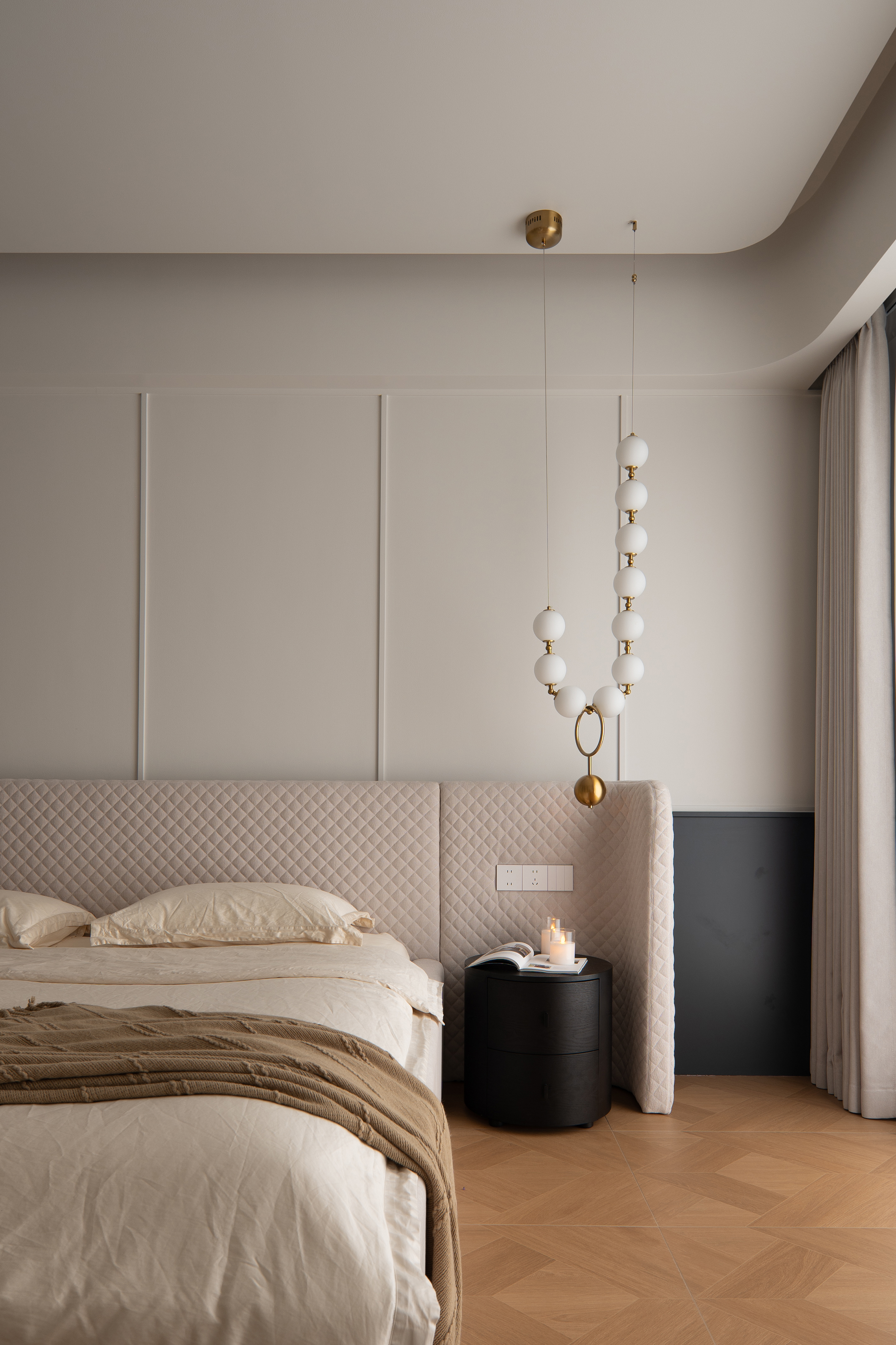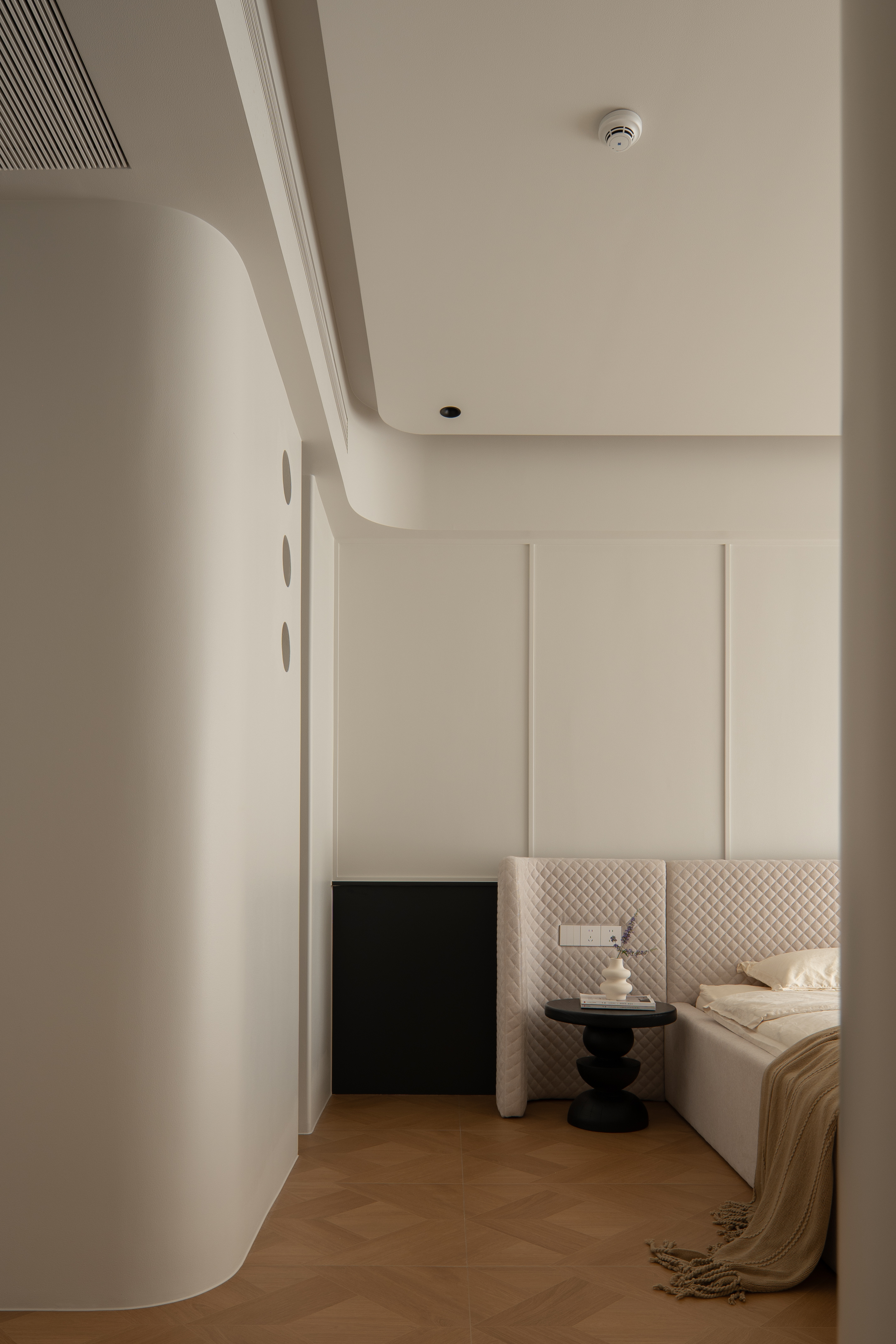 空间布局:通往主卧的过道,是一弧形墙体,与主卧相联动。