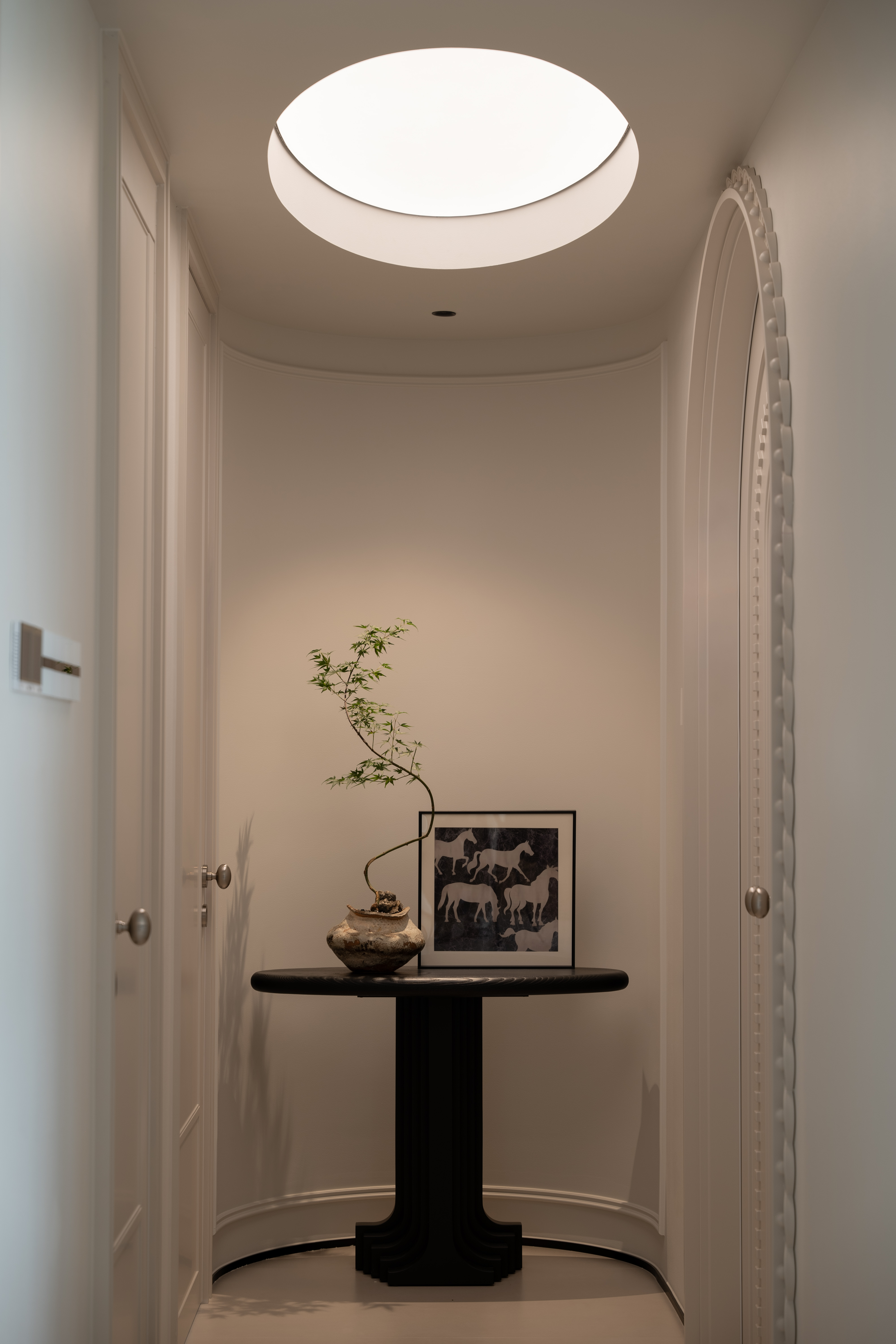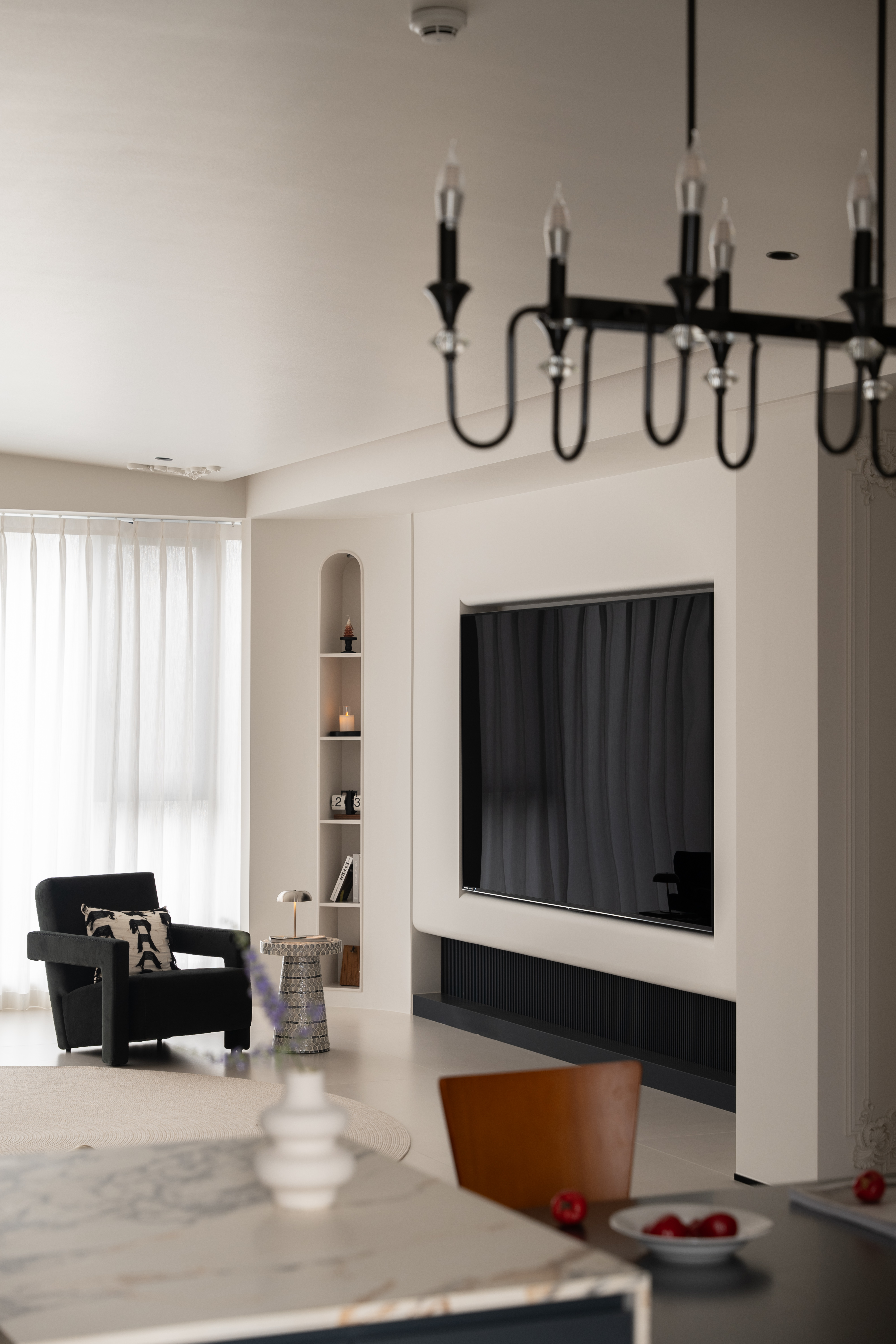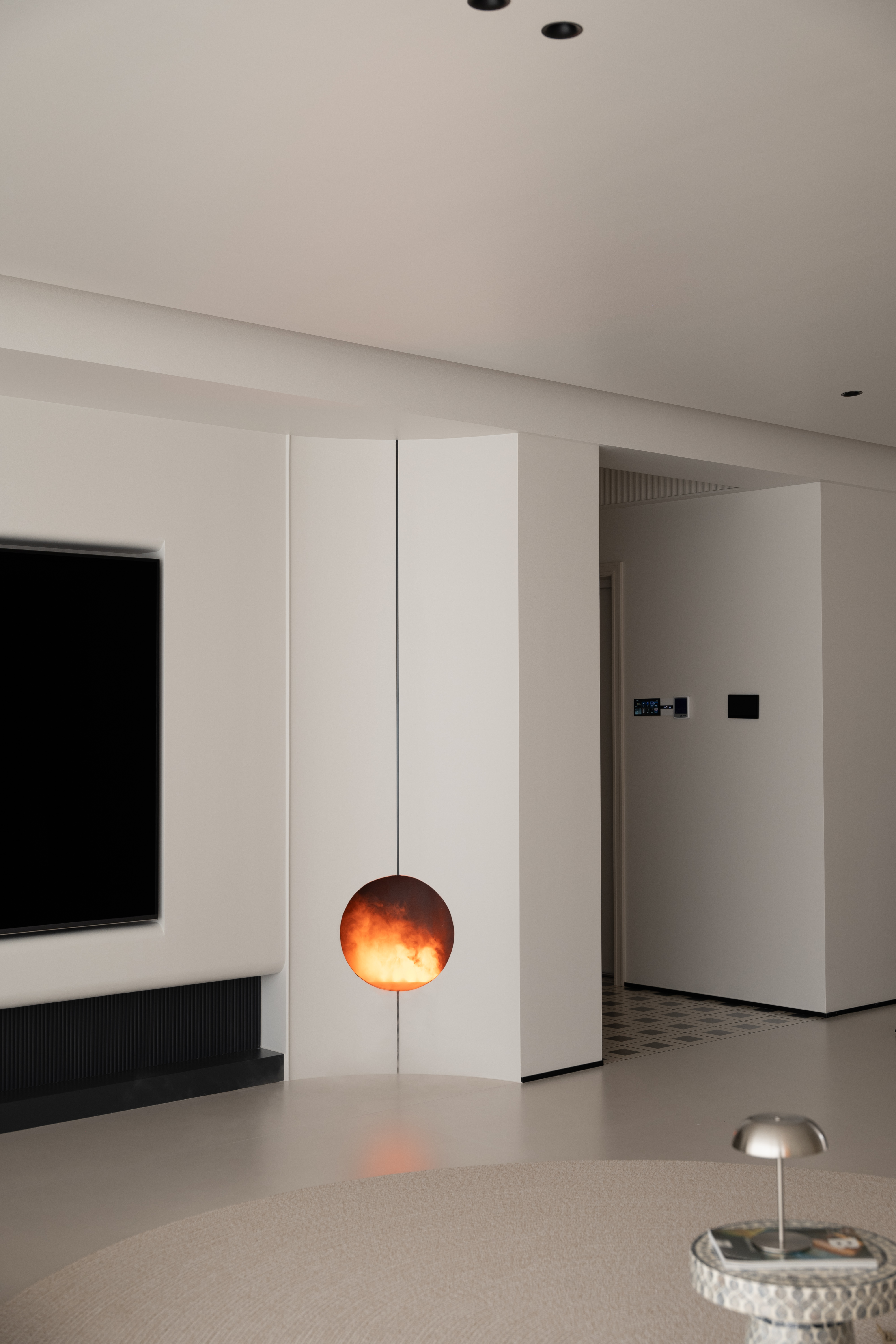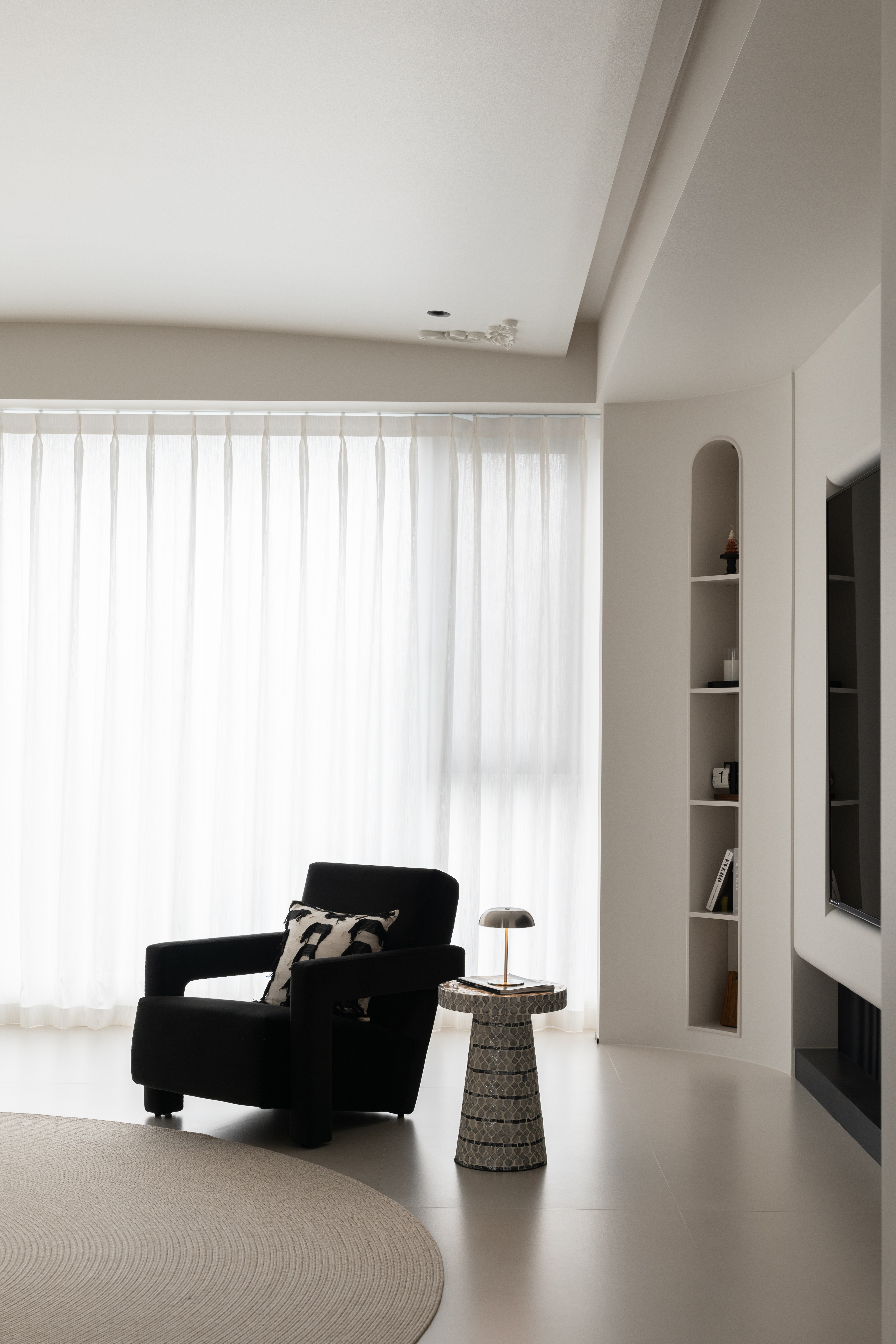 空间布局:通往主卧的过道,是一弧形墙体,与主卧相联动。