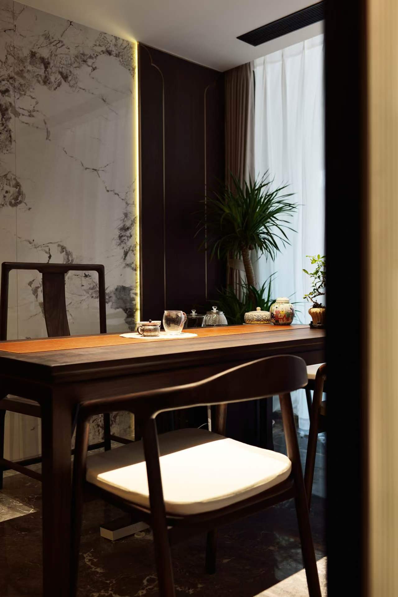 茶室,是东方礼仪文化与社交艺术的舞台。一方茶席,几盏清茶。历经三十余载岁月打磨的明式圈椅,承载着深厚的历史文化底蕴,彰显着主人的品位与格调。陶瓷艺术品、茶具茶器等,共同营造出浓郁的东方艺术氛围。茶香袅袅,艺术氛围环绕,让参与者在品茗论道间感受东方文化中那份深厚的人文关怀与精神滋养。