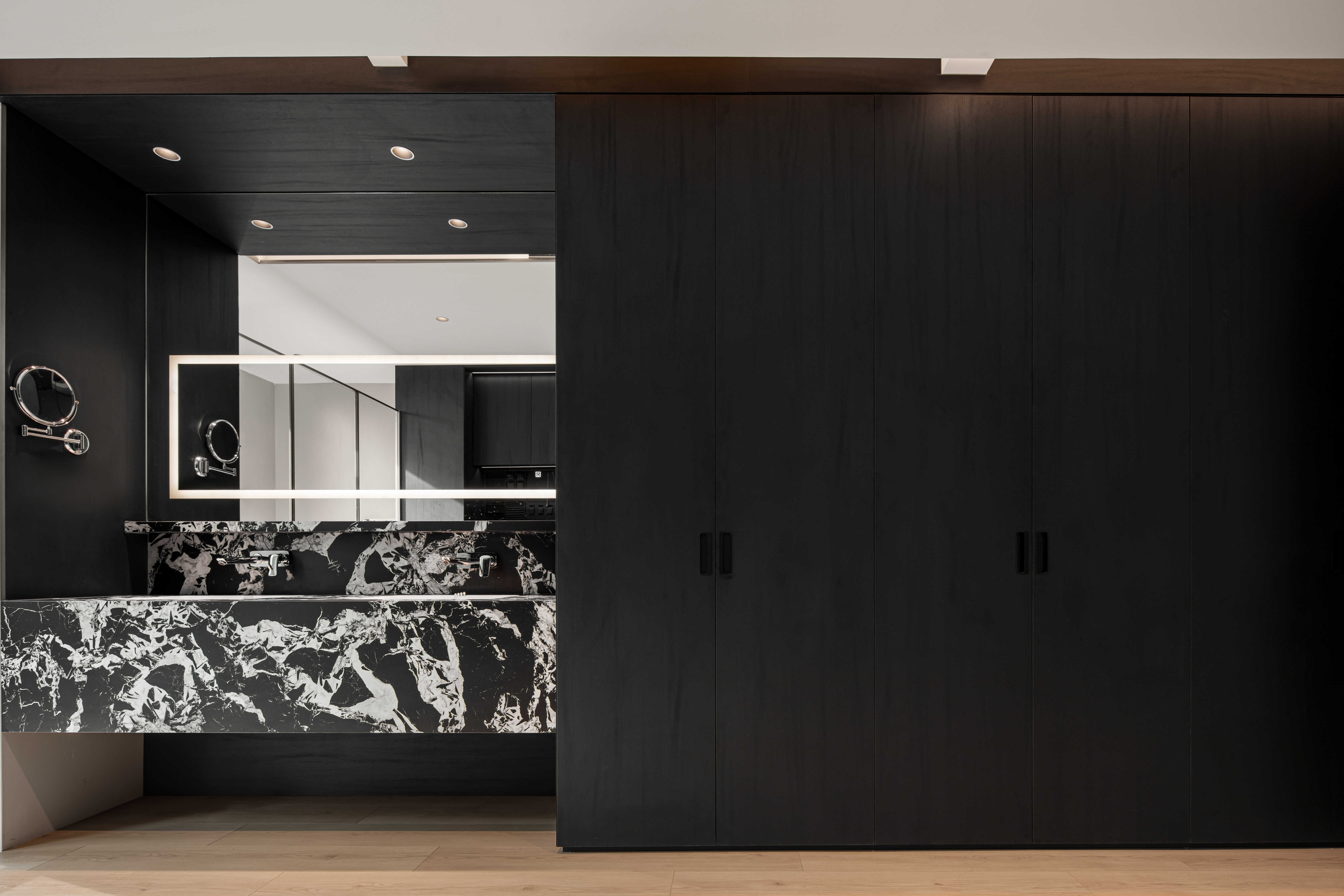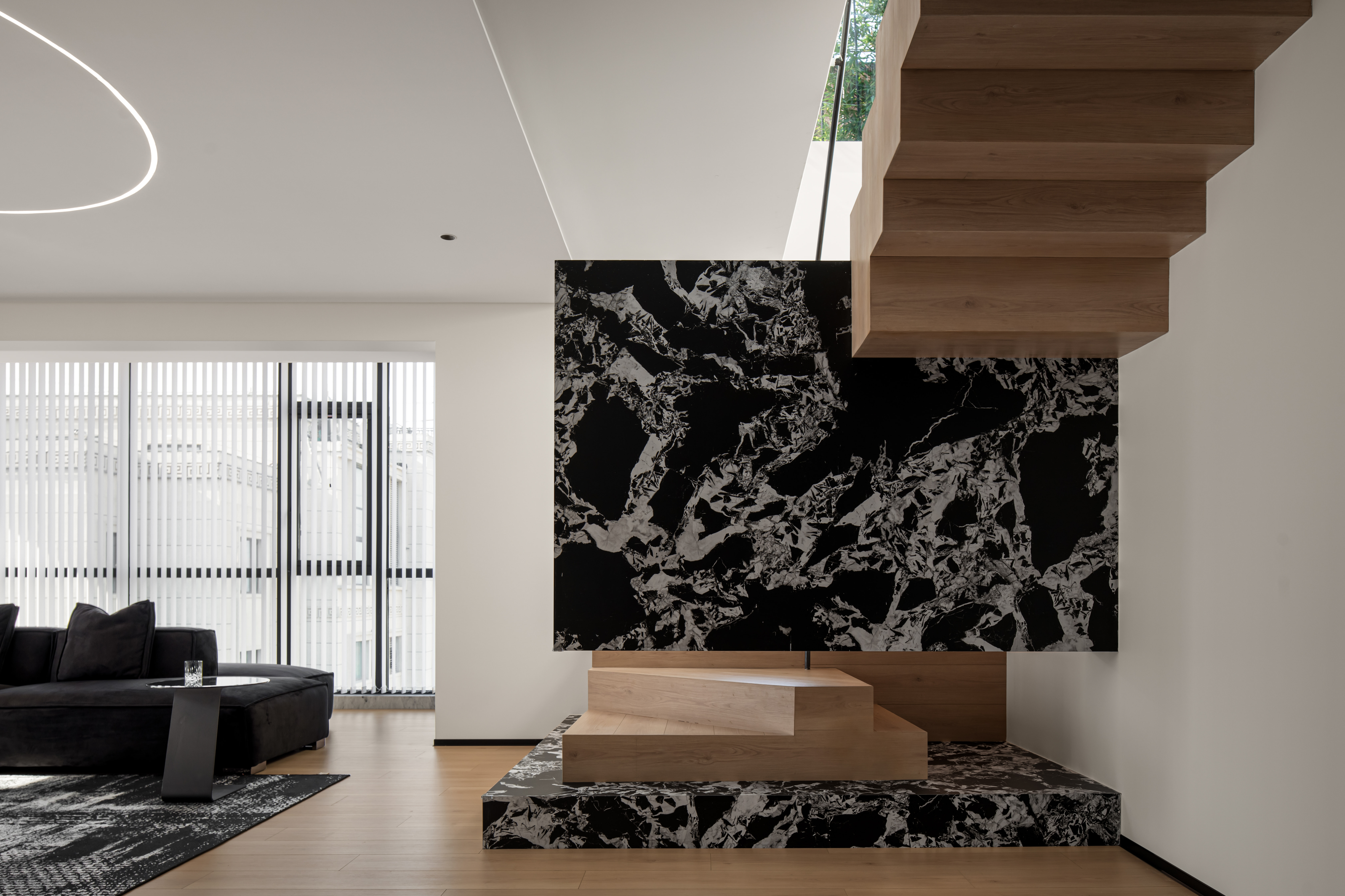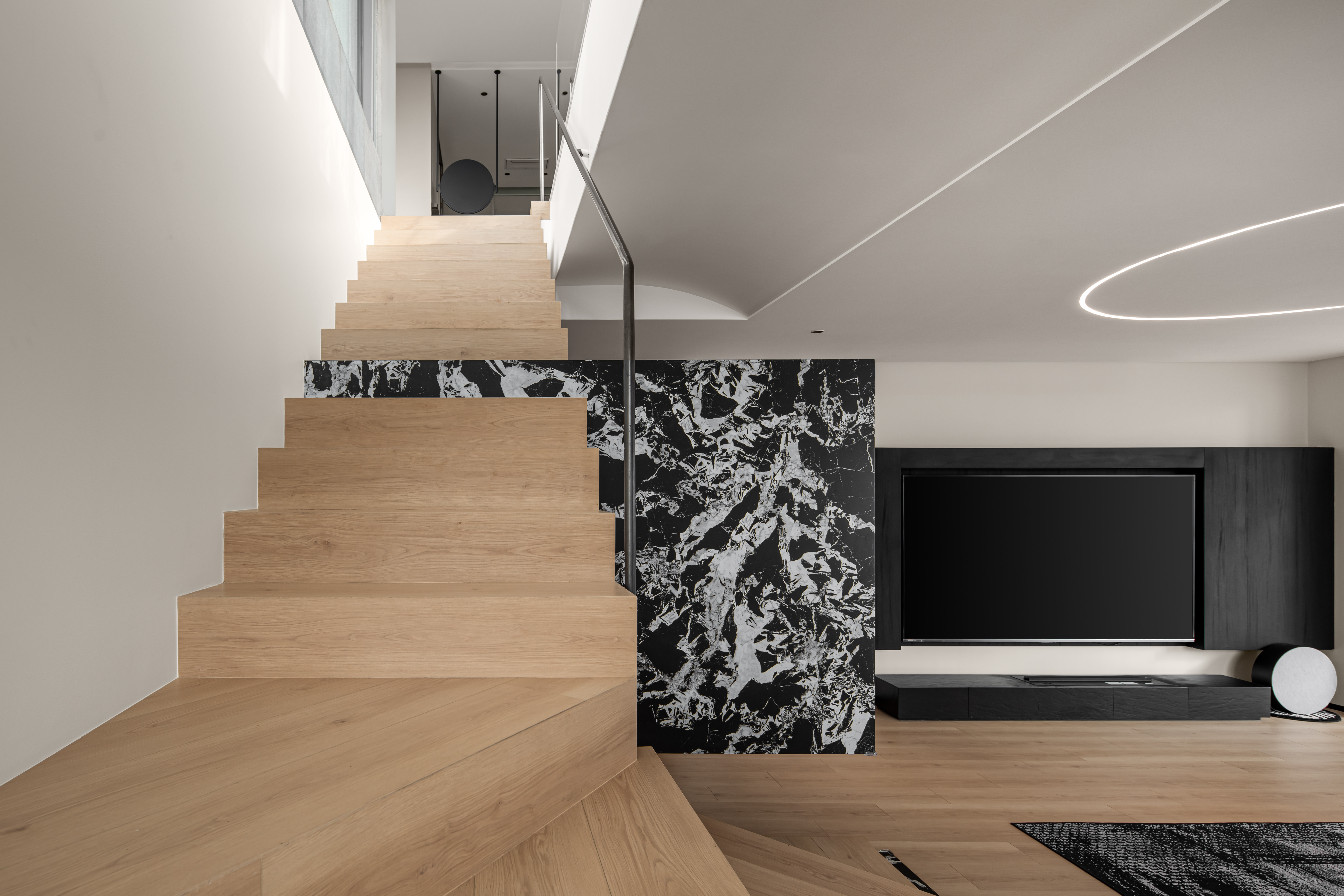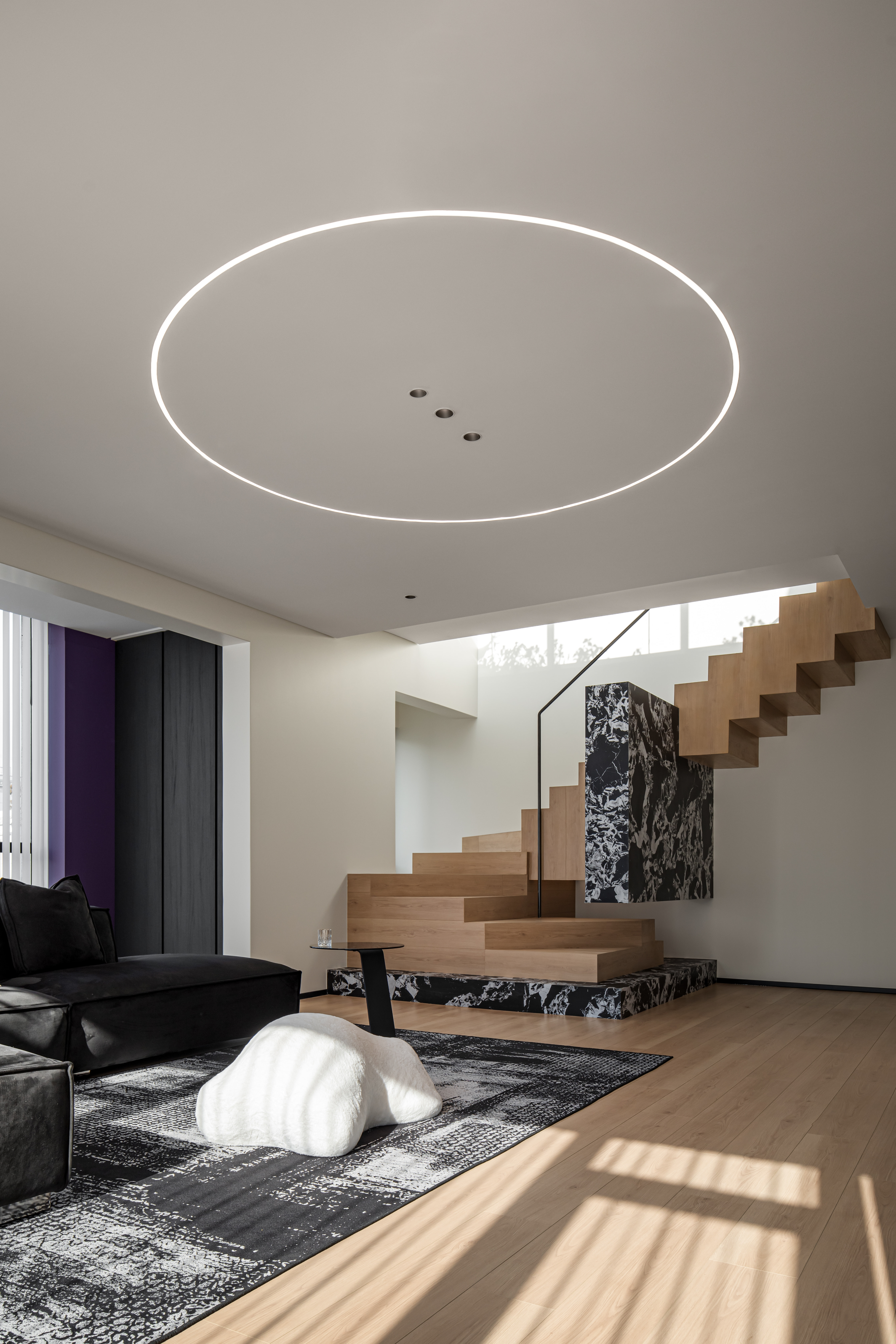 空间意境:步入空间,扑面而来是简约整洁的气息。我们摒弃了传统的堆砌式收纳,以更高级的方式,为空间注入了灵动与活力。为了避免空间沉闷不透气,让收纳系统隐藏于暗处,悄然藏身于角落之中。它们不张扬,却默默地发挥着巨大的作用,让空间保持着通透与轻盈。开放的格局经过精心设计,定制元素清晰的界定了空间区域,同时保持了通畅连贯的流线。室内外近400平方米,采用了大量的木质饰面和丰富的纹理,营造了一种奢华舒适的氛围。