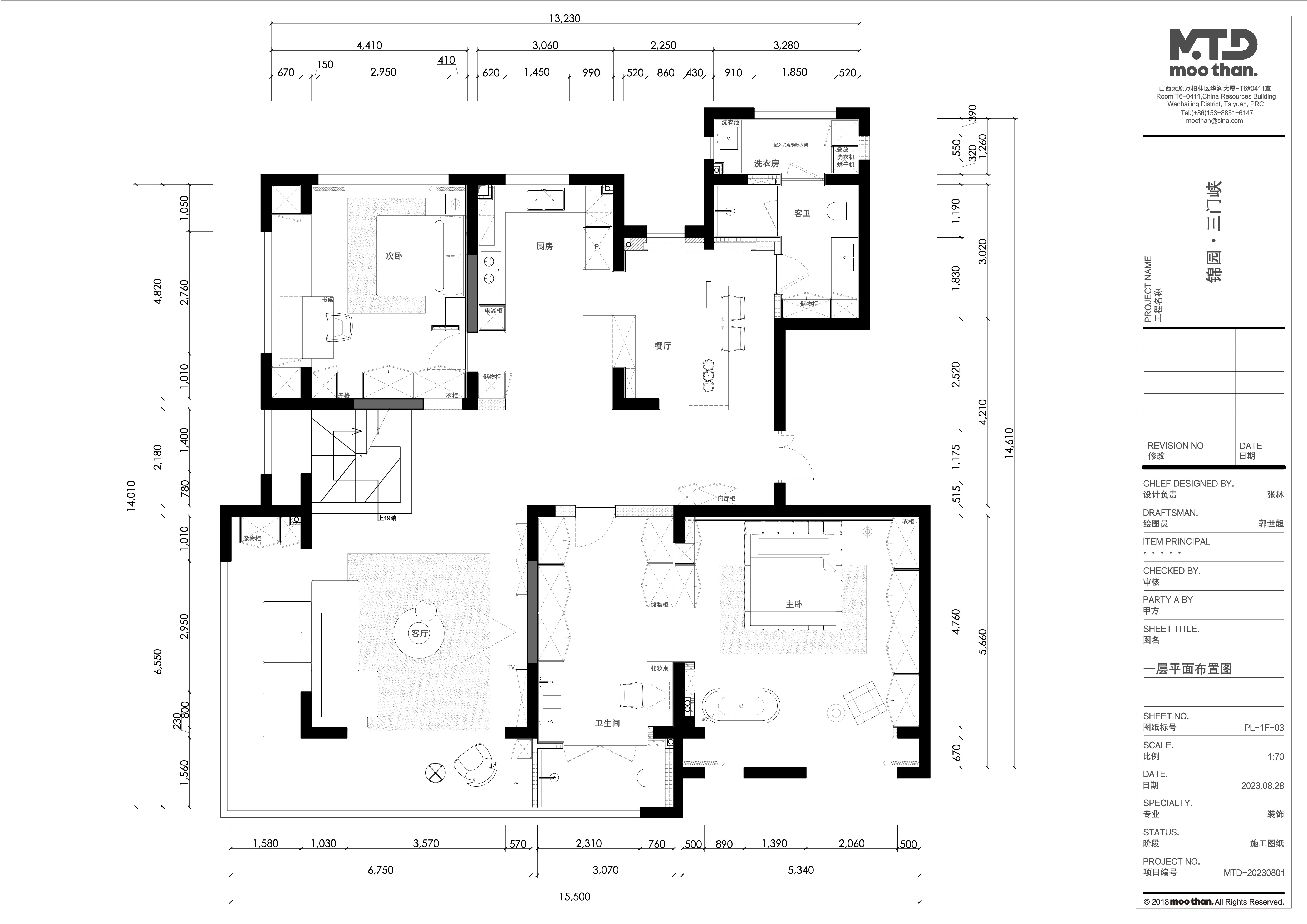 设计选材:屋主是美发师,有独到的生活质感见地,要求质朴自然的归宿感,这一点与我们品牌理念不谋而合,在选材上,用了天然的实木地板、石材以及包含手工气质的艺术漆。在无常变化中唯一不变的是时间,记录下瞬间场景的同时,留住了此刻的时间,温润的木质与秩序感的线条相呼应,东面的阳光洒向橡木板赋予这个空间质感,面向远景,坐躺着便可以眺望远处的江河山景。