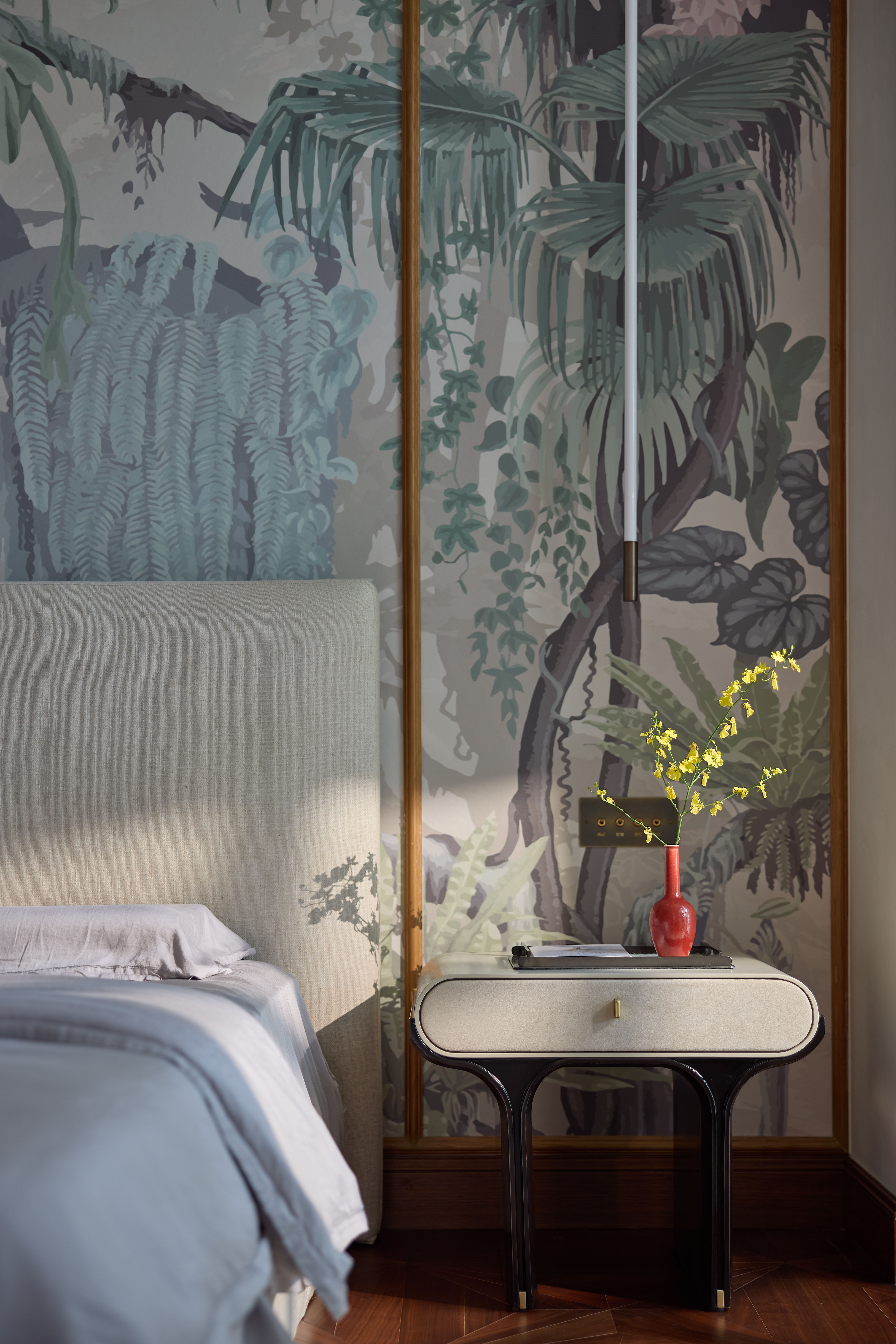 项目定位:本案为深圳圣莫丽斯的一个485m²的下叠别墅,附带前后两个院子,周遭的环境安静清宜。黄先生家族有南洋经商背景,和家庭环境、家风文化有关系,他希望这个家整体是以「南洋风格」的方式来呈现。