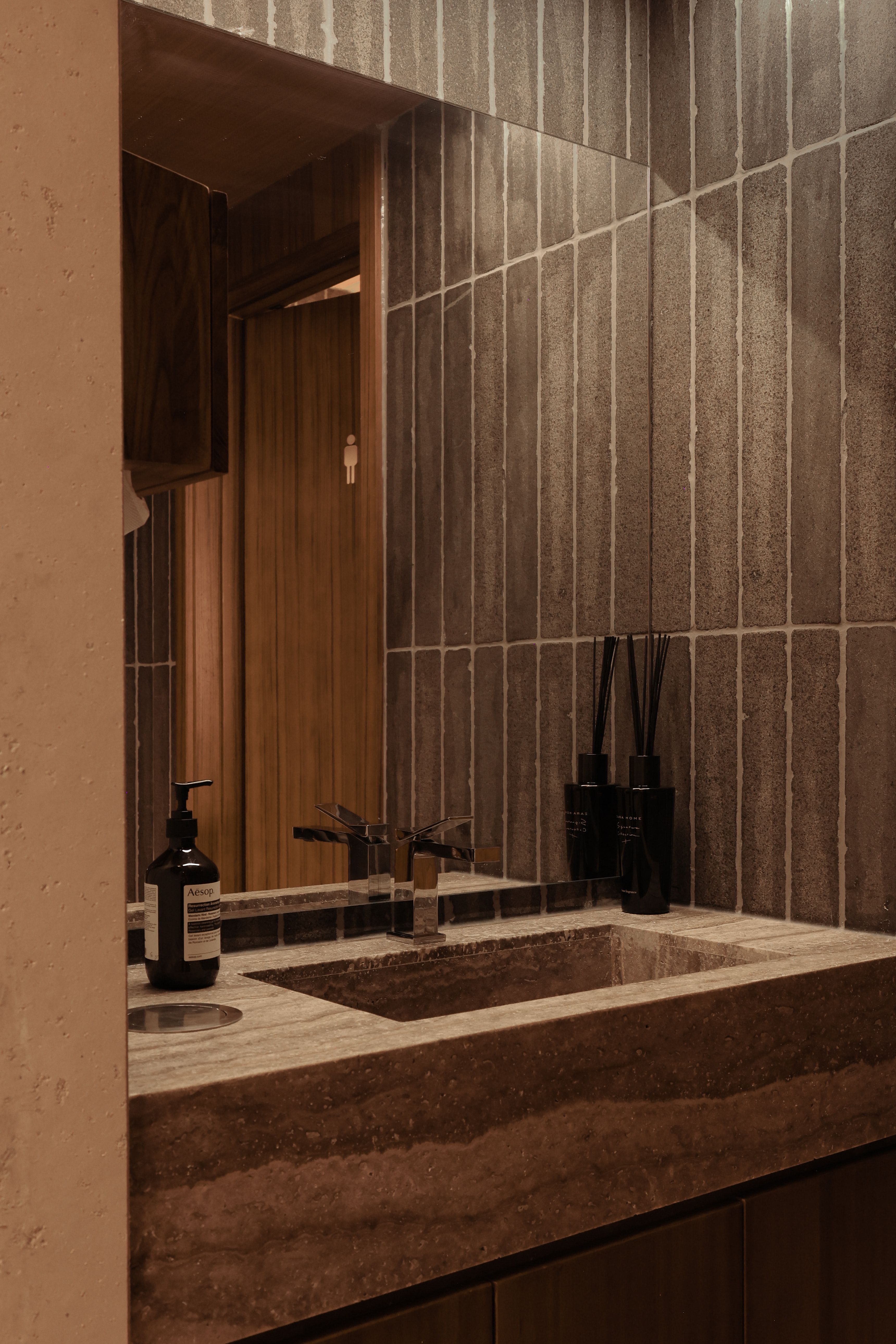 空间意境:本次的项目坐落于太原市华润大厦园区底商——众多高新企业的聚集地。MOOTHAN.以”东方美学”为核心理念展开整体设计,聚焦于提升顾客在空间中的感官体验——视觉、触觉、听觉等多重感知维度。整体以暖色调为基底营造空间氛围,局部点缀木质元素与天然石材形成视觉焦点,打造更为纯粹极简的空间。