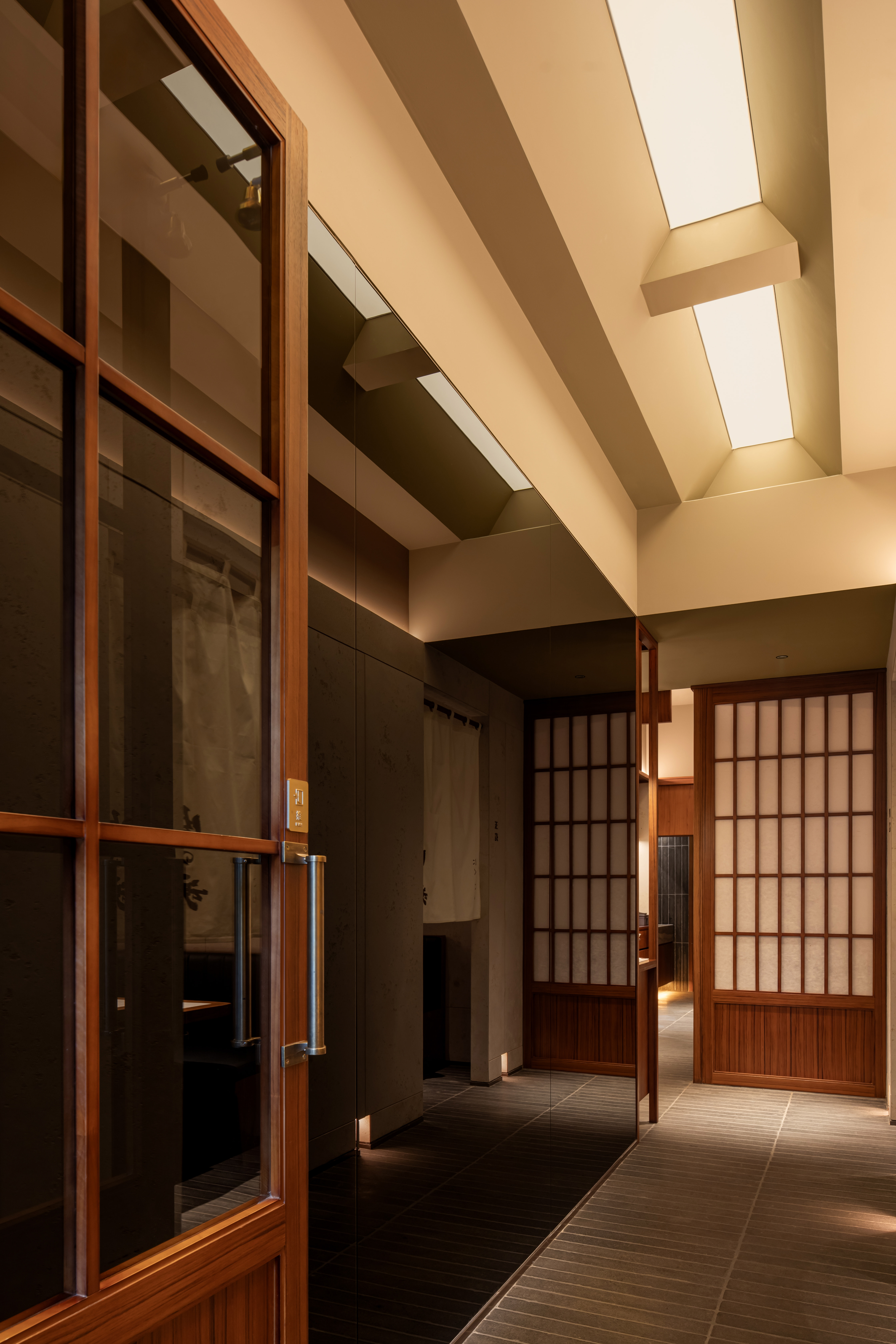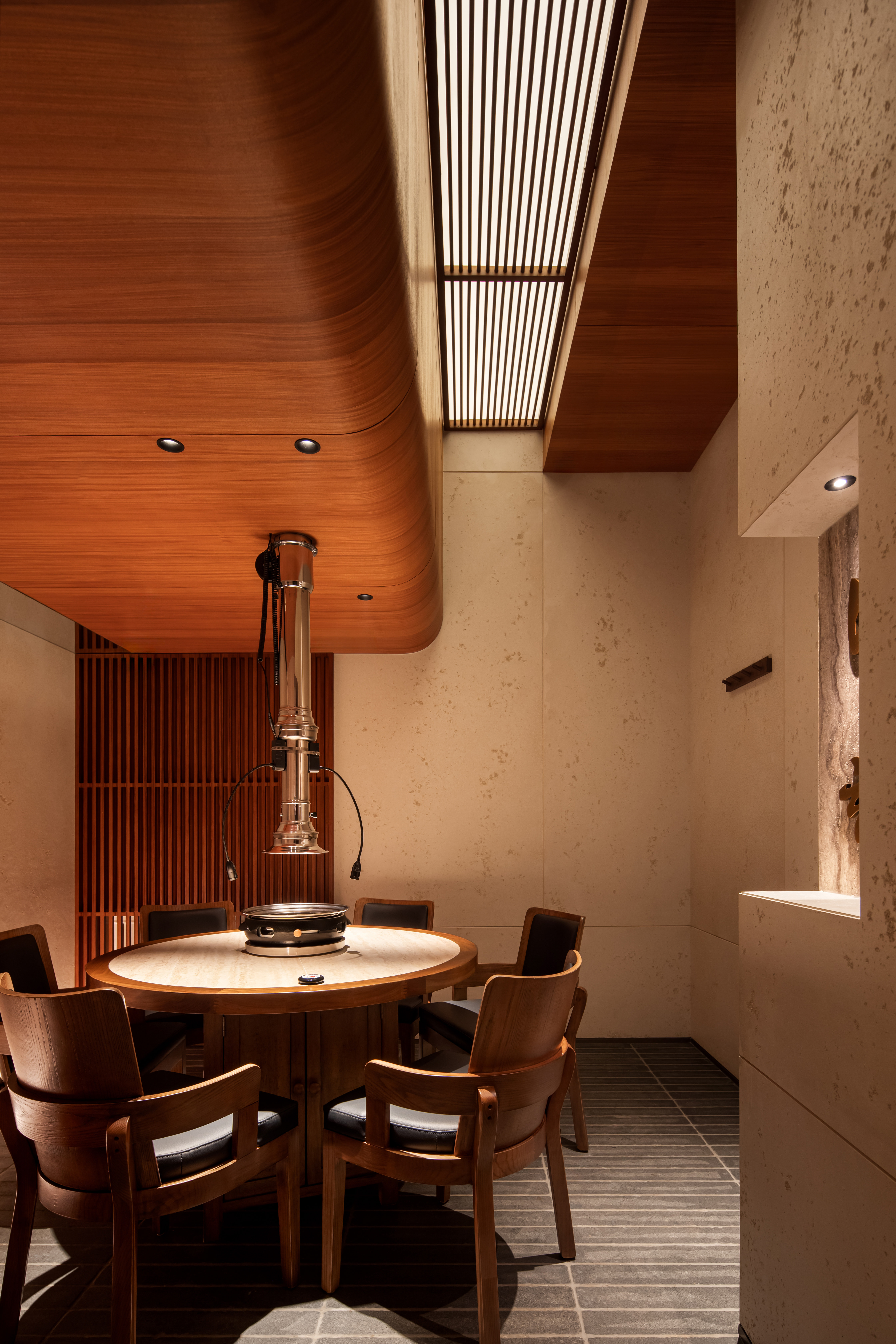 项目定位:肉の魂·YAKINIKU KINUKON是一家主打现代日式炭火烧肉料理的精品餐厅,在主理人的引领下,餐厅严选全球各地的顶级食材,不断追求料理创新。为提升沉浸式餐饮体验,同时解放一旁旧餐厅的接待压力,主理人选择接下位于原餐厅一侧的店铺,于是MOOTHAN.精心设计了这个隔绝都市喧嚣的静谧优雅空间。