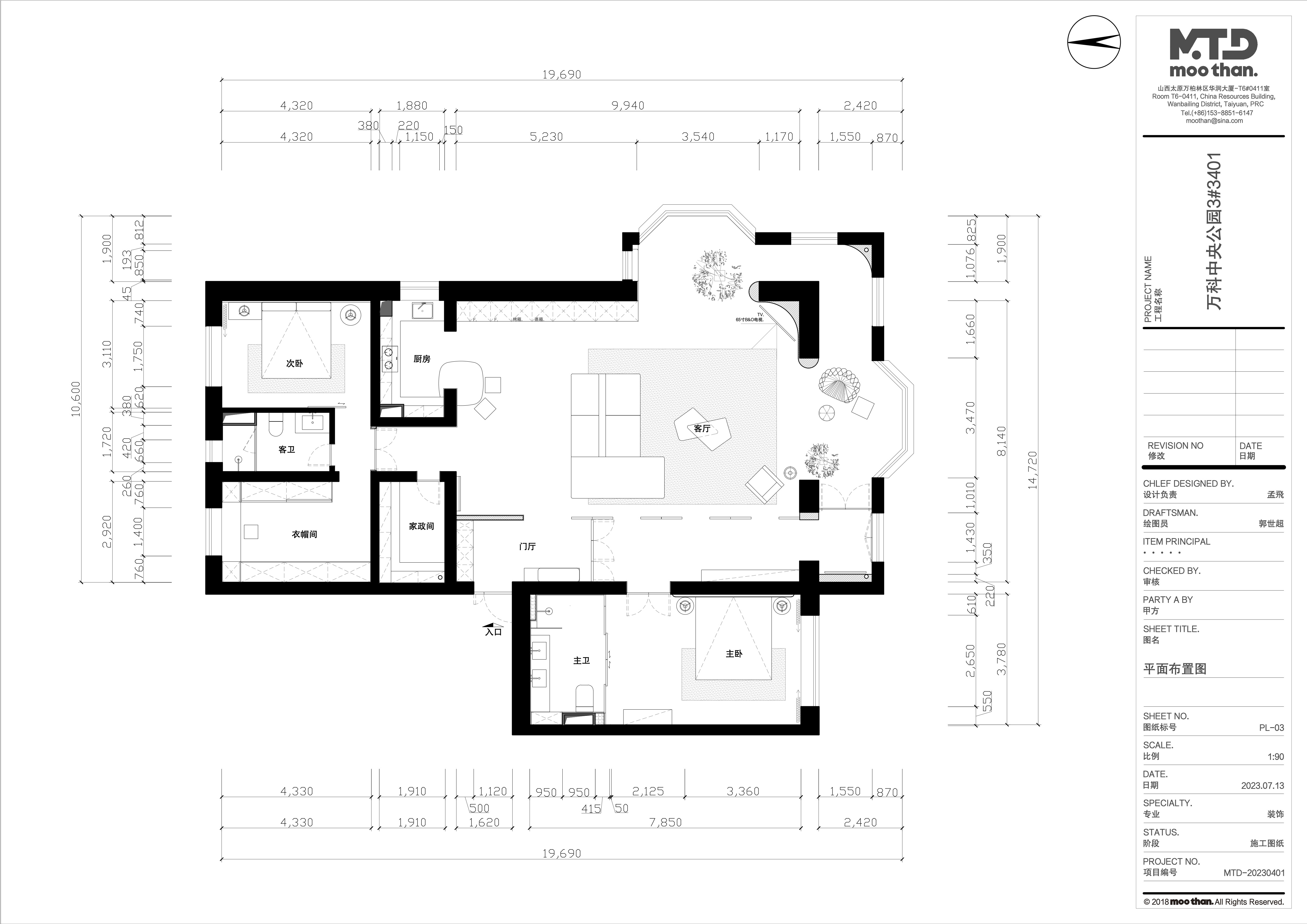 空间布局:本案试图打破传统的平层空间布局,设计通过不设限的理念,回归居住本质与情感诉求,从开放空间到私密区域,最大程度释放空间体量,从功能到细节的考究,营造出多功能层次的居住体验,满足居者对艺术和自然的追求,给空间带来松弛治愈的力量。本案业主对生活品质有较高追求,同时希望每位家庭成员都有各自舒适的空间。我们着重关照居住者的情感与居住舒适度,以人为本,尊重两代人生活习惯的差异,透过整合功能诉求,对室内空间的格局重新规划,以亲和、自由、流动构筑空间尺度,为业主打造一处多样化的生活场景,丰富生活体验。