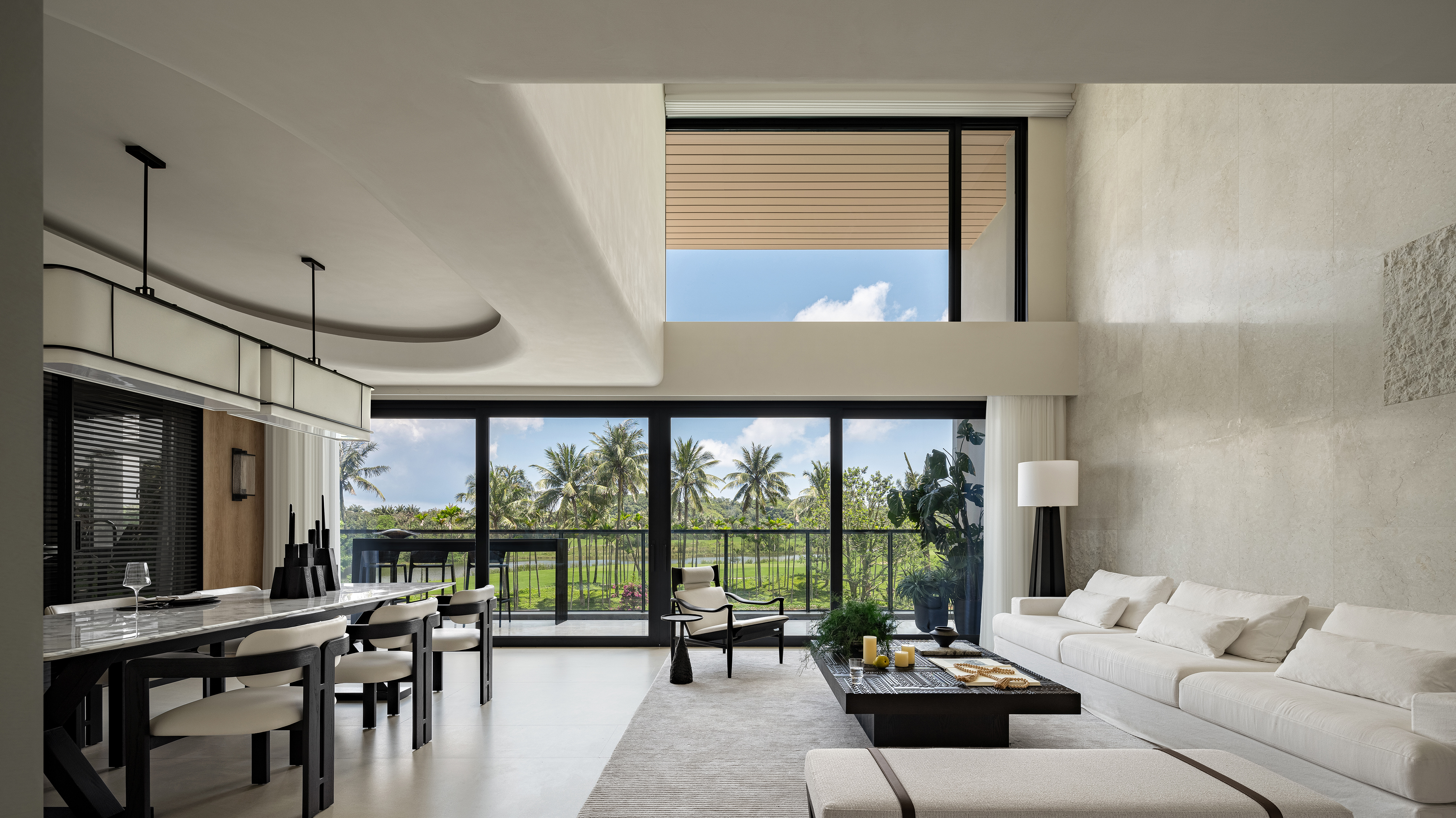 项目定位:万宁神州半岛,内外双海环抱,萃集自然之美,宛如一座生态宜居的绿岛。海岚院,择址天赋岛芯,坐拥整岛纯粹自然资源,于山海之间,尽享静谧诗意湾区胜境。设计以“慢生活度假”为灵感,将滨海的灵动与自然融入室内外空间,山海是窗外的风景,静谧是生活的底色,为居者带来惬意从容的度假体验。