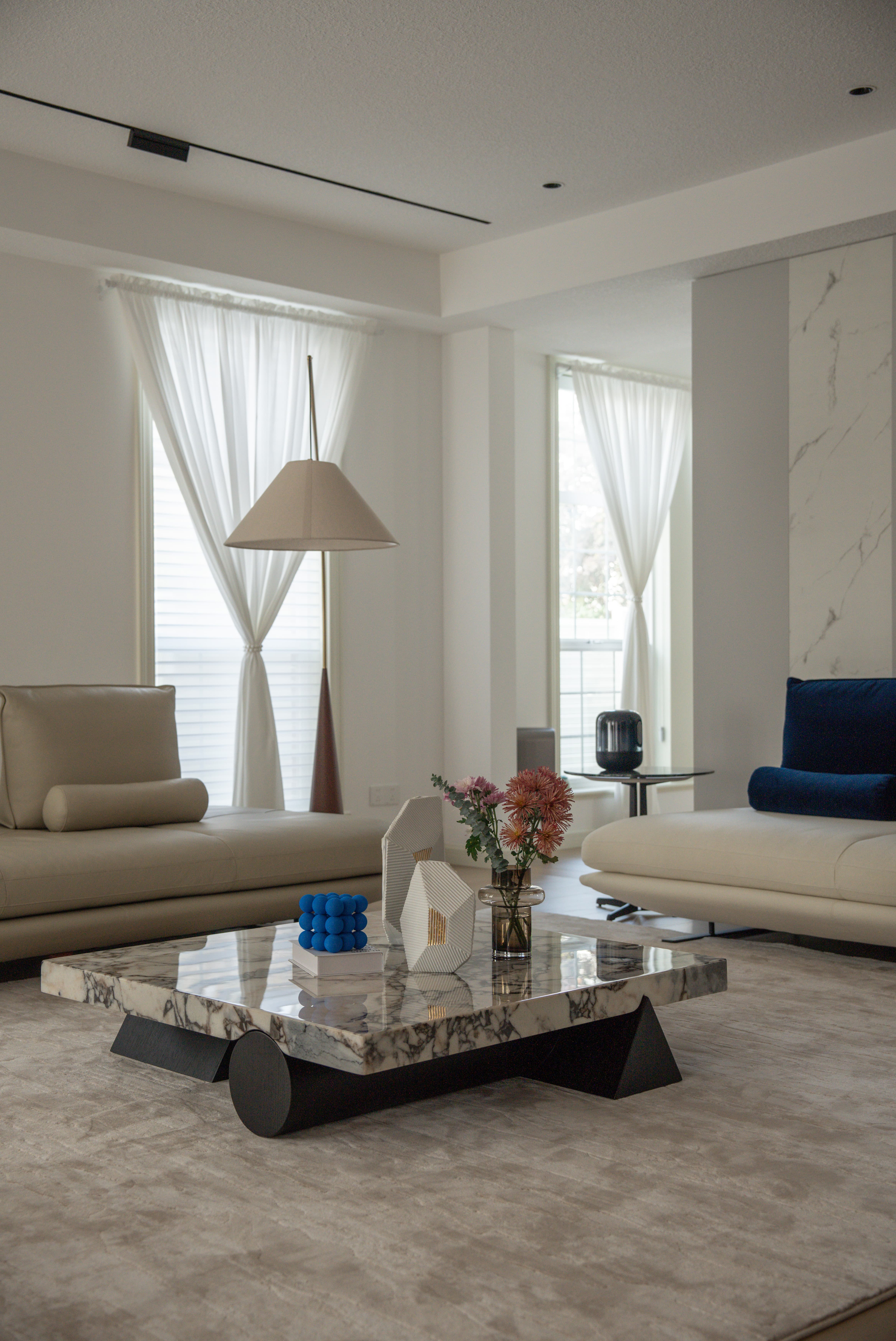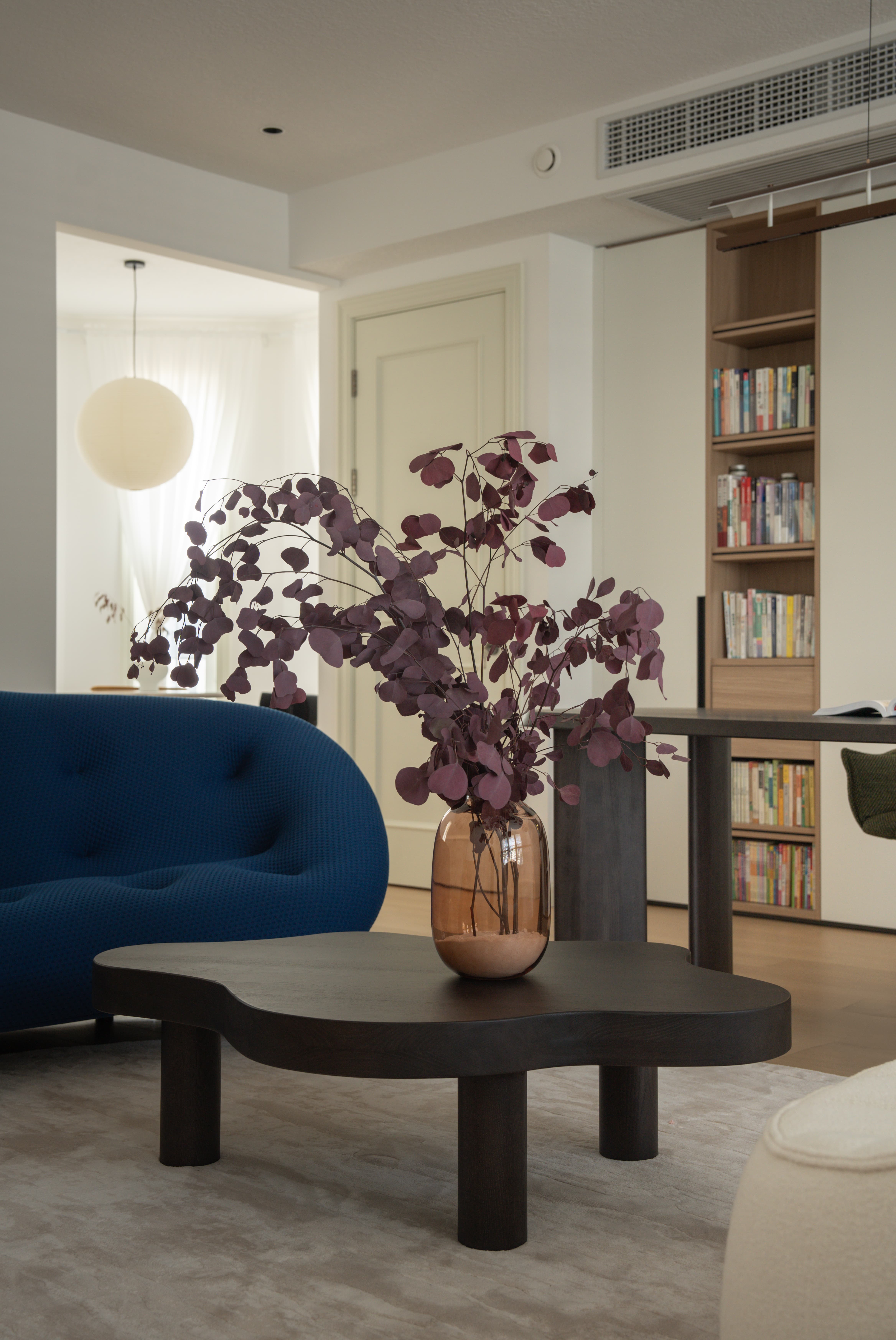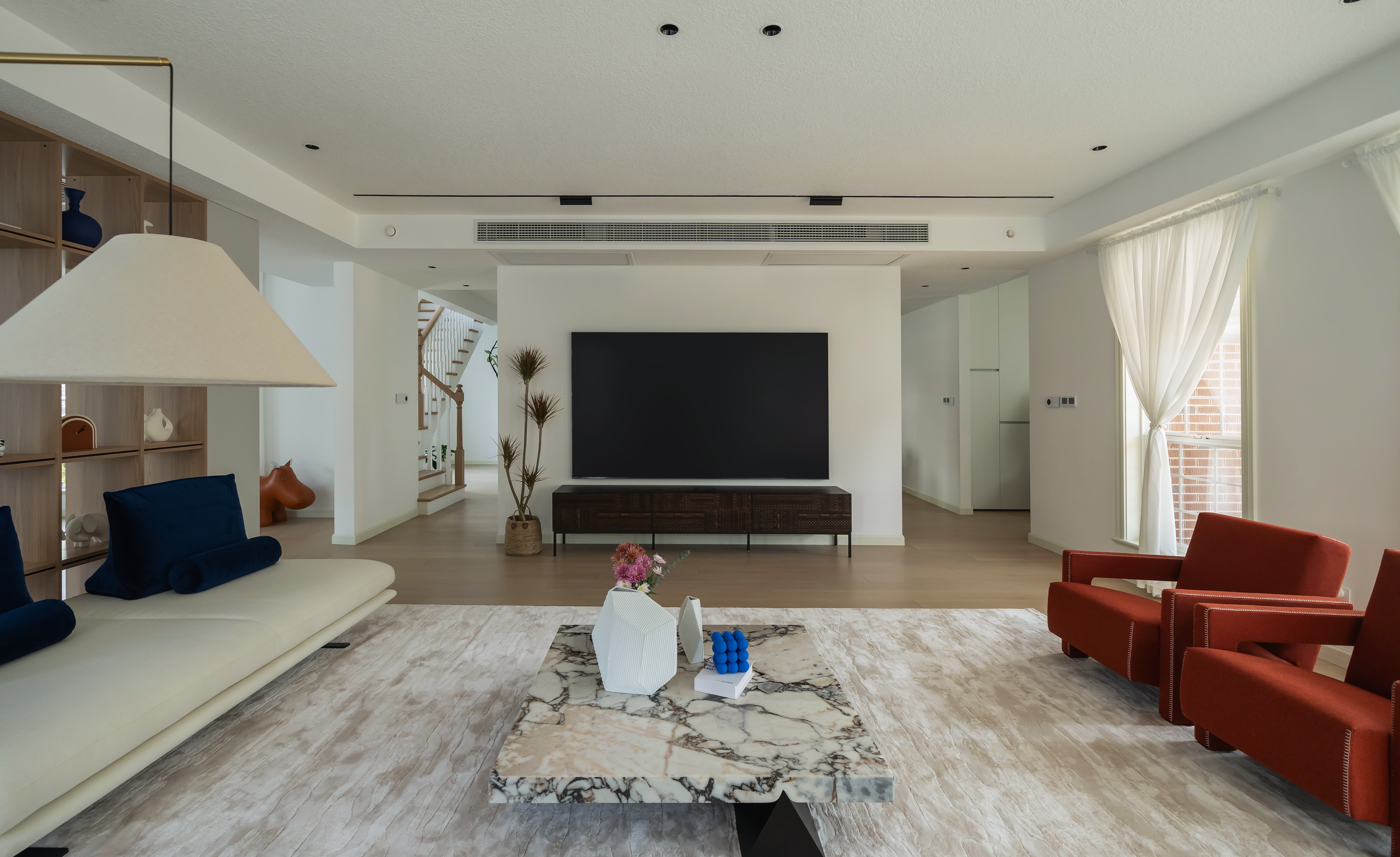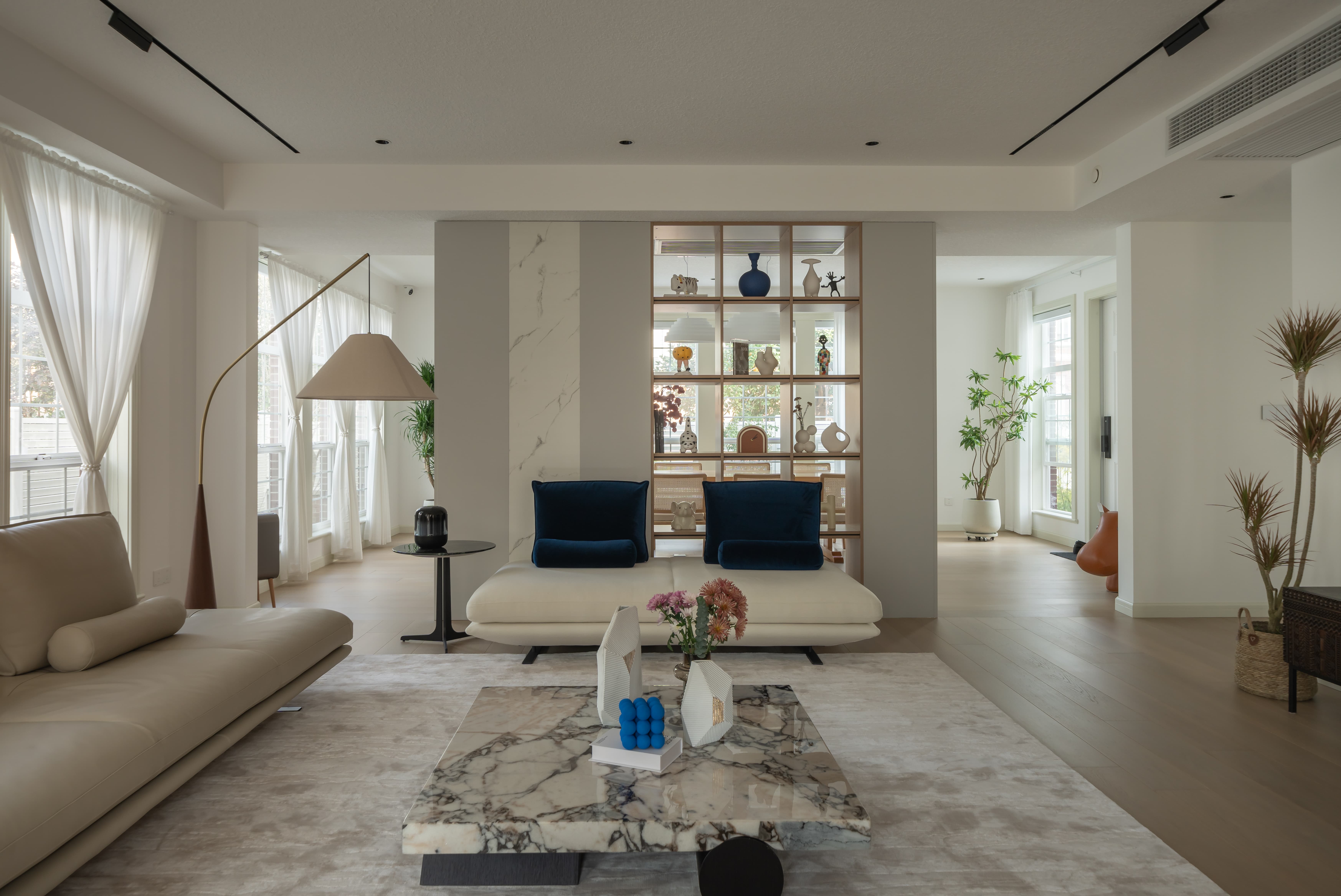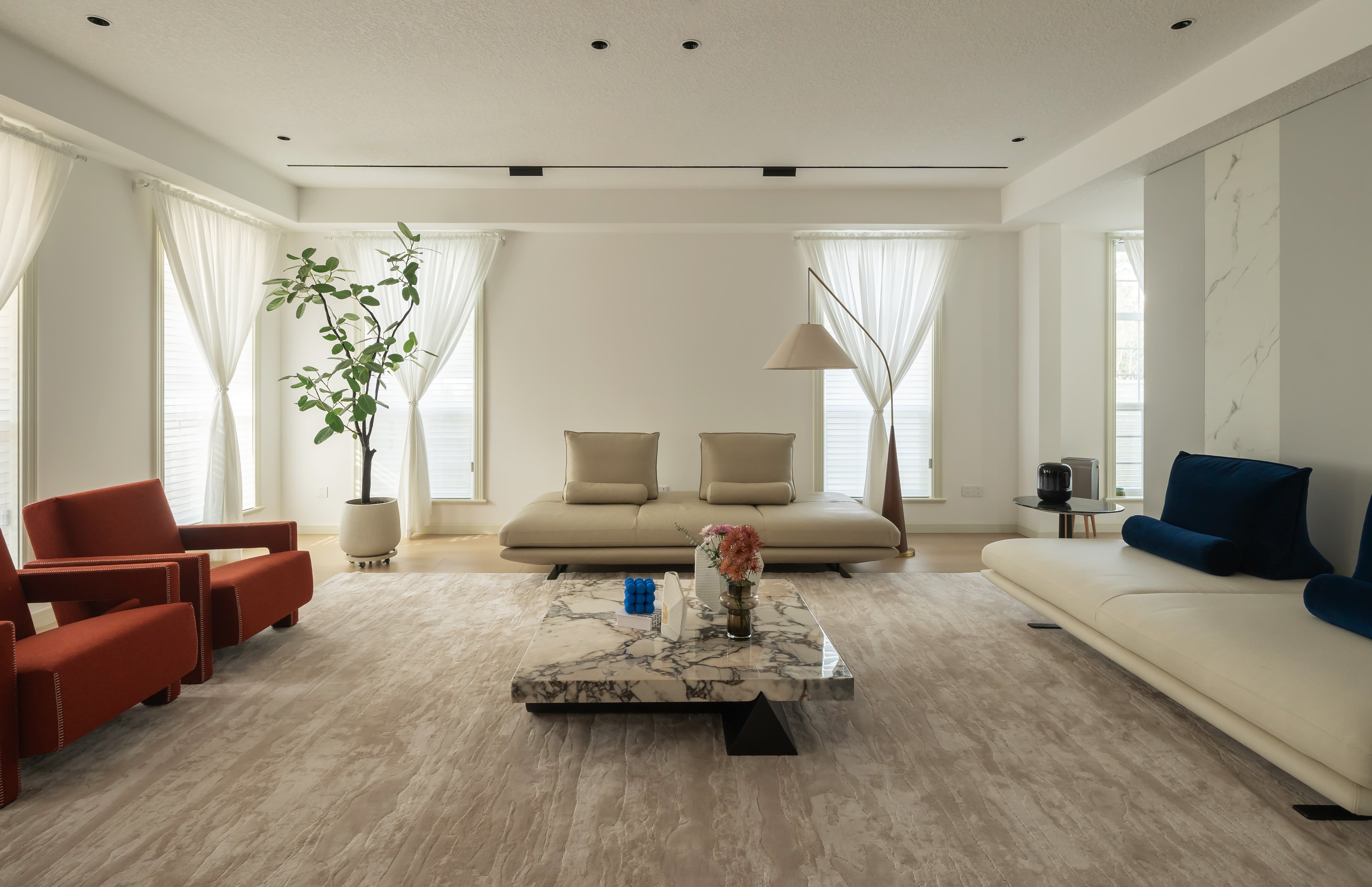 纵观整个客厅设计,艺术和生活总是并行而至,自然的气息从室外一直蔓延至室内,成为了生活的重要组成。每个区域内,都会有一个窗口,设计师以此来衔接自然风光和室内生活,为家注入更多的力量。
