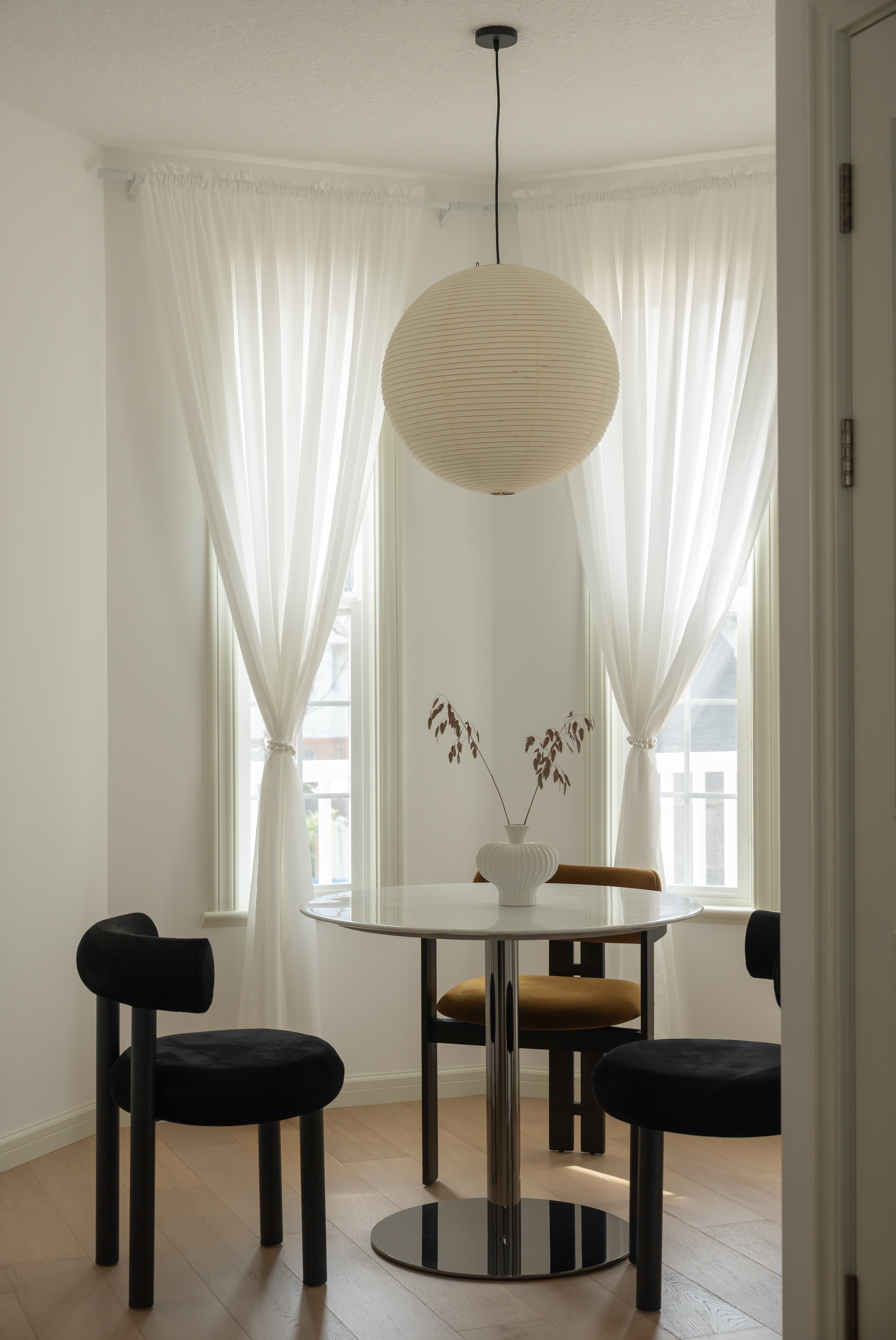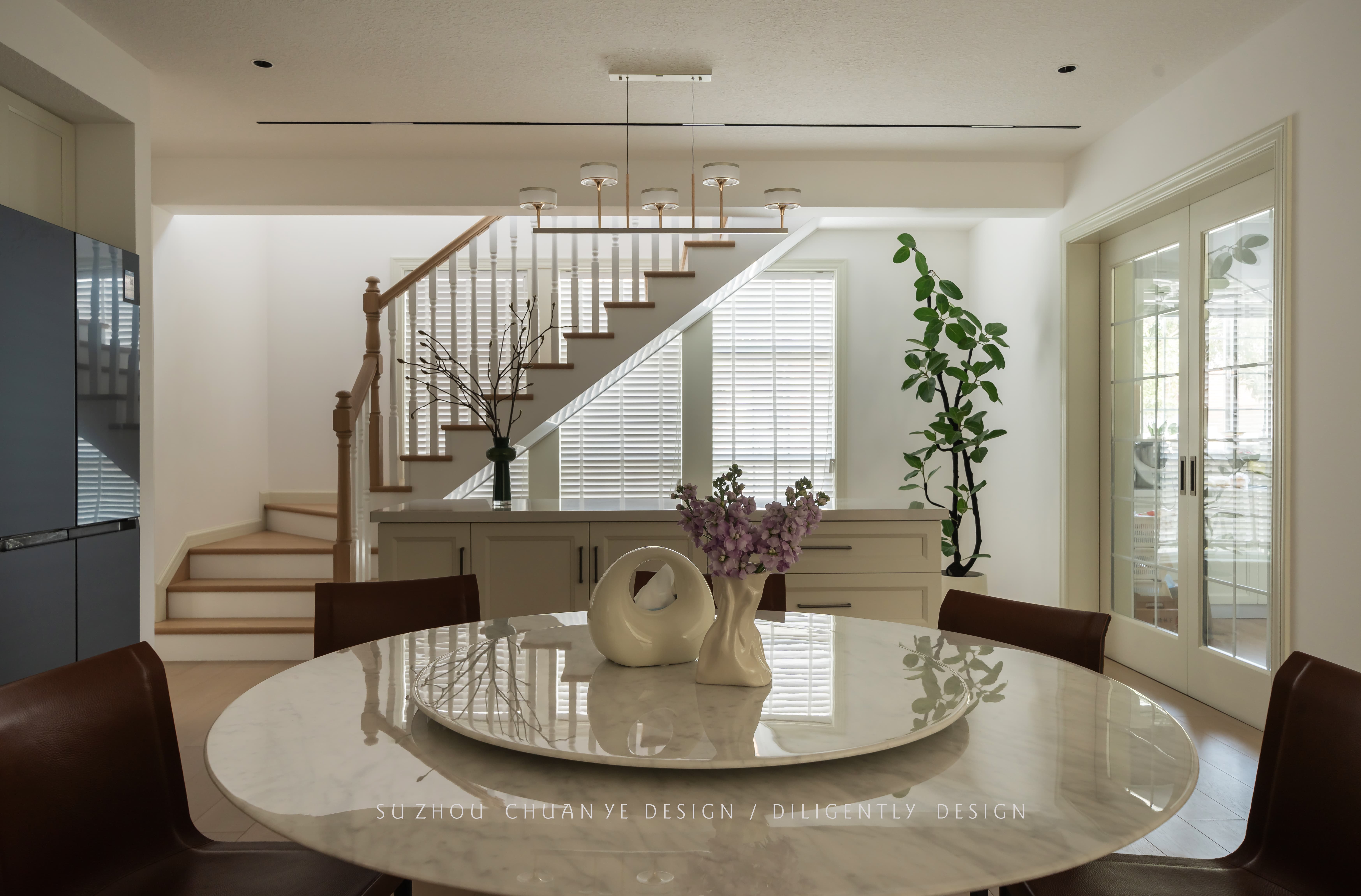 餐厅区域内分别有圆桌、吧台区和西厨区,三者位于不同的空间中,让生活也充满了仪式感。细节的艺术点缀赋予了此处满满的精致,功能性和美观性随之呈现。