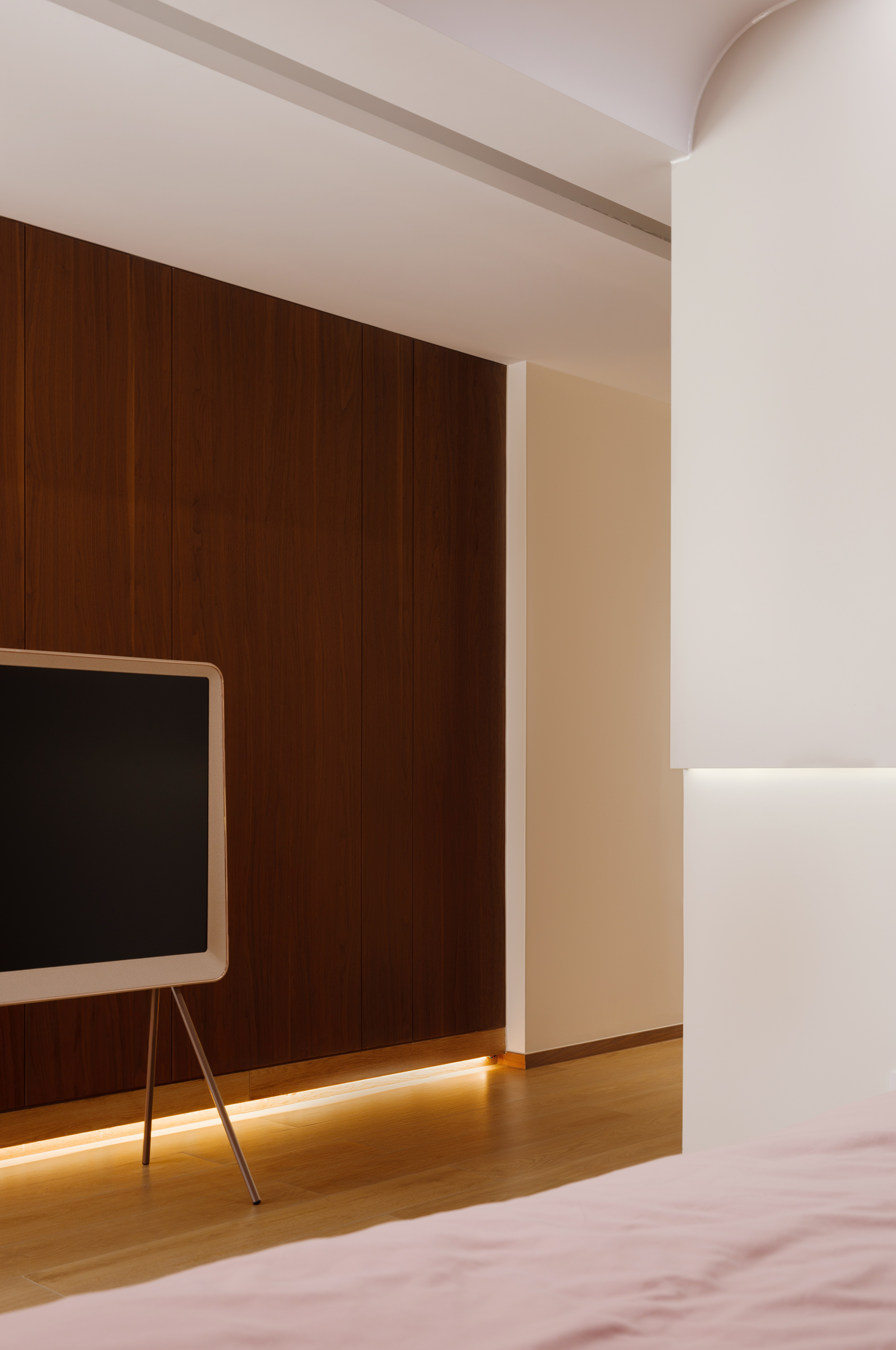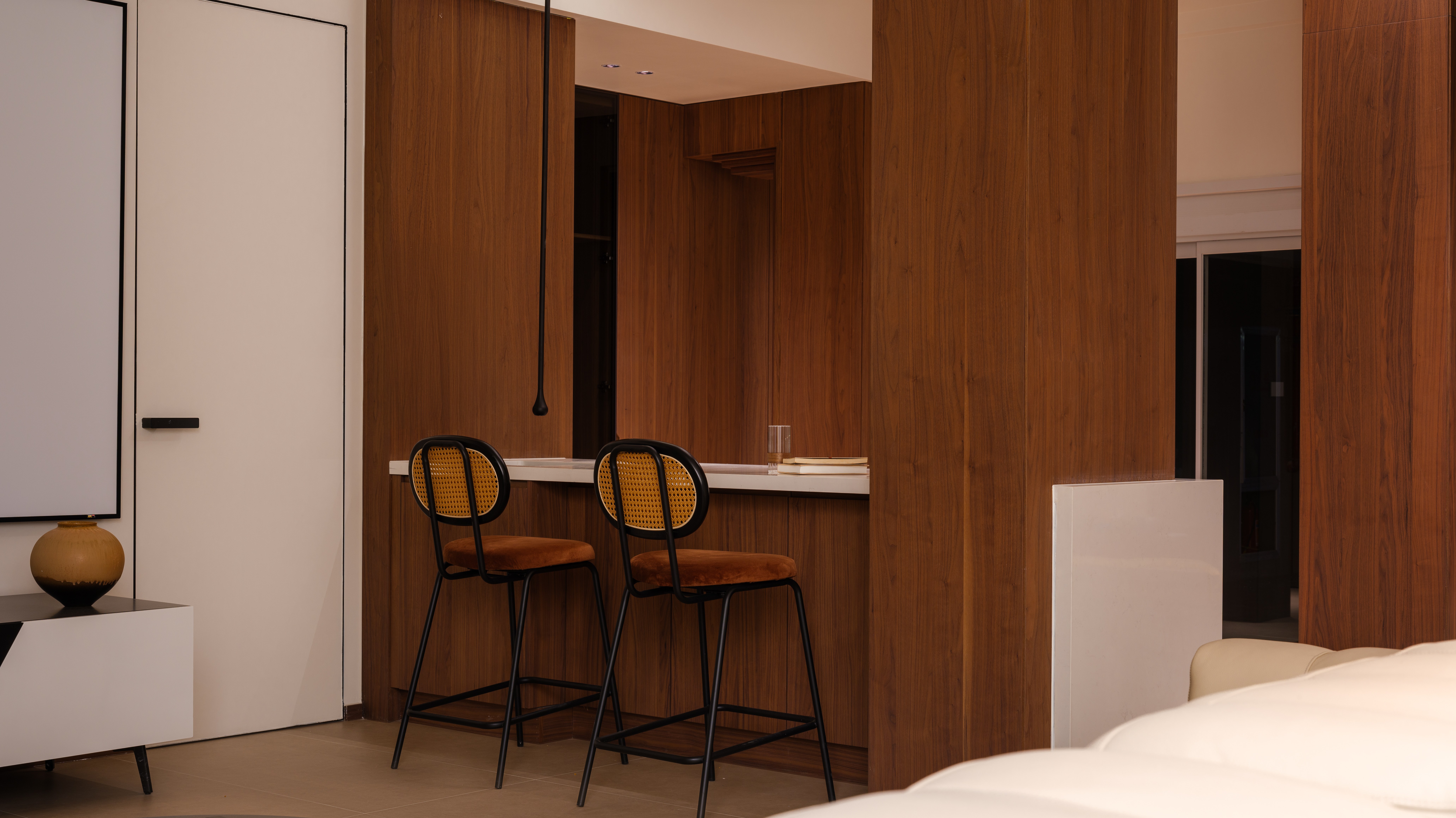 衣帽间与书房无界交融,功能服务于静谧的私享时光。 晨曦微光与黄昏暖意在此自然更迭,见证二人携手走过四季的亲密篇章。