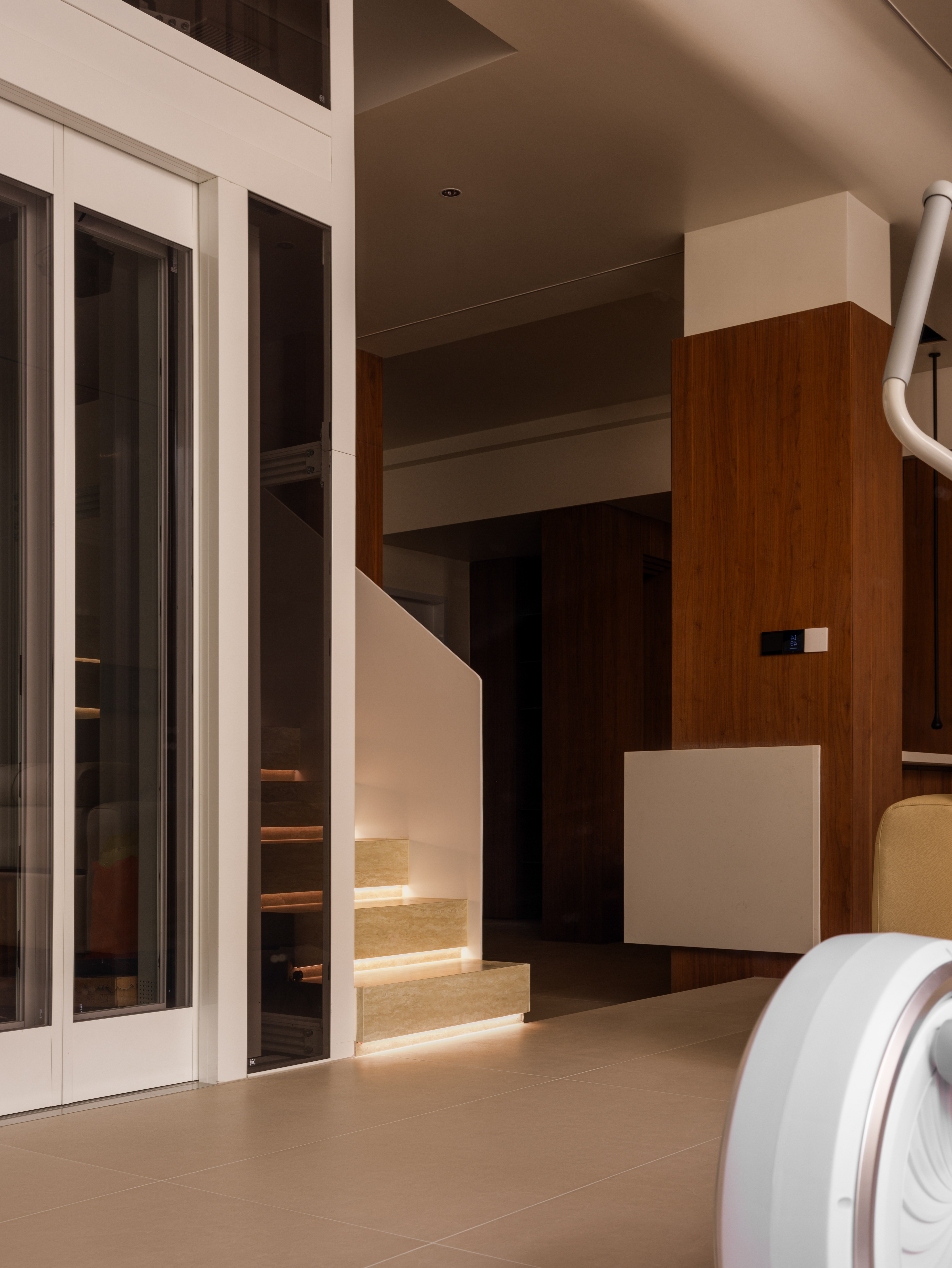 电梯不仅是通道,更是连接地上地下的生活纽带,提升便利与尊贵感。 建筑体块巧妙穿插,形成富有节奏与探索趣味的空间序列。 色彩与材质优雅延续,维系整体的和谐气质。 精心设计的光影路径,让地下空间同样能感知从黎明到黄昏的光影变幻,呼应着不变的、对光与美好的追寻。
