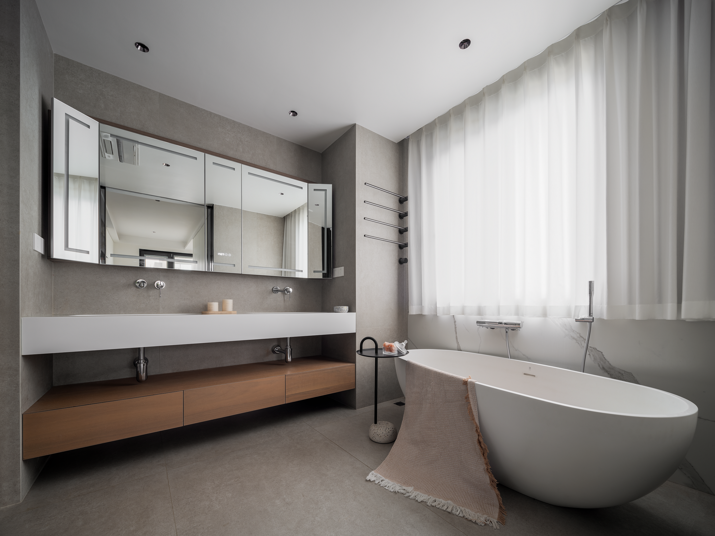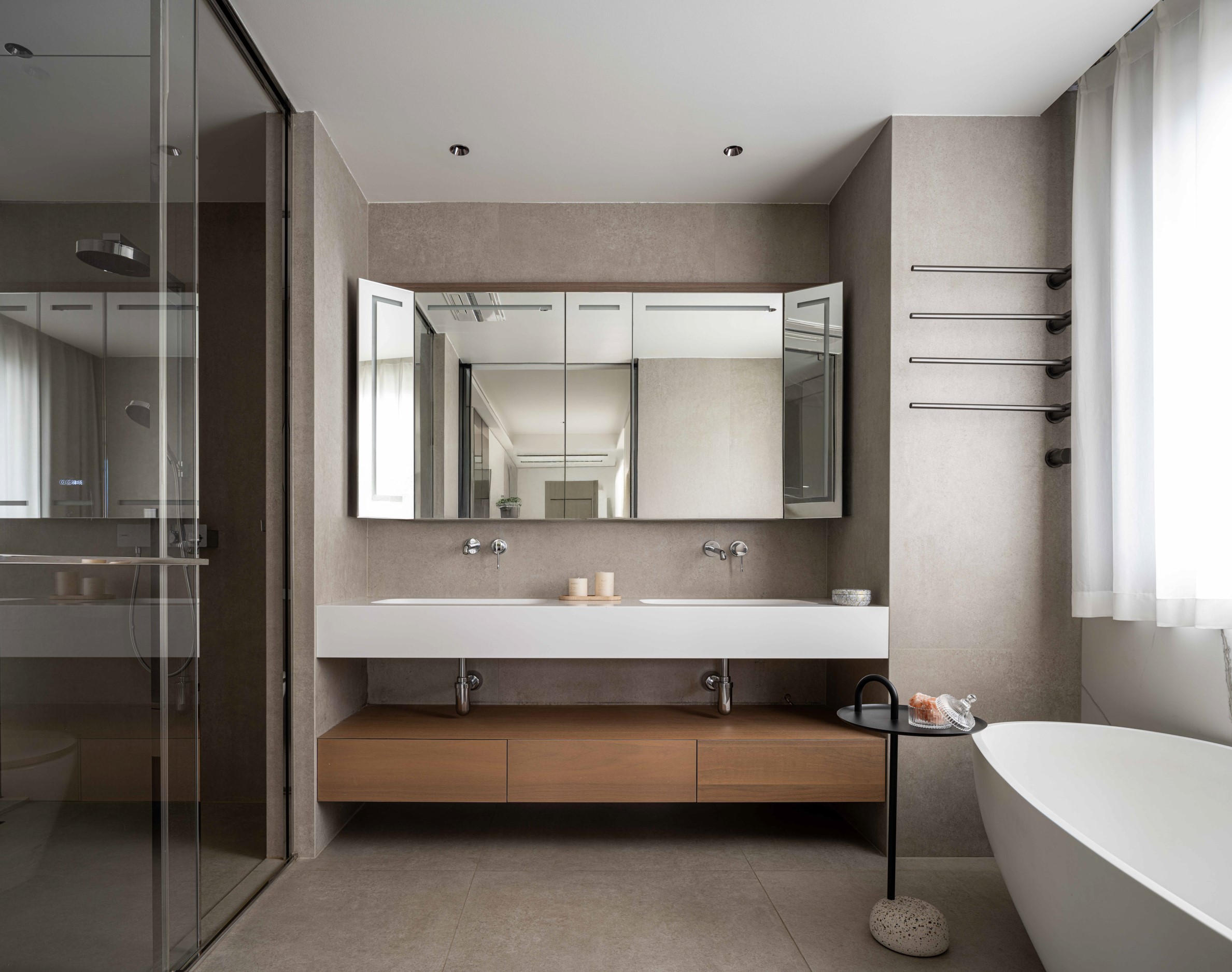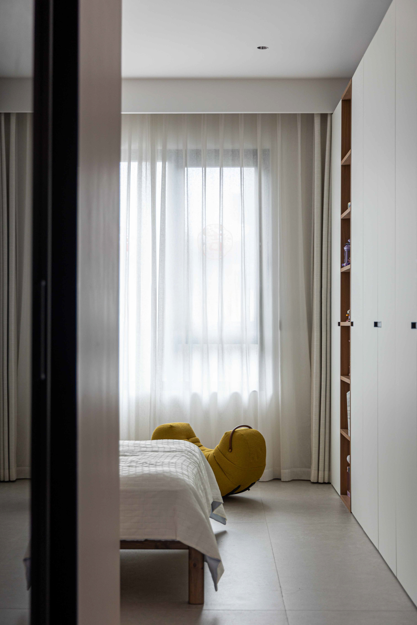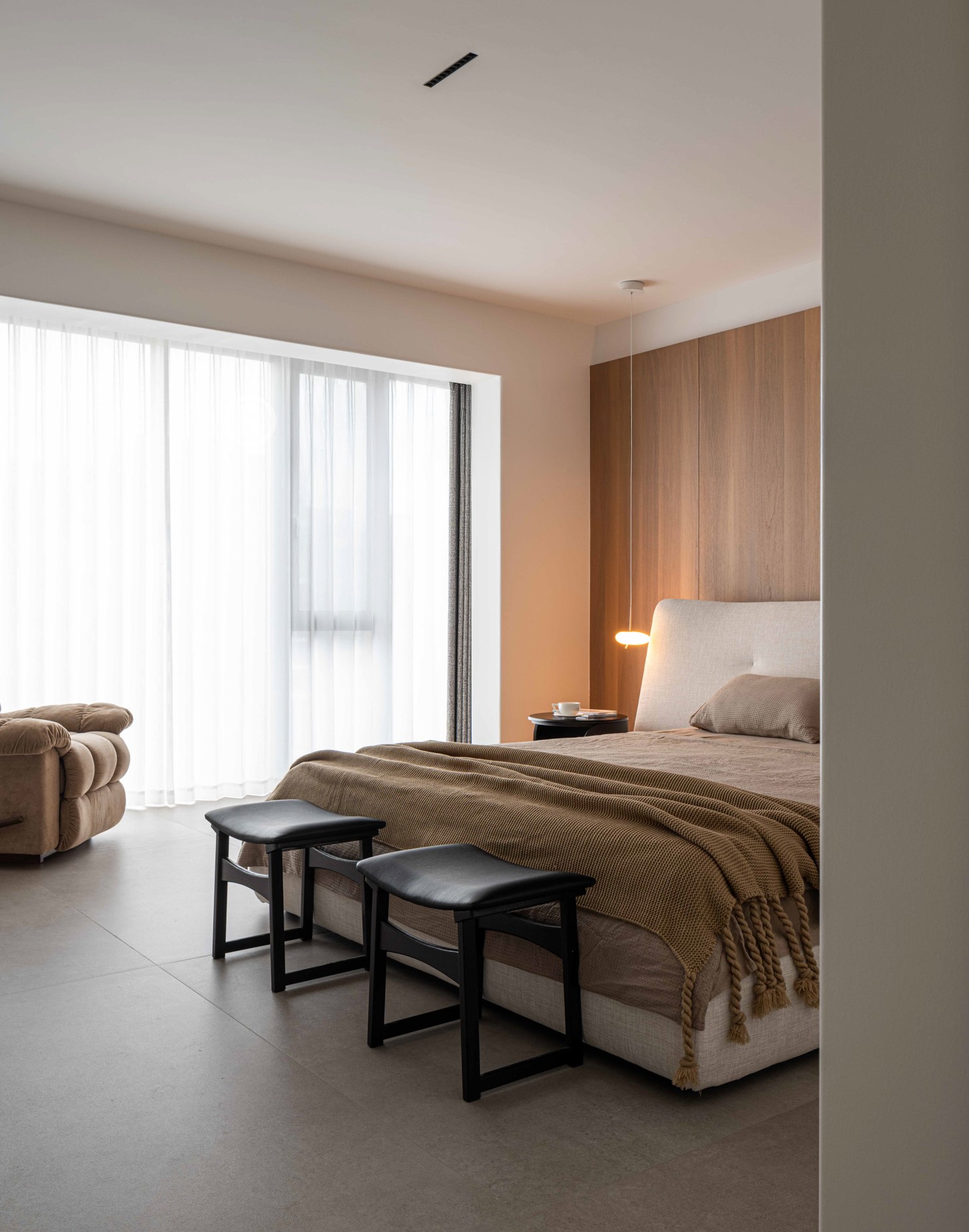因此,设计师首要考量的是:将孩童成长与家庭互动预设空间内部,呈现一处亲子共度的生活场域。去除隔阂、将玄关、过道、客厅、餐厨串联;消弥边界,让场景与场景之间相互渗透。以家庭行为为脉络,带来一处承载一家四口日常的理想之居。