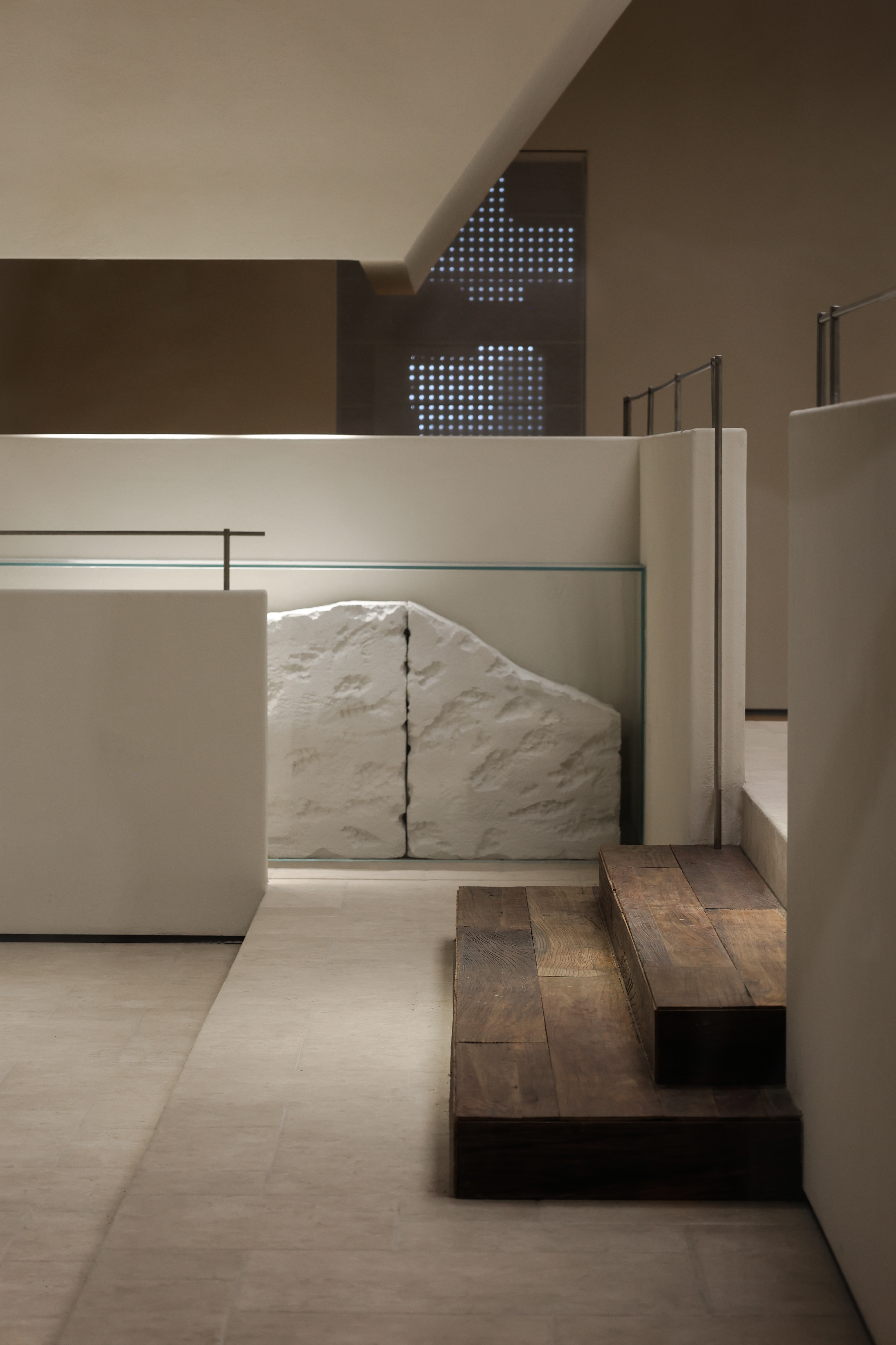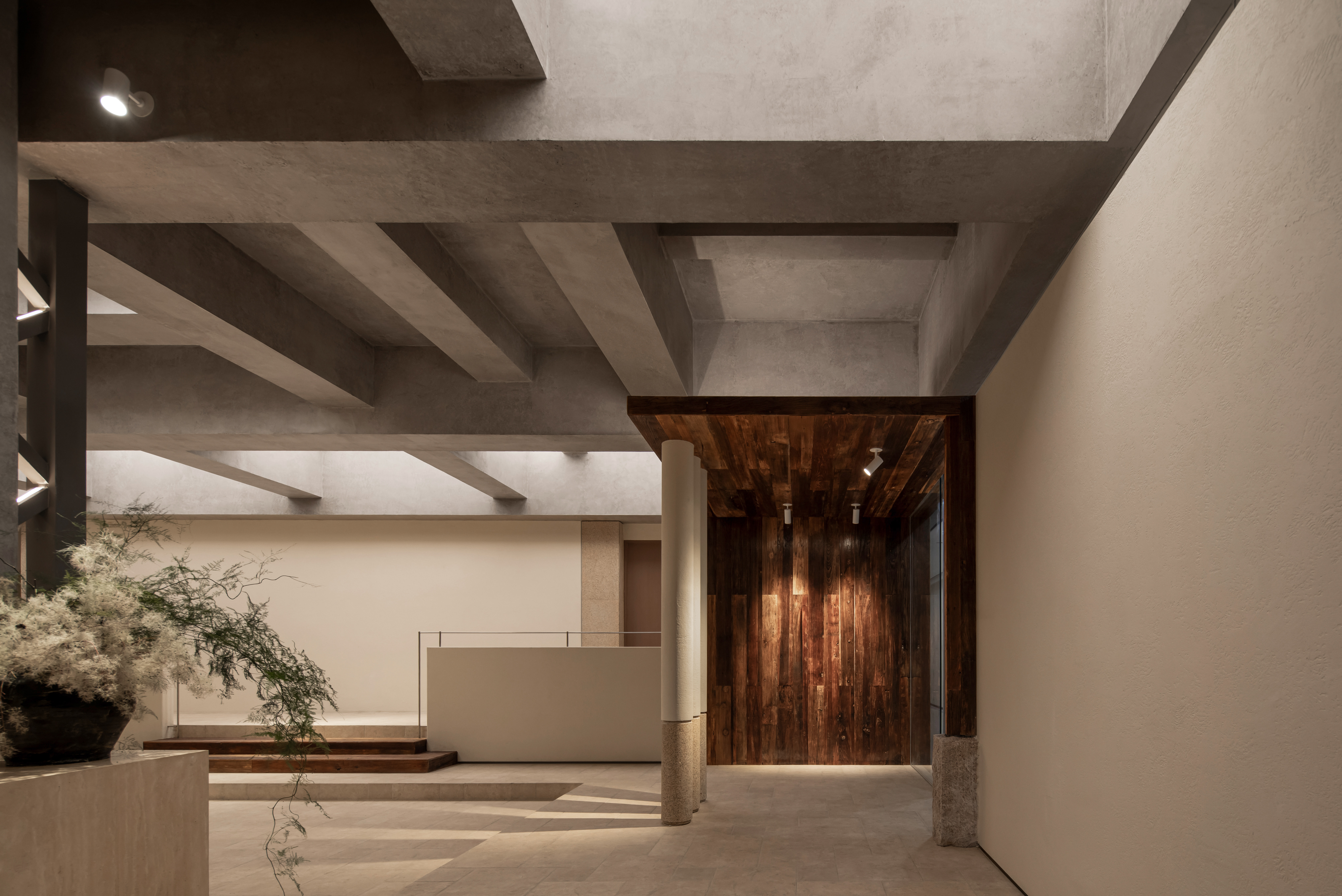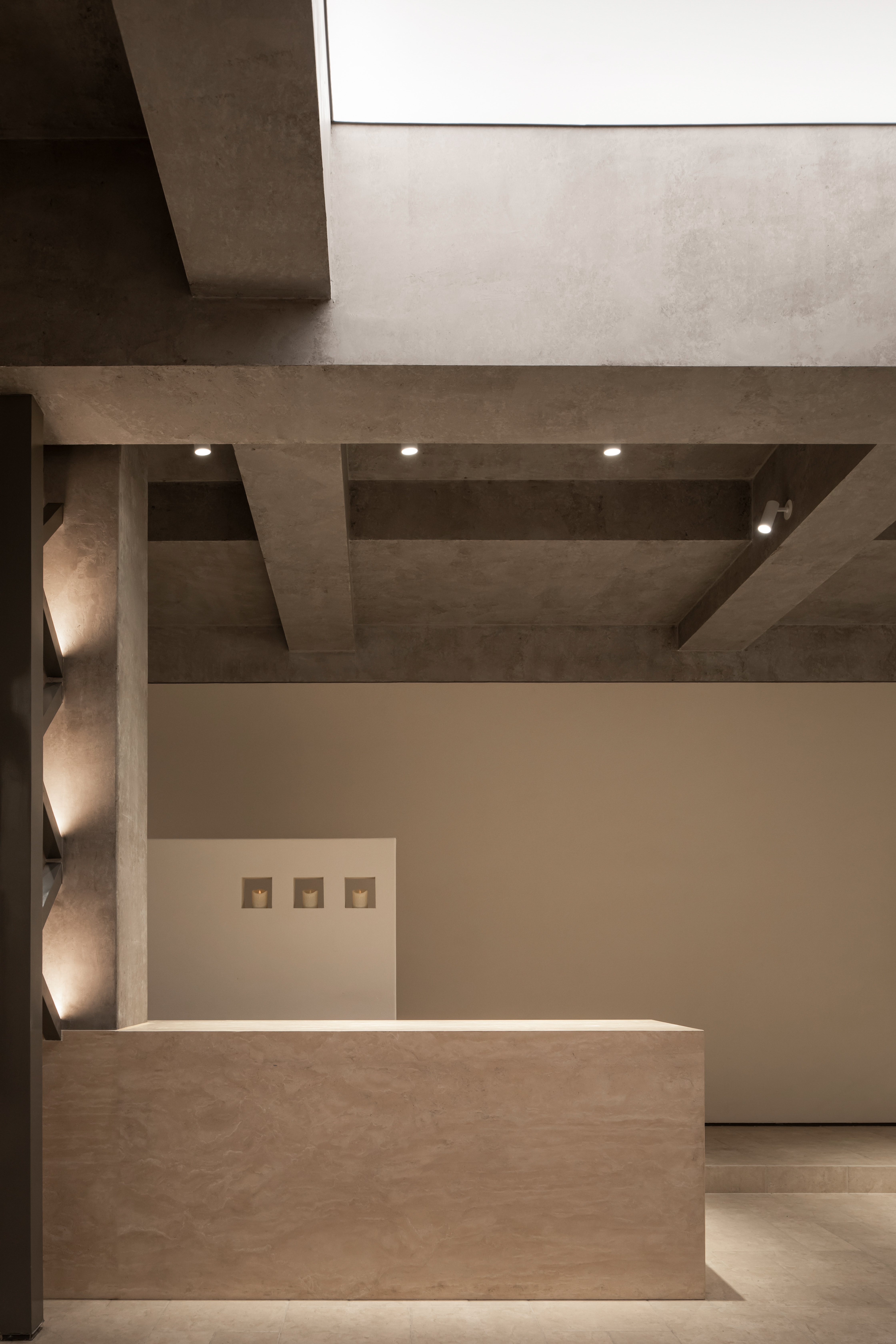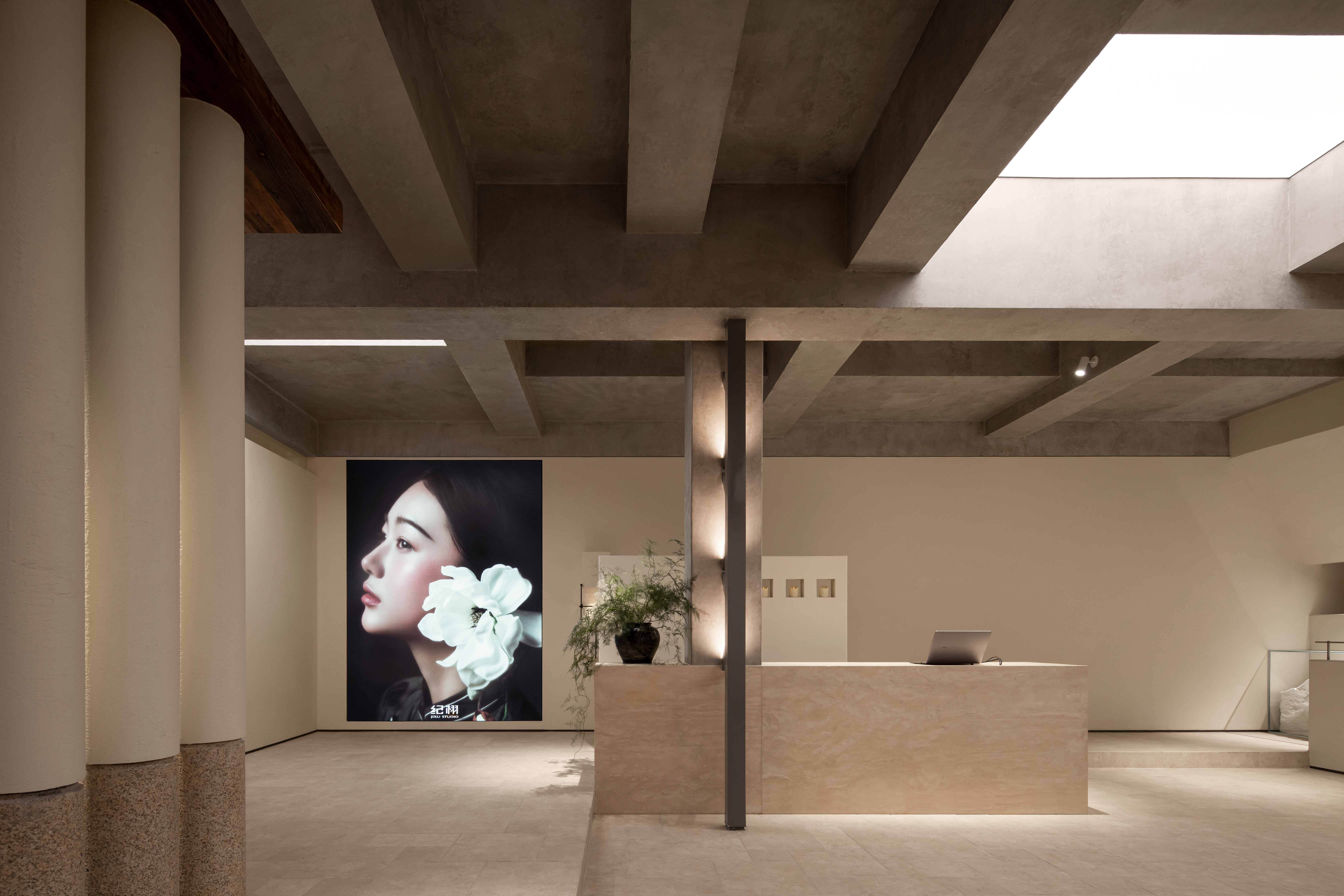 照明设计说明:设计着力打破陈旧的商业语言,汲取产品基因中的设计语言,深度思考空间中关于功能需求、物质形态与场景体验的多元可能。设计回归建筑手法的内在结构展现,平衡不同材质、色泽、肌理的张弛感,重塑与客群更深入且持续的情感链接,打造具有复合功能与内容力的品牌场域。美,不存在于物体之中,而存在于物与物产生的阴翳的波纹和明暗之中。以光为介质,顶部灯膜散射柔和微光,抚触每一寸结构的纵深与张力,在原始粗粝与温润的冲突中,收纳独属于这份空间的灵魂内核。在功能与美学之上,精准表达品牌的需求和调性是本案的重要因素。空间作为沉浸式体验的容器,承载着品牌的专属符号与价值认同感,带领每一位到访者切换宏观与微观的视角,深切感受场景共鸣,在空间、品牌与生活方式之间建立深度的链接关系。