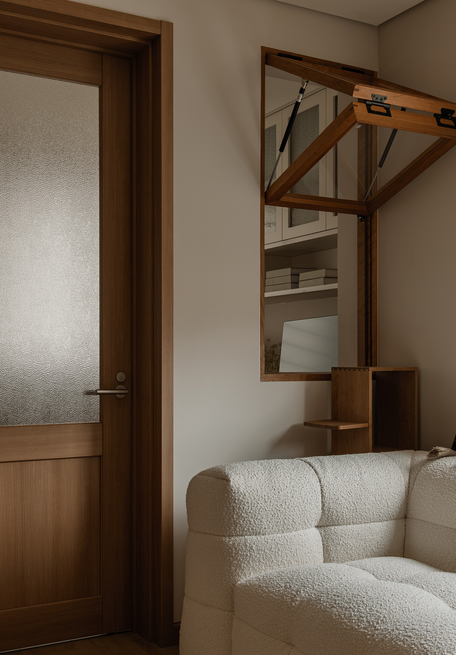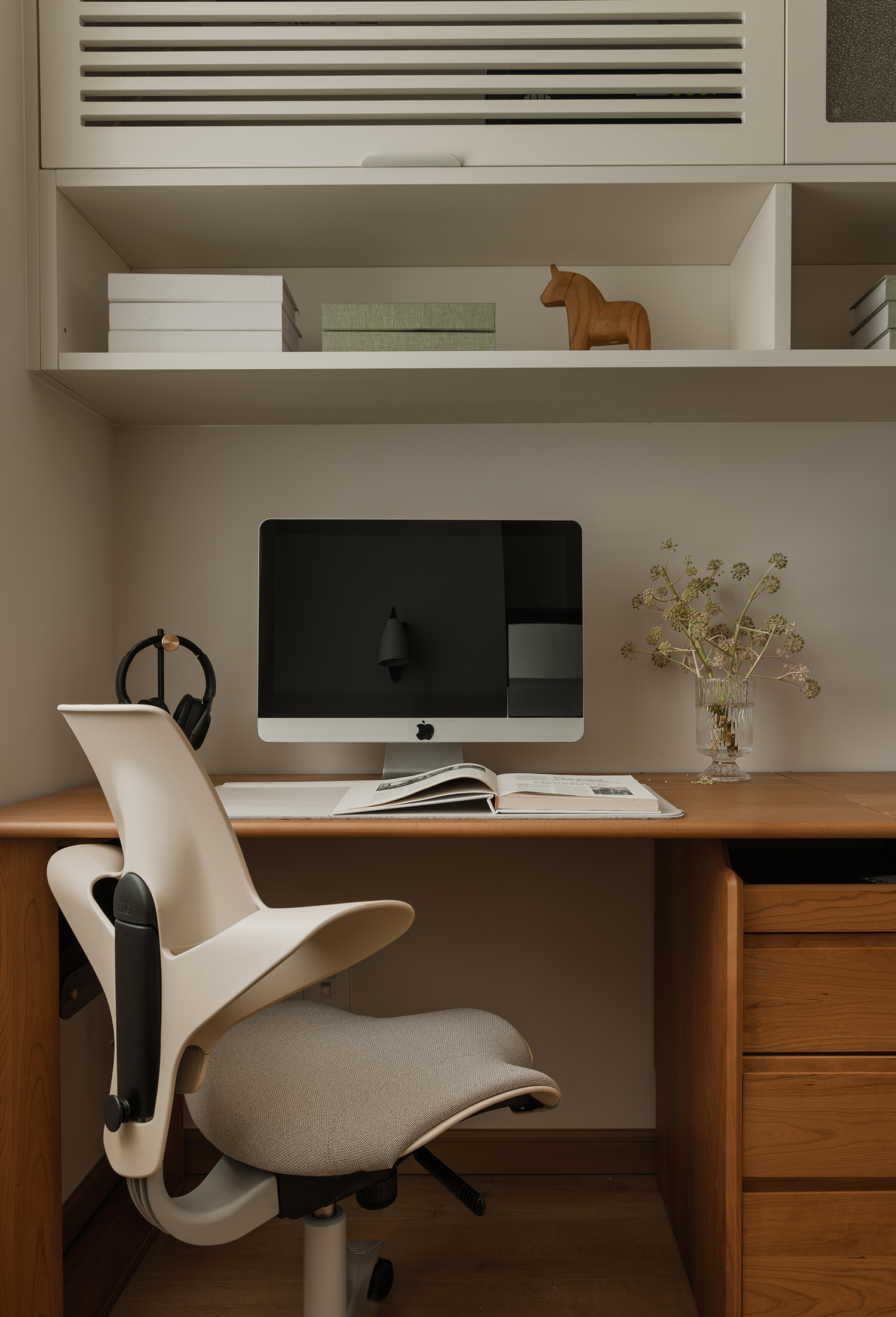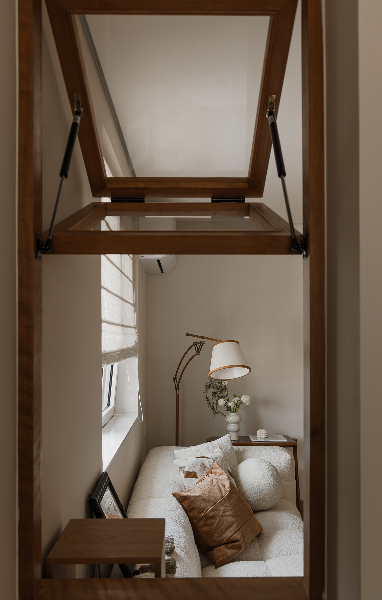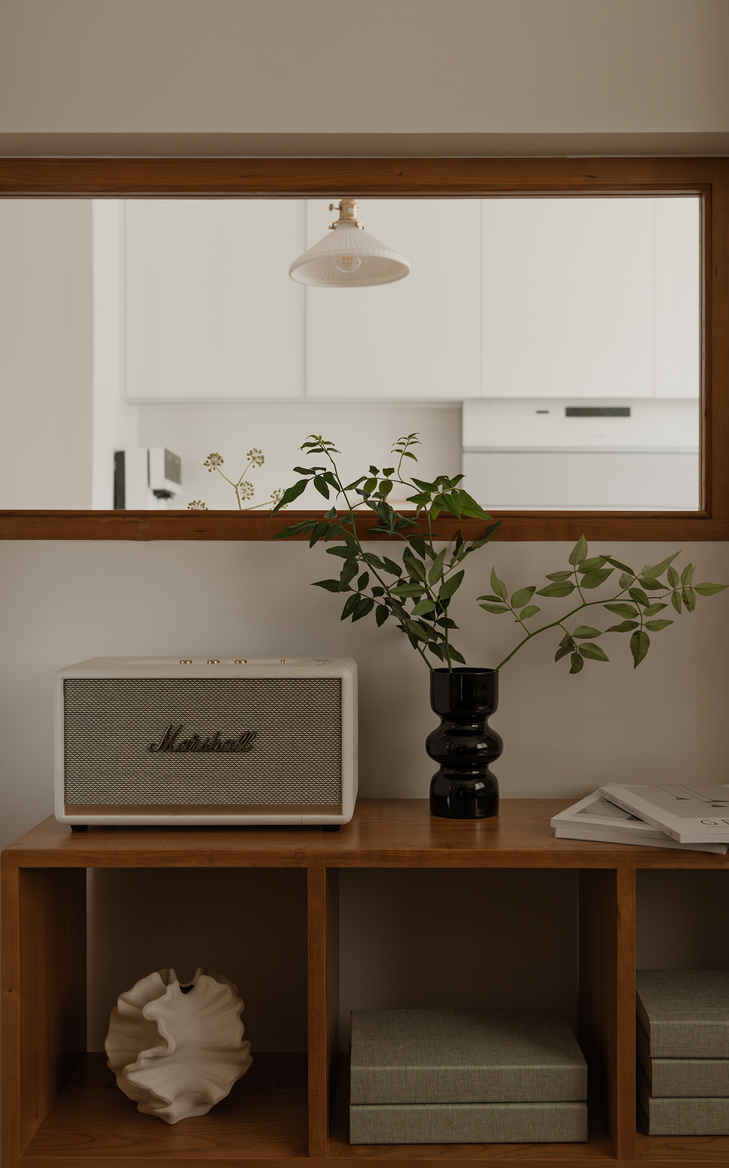 书房改造:将书房门改至由客厅进出,与厨房之间开封闭式窗洞,与客厅设窗,既隔绝油烟又保证通透性,增强空间互动,避免压抑闭塞,同时为猫咪提供专属路径。