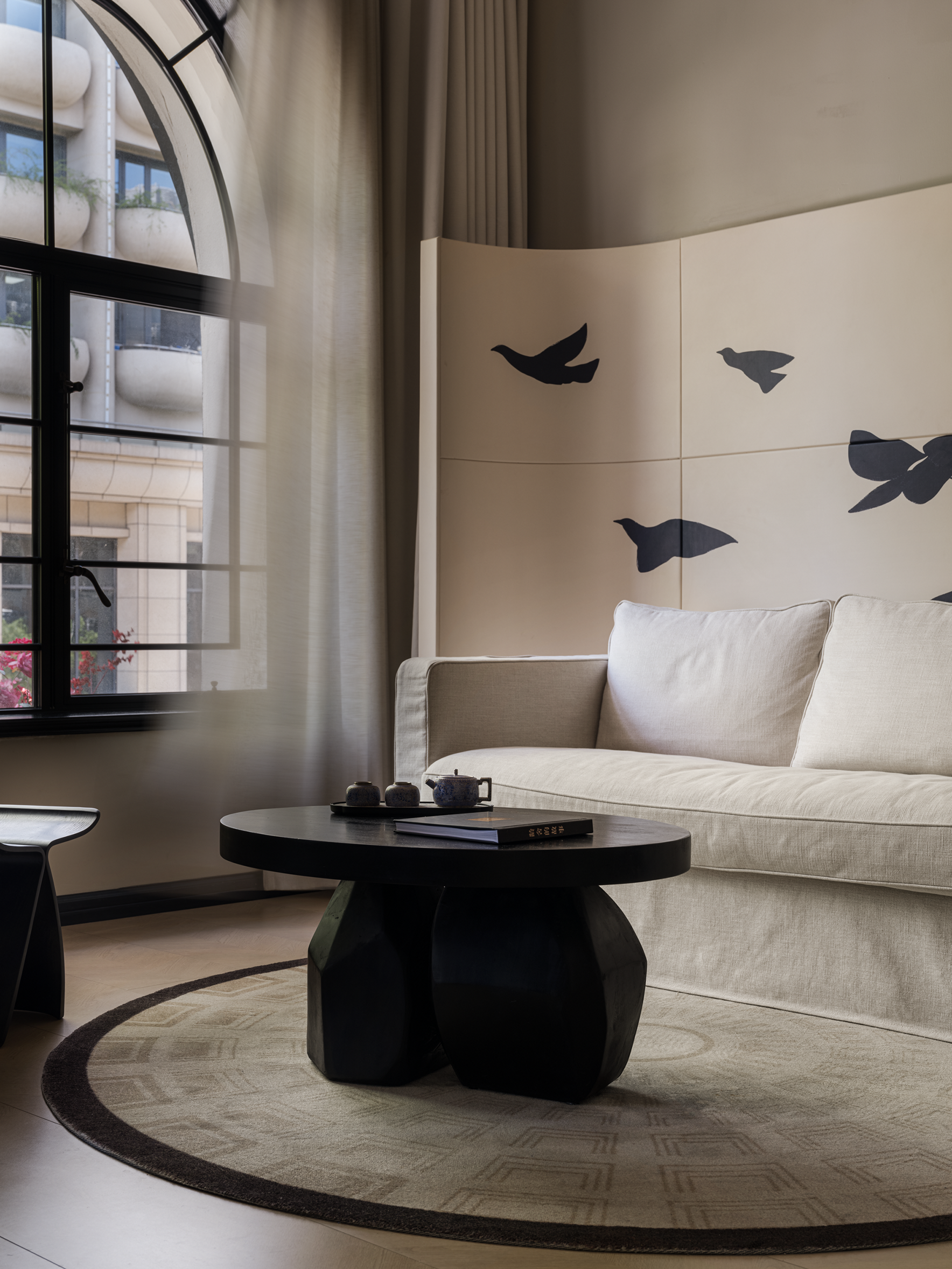 家具与装饰:定制家具简洁精致,墙面挂饰多取材于武汉历史照片与艺术画作,强化地域文化认同。