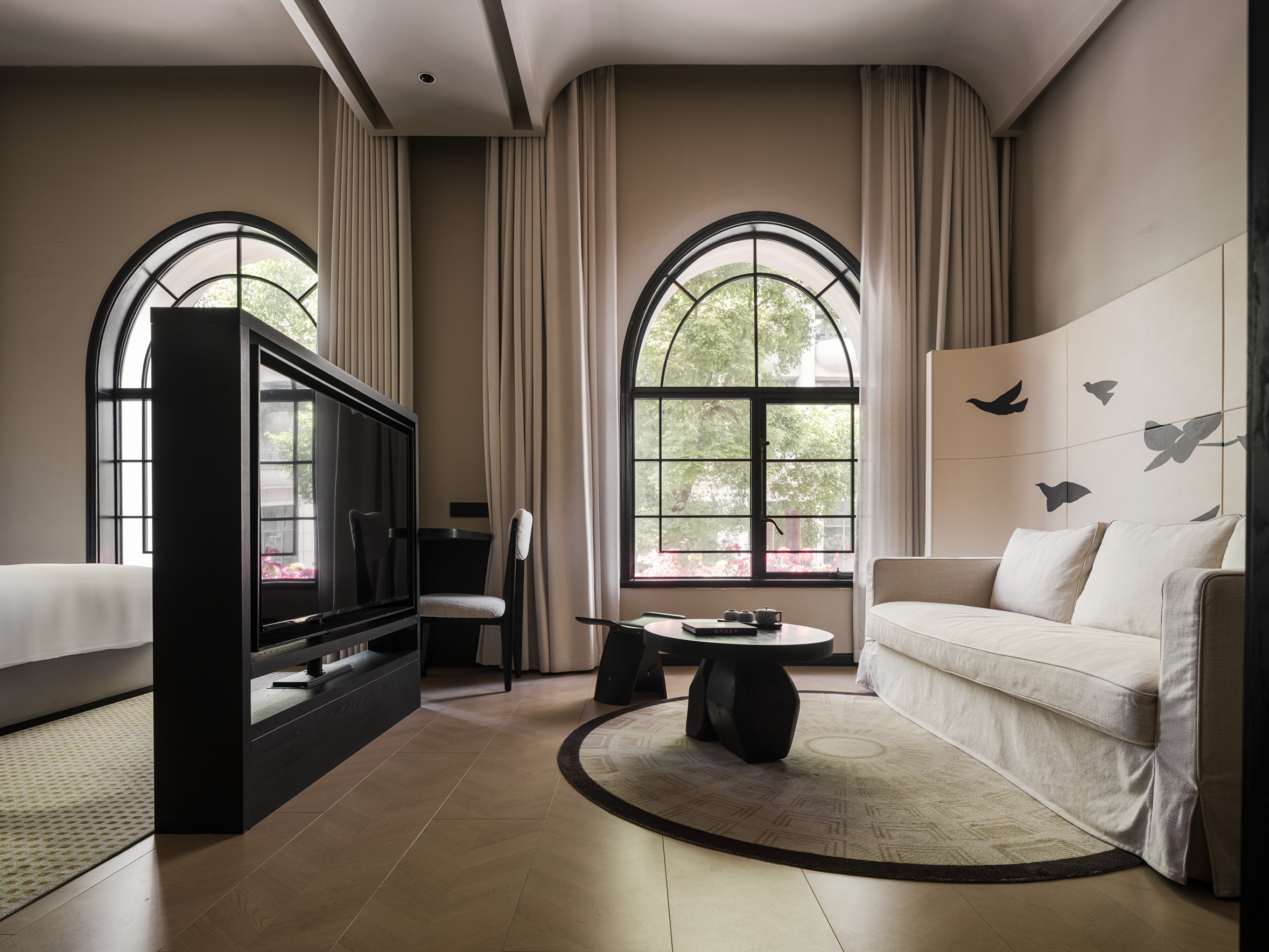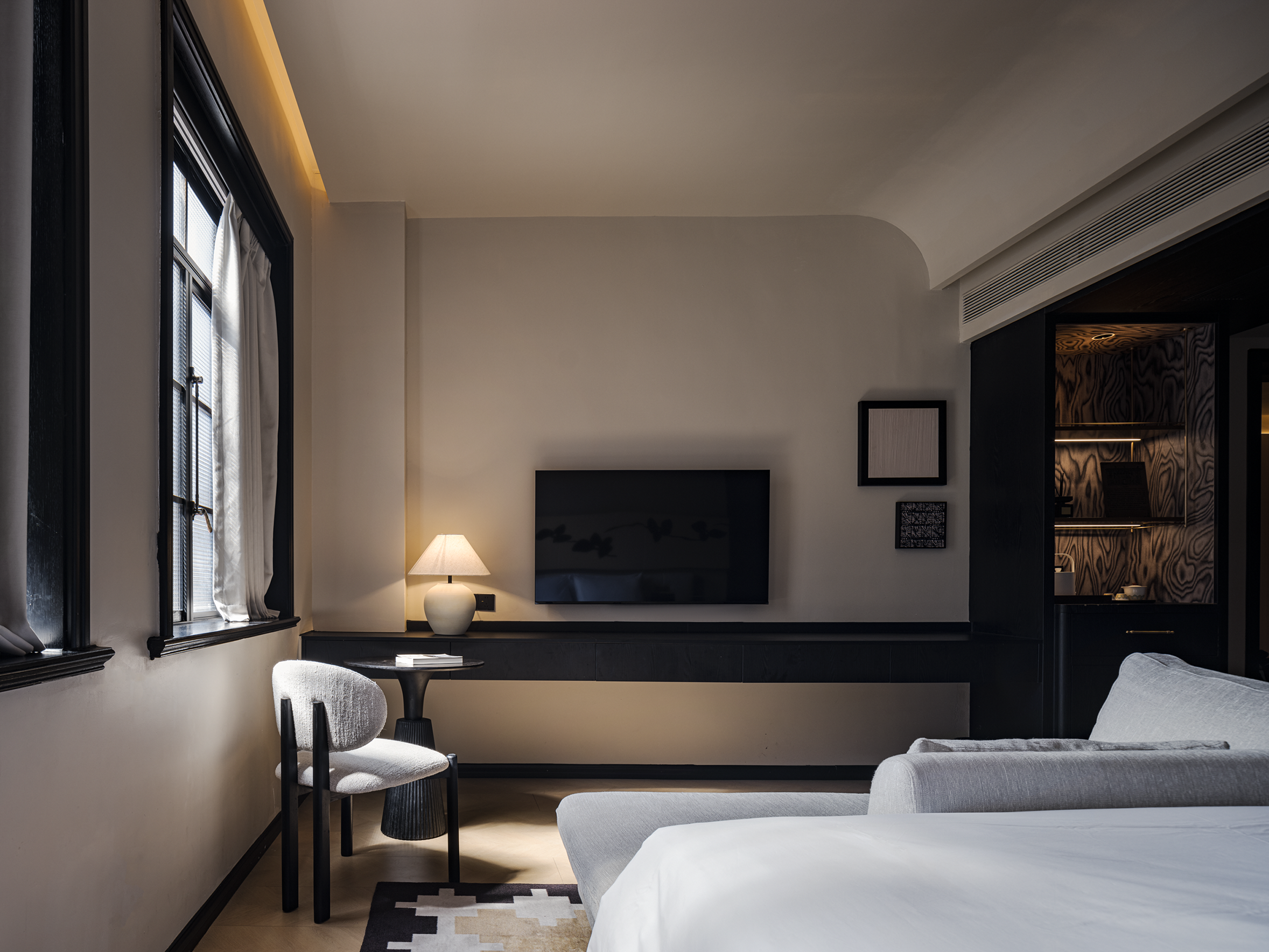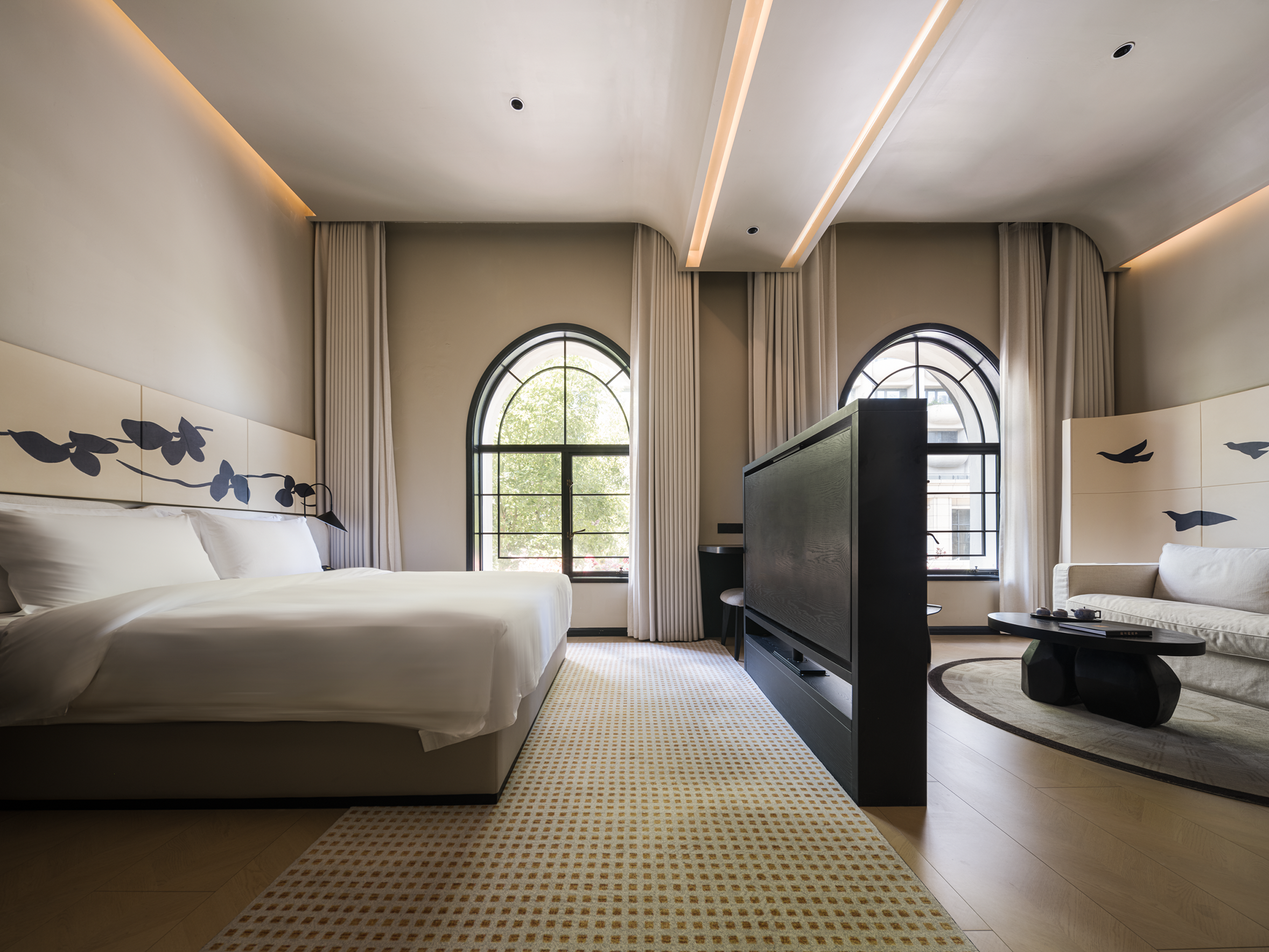 当代功能重构:在保留历史肌理的基础上,优化空间布局与设施配置。23间客房分别绘有租界区23座知名老建筑的插画,既是装饰,也是连接宾客与城市记忆的文化叙事。 -