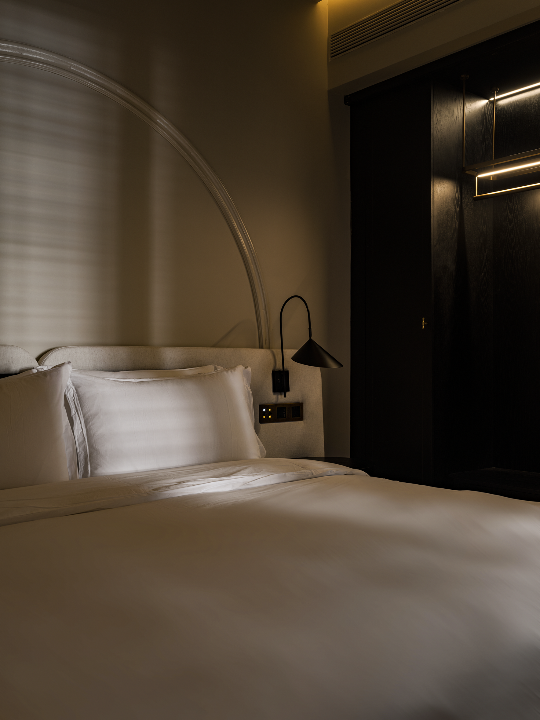 灯光:客房以间接照明与可调光源为主,公共区结合吊灯与壁灯,兼顾功能与艺术性。