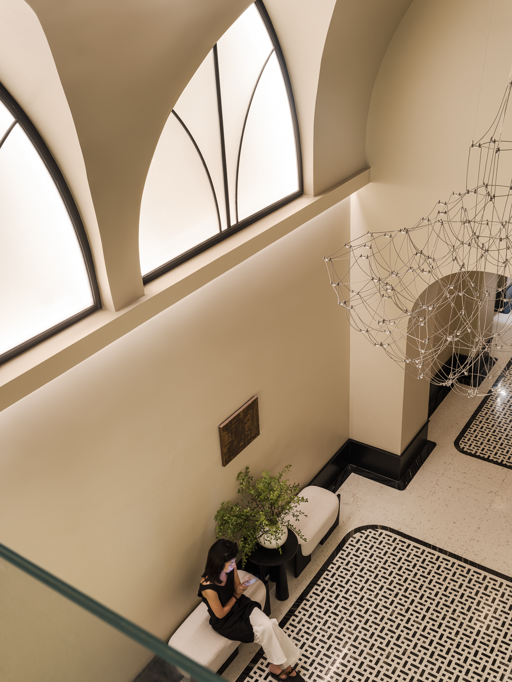 动线规划注重私密性与便利性,不同使用者流线互不干扰。改造后的金库电梯既保留功能性,也成为极具辨识度的空间符号。 -