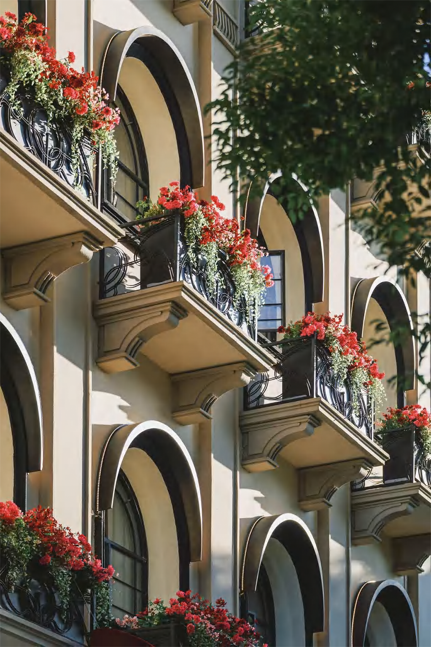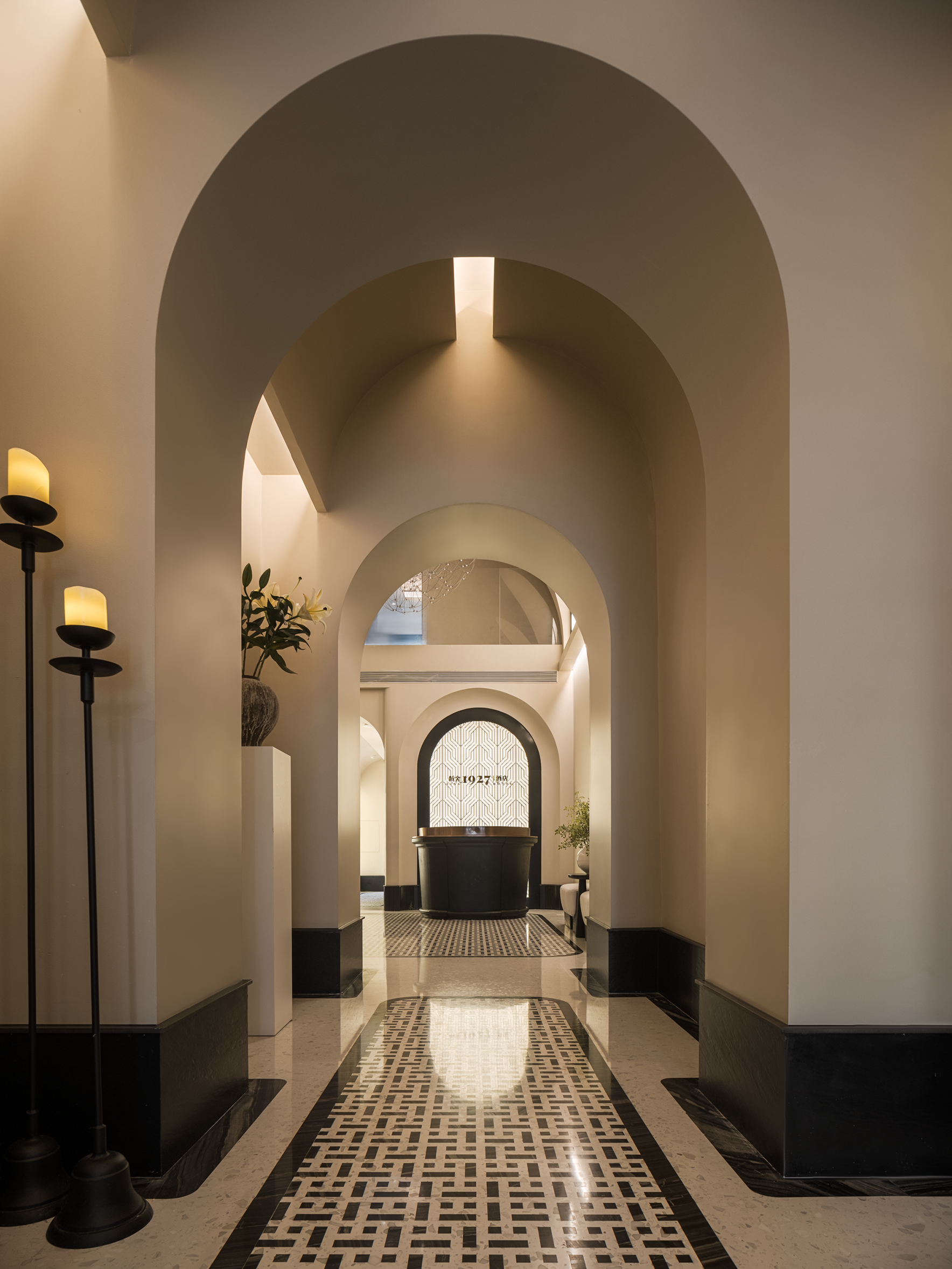 造型:弧线与拱形元素反复运用于窗楣、大堂穹顶等处,柔化厚重感。
