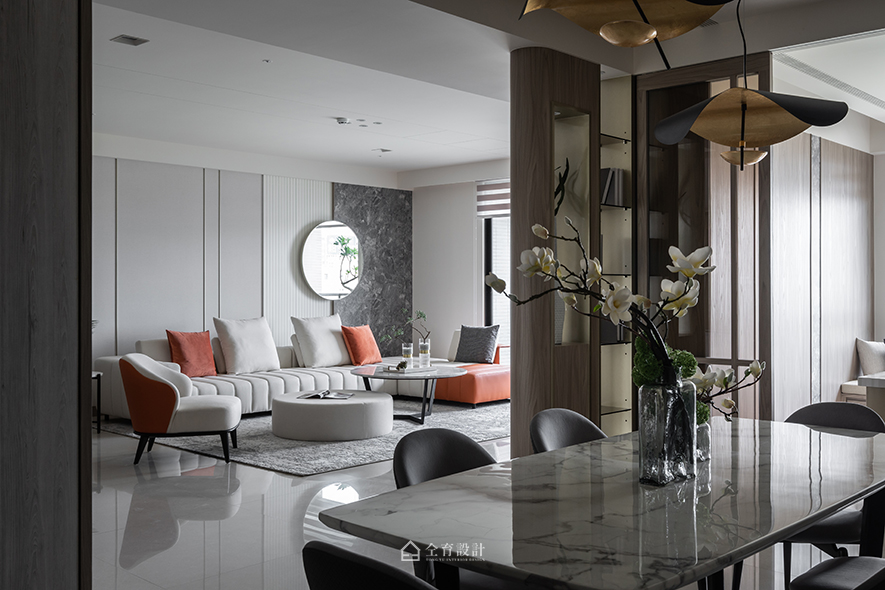每个案子启动前,设计团队会先聚焦使用者的生活需求,再延伸至动线、风格、光线、材质与收纳的整体配置,并以「形、色、质、空、光」五大要素梳理设计语彙,使空间在慢、静、雅、简、散的生活节奏中,美感与机能可以用适切的比例取得平衡。