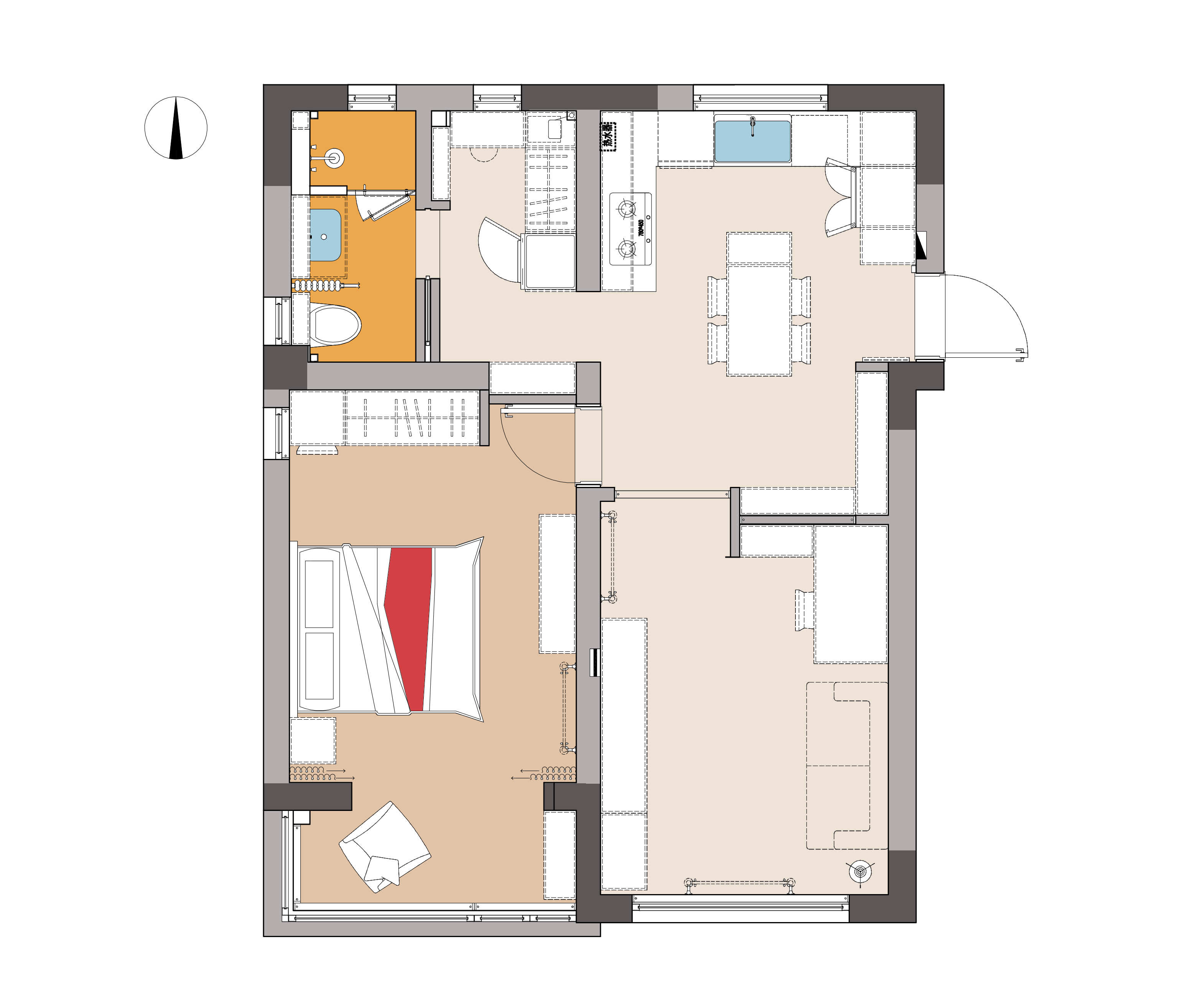 项目定位:策划:基于业主夫妻留学经历、生活习惯及多元需求,打破传统空间功能界限,打造一个融合多种生活场景、满足个性化需求且充满趣味与温馨的家居空间。